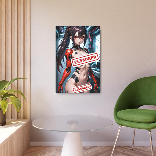 Futuristic Cyborg Waifu Metal Print – 8x12 Sci-Fi Anime Art for Home Decor
