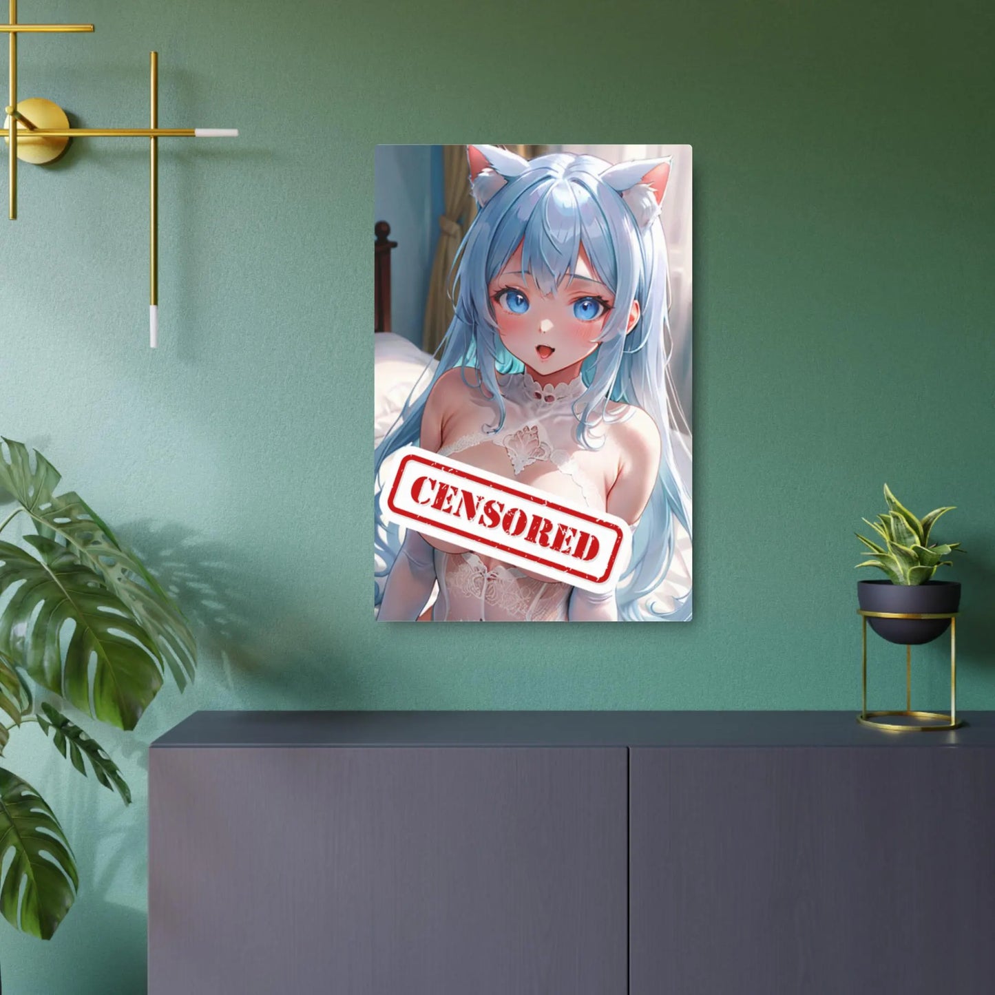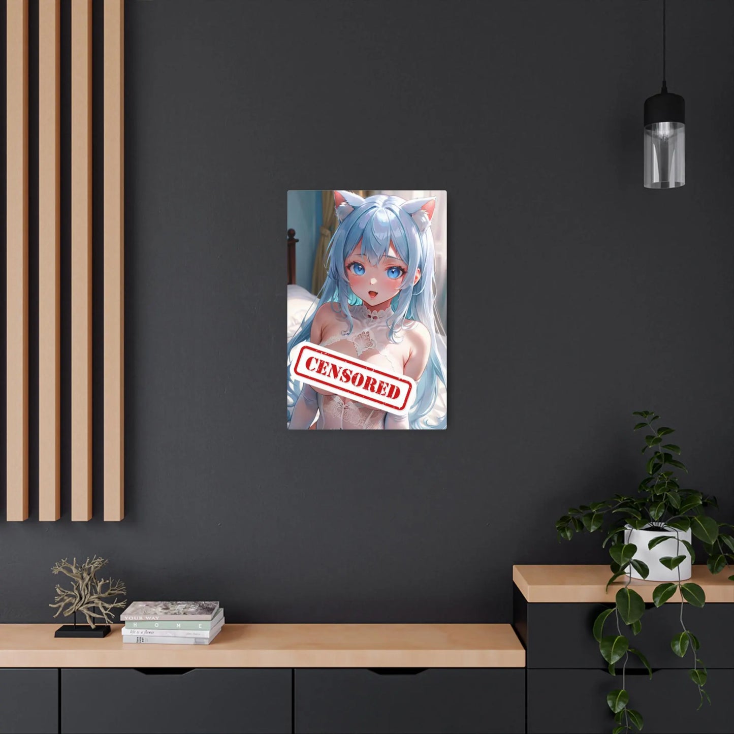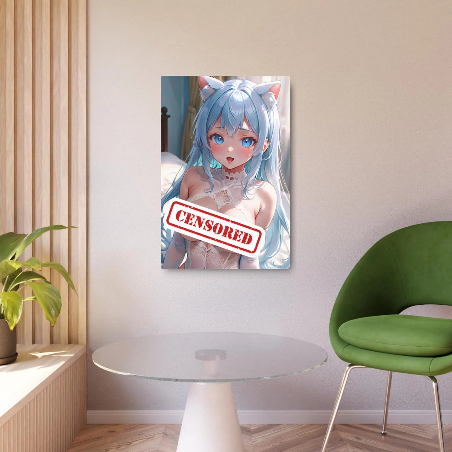 Adorable Catgirl Waifu Metal Print – 8x12 Kawaii Anime Art for Home Decor