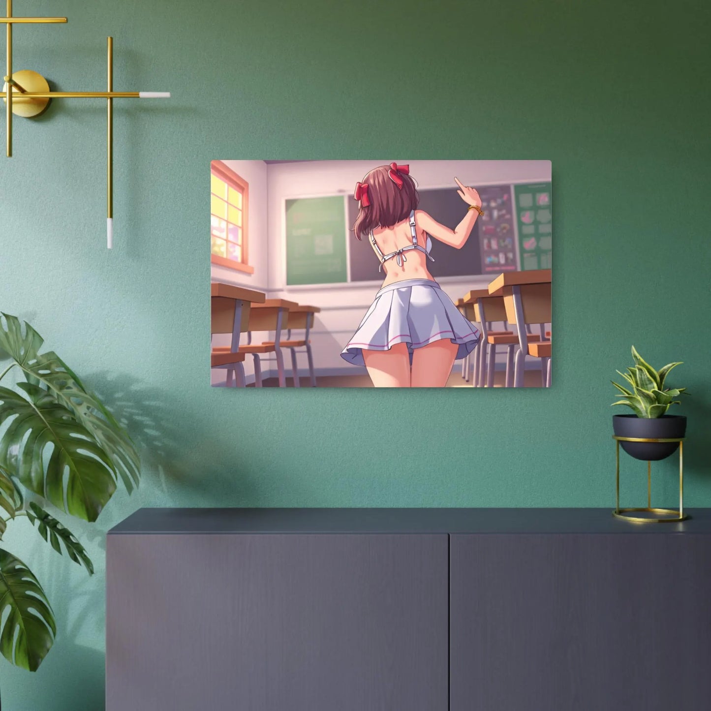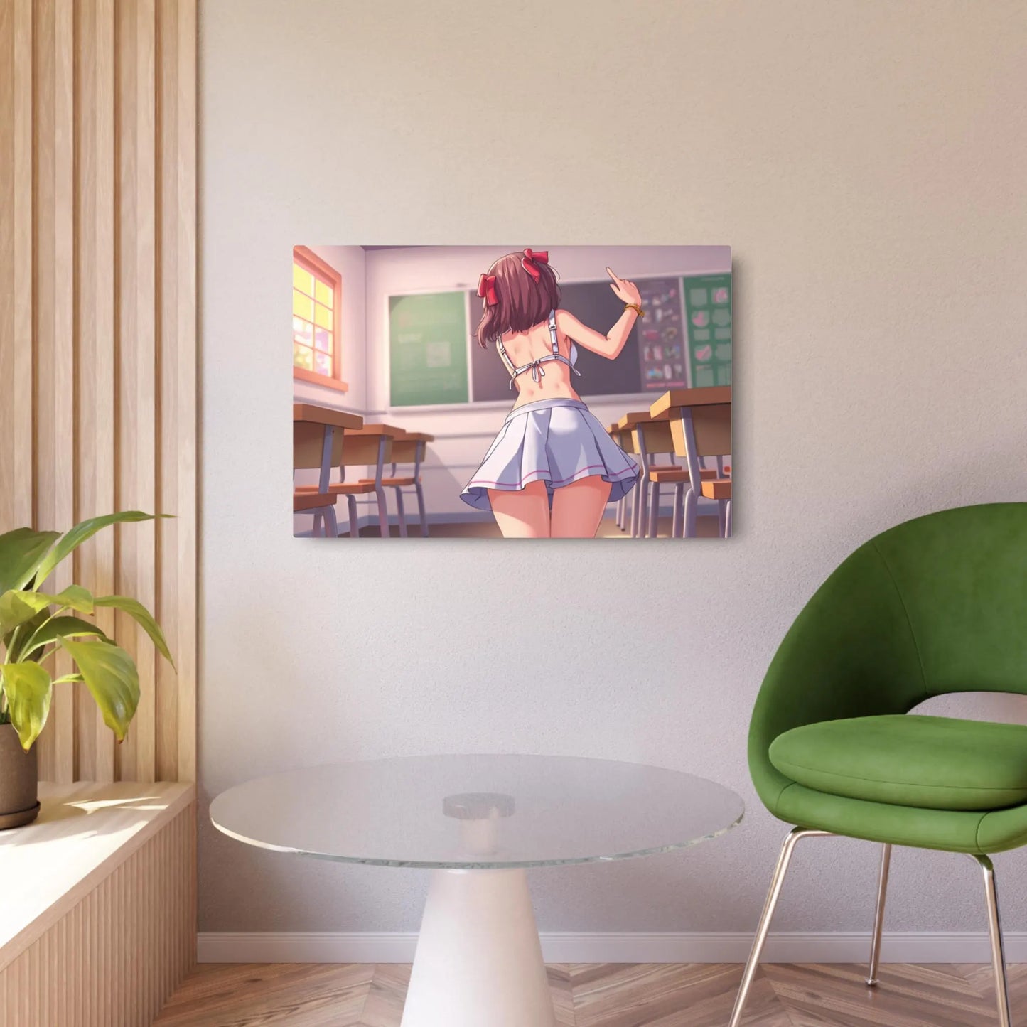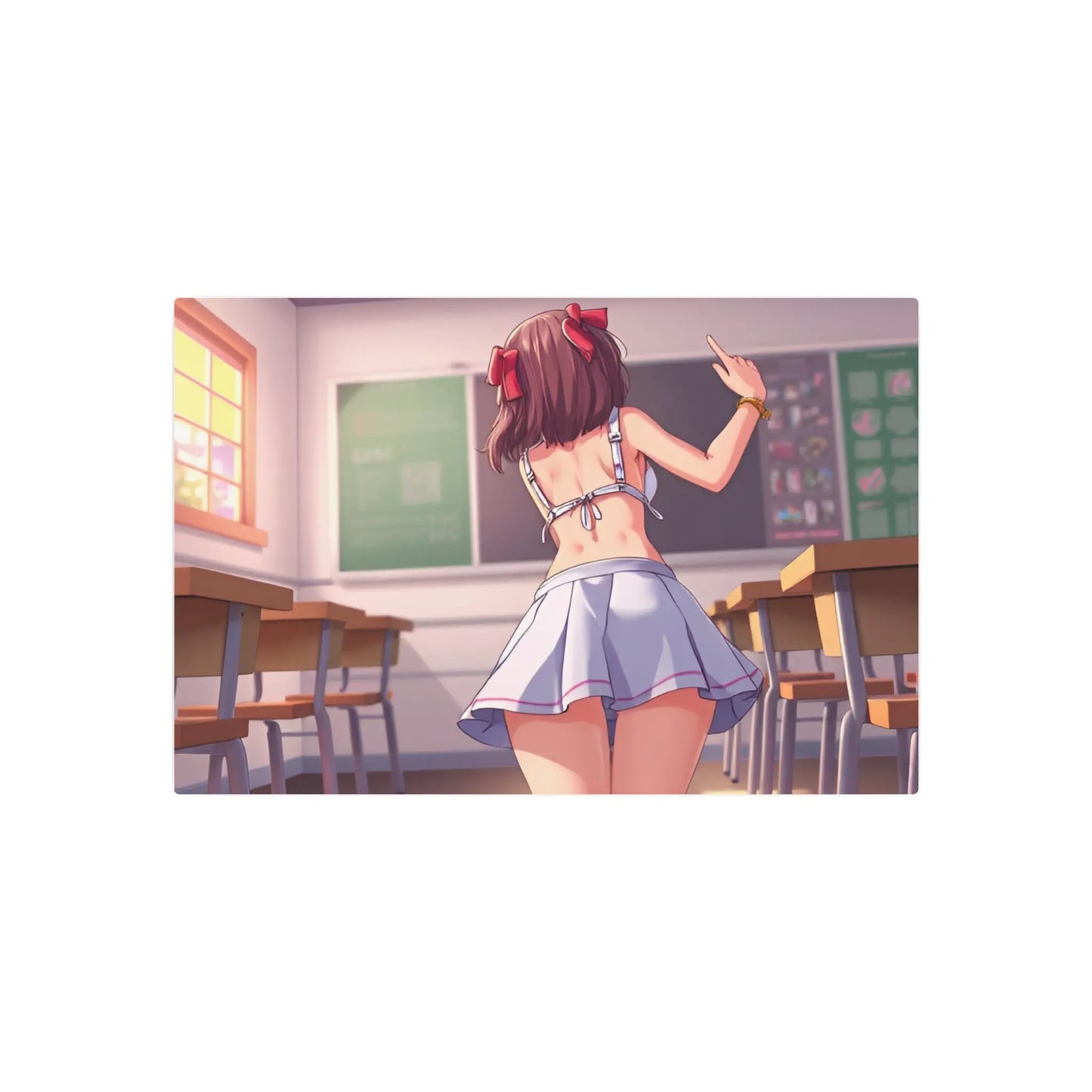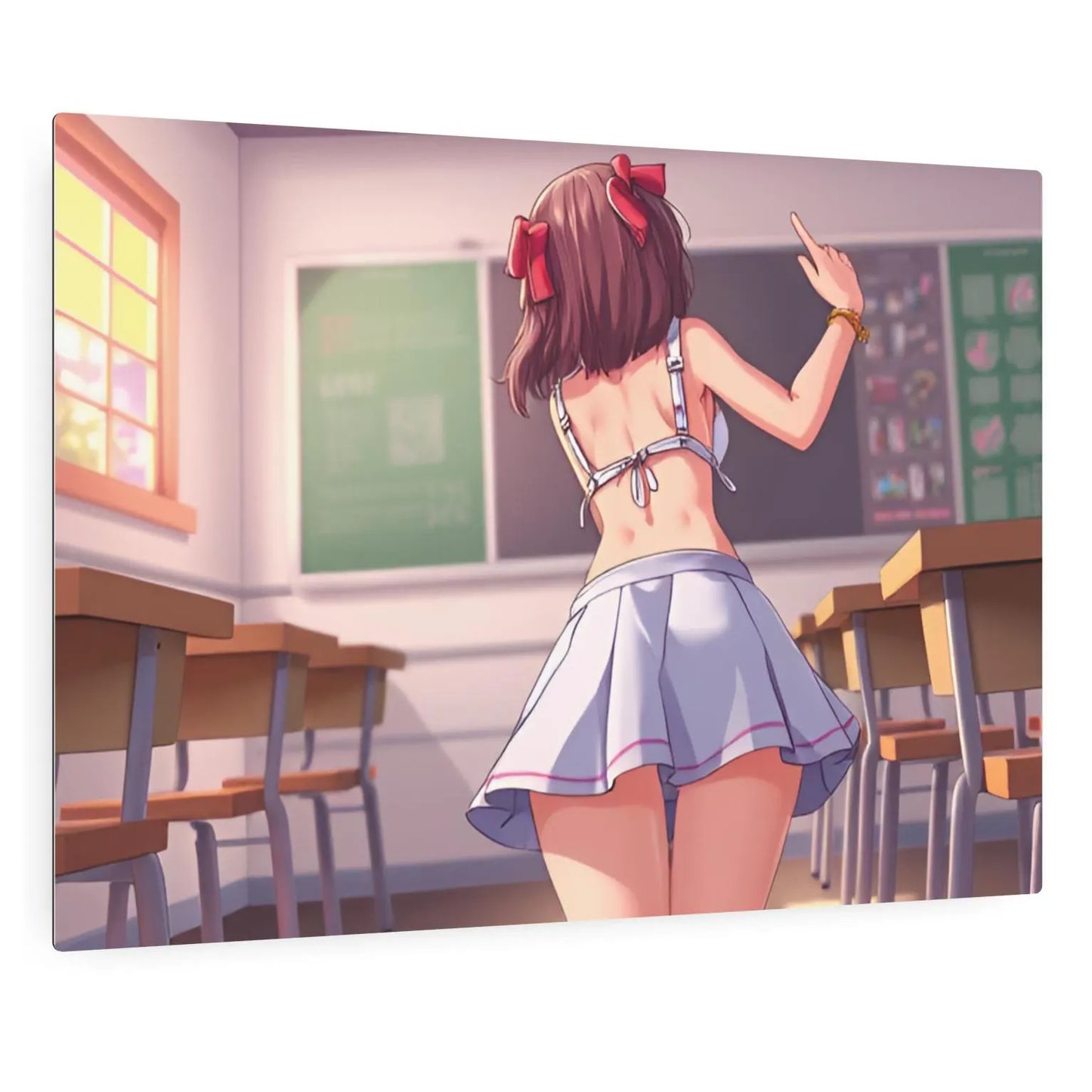 Alluring Waifu College Co-Ed in Class Metal Print – 8x12 Anime Art for Home Decor
