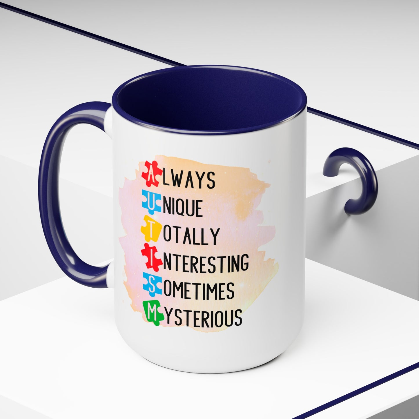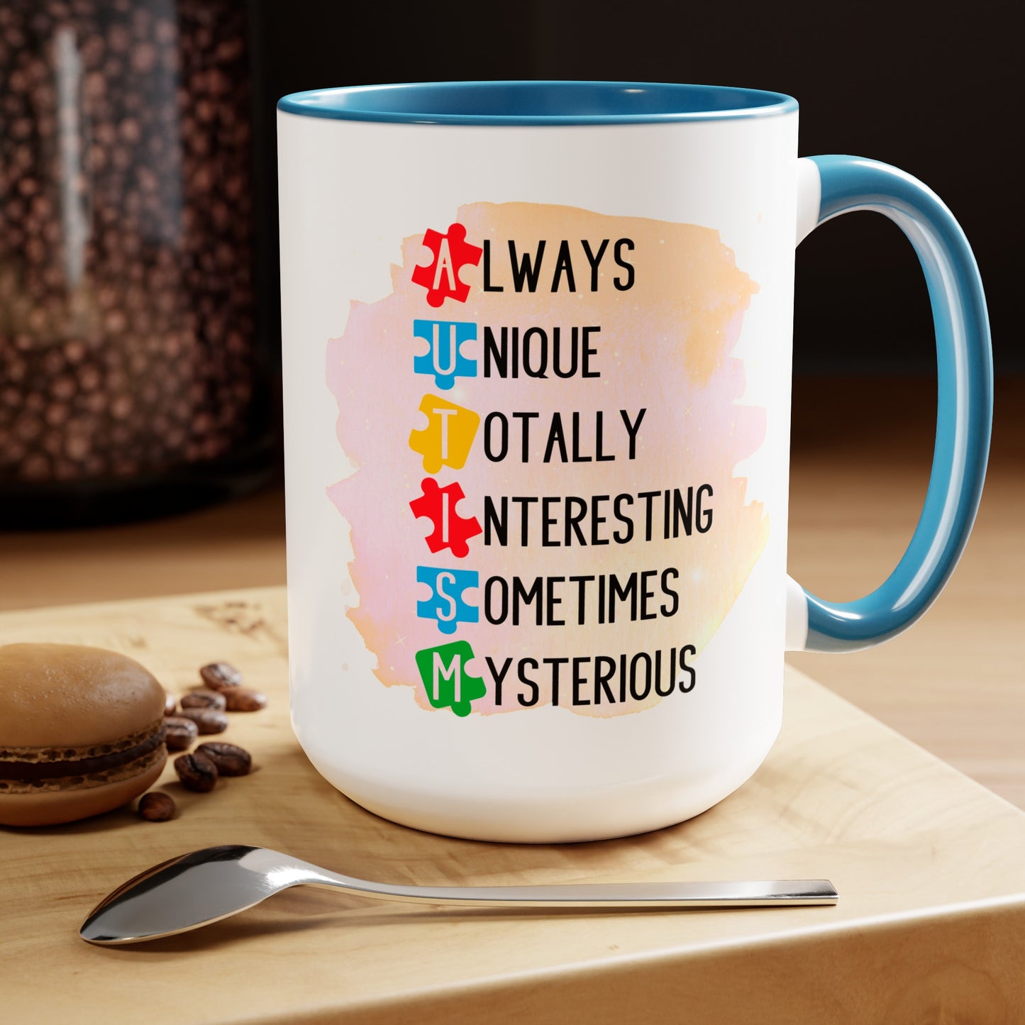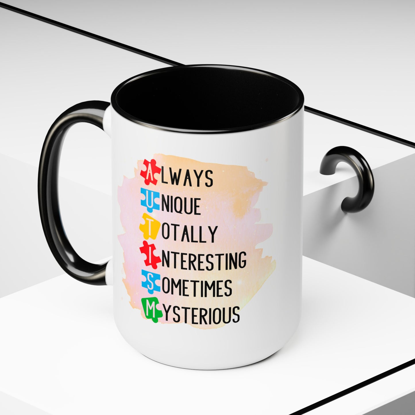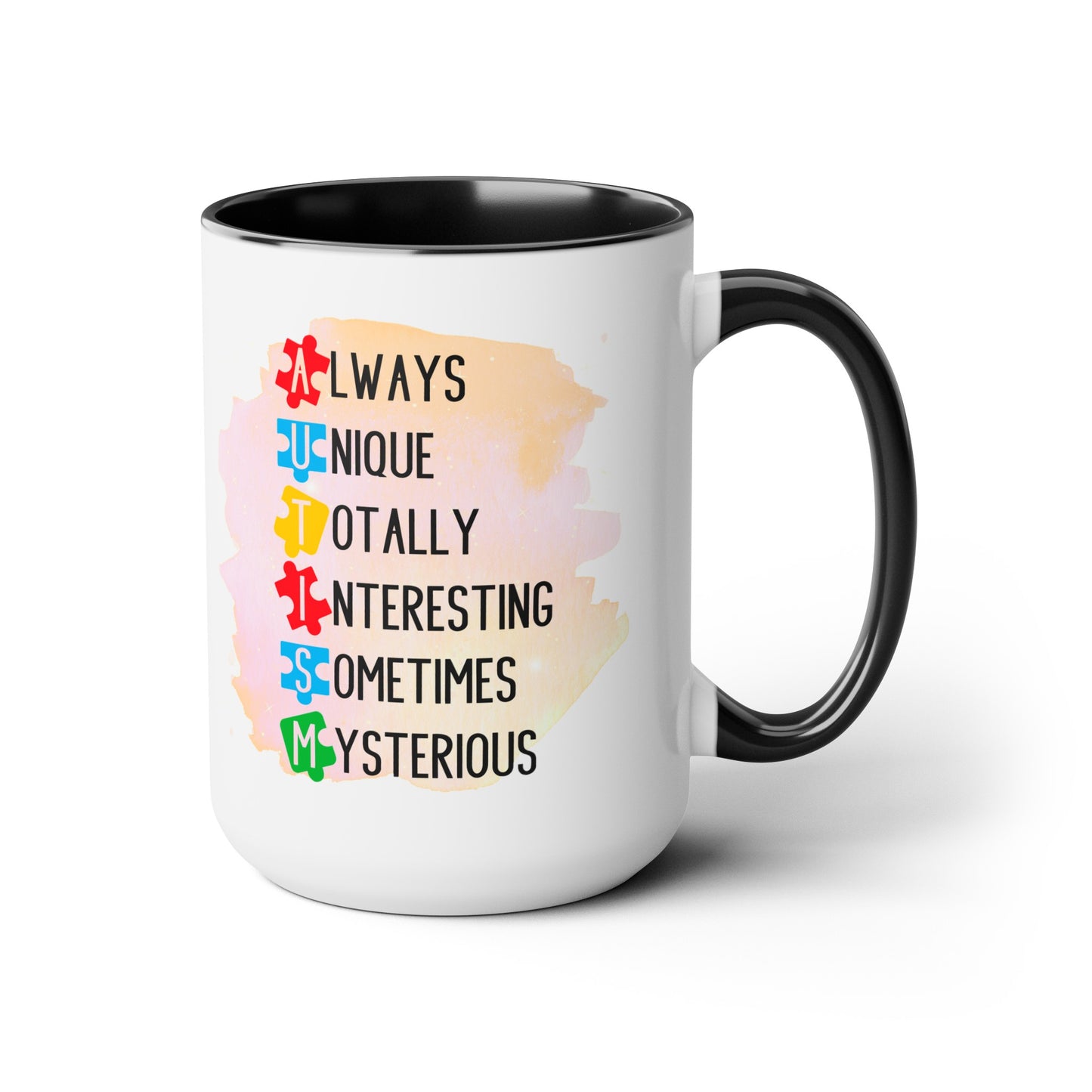 Autism Always Unique Totally Interesting Sometimes Mysterious 15oz Coffee Mug