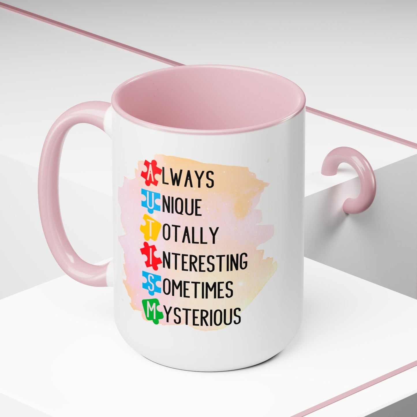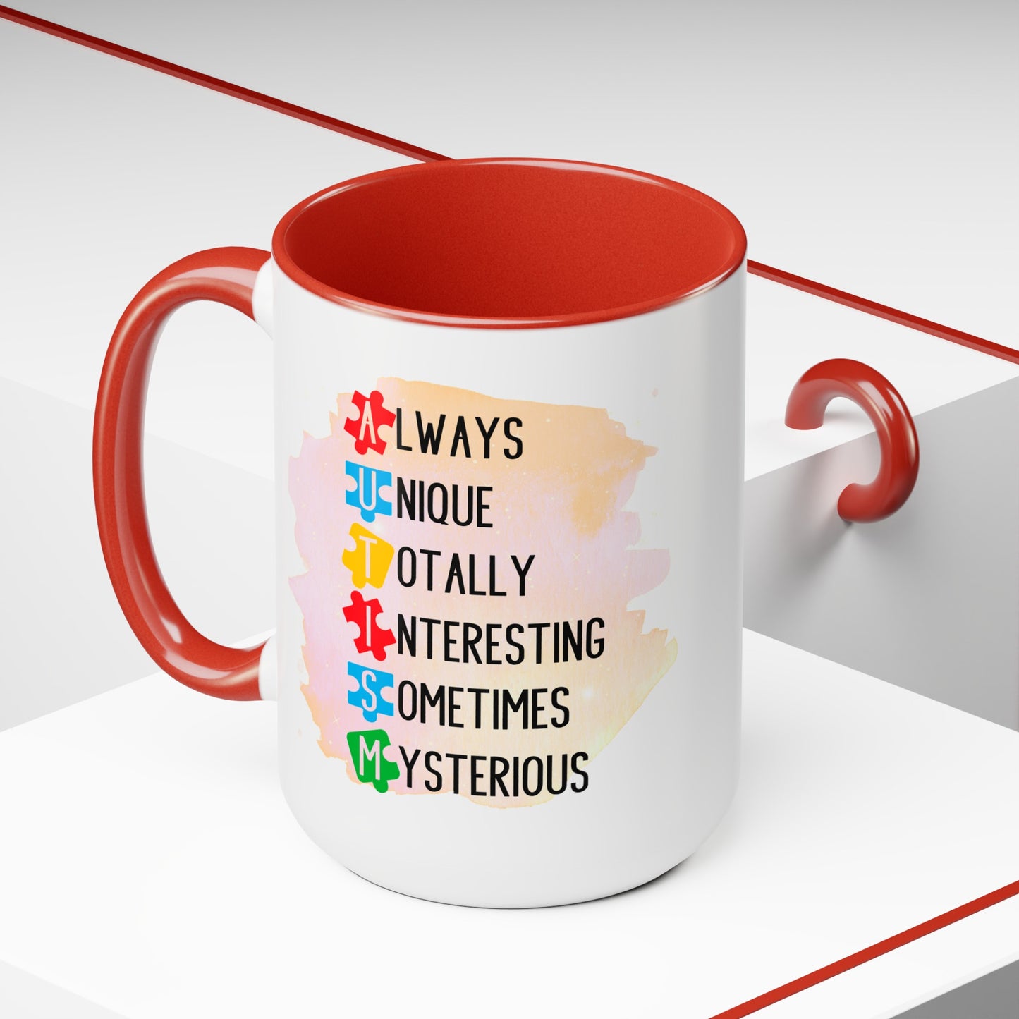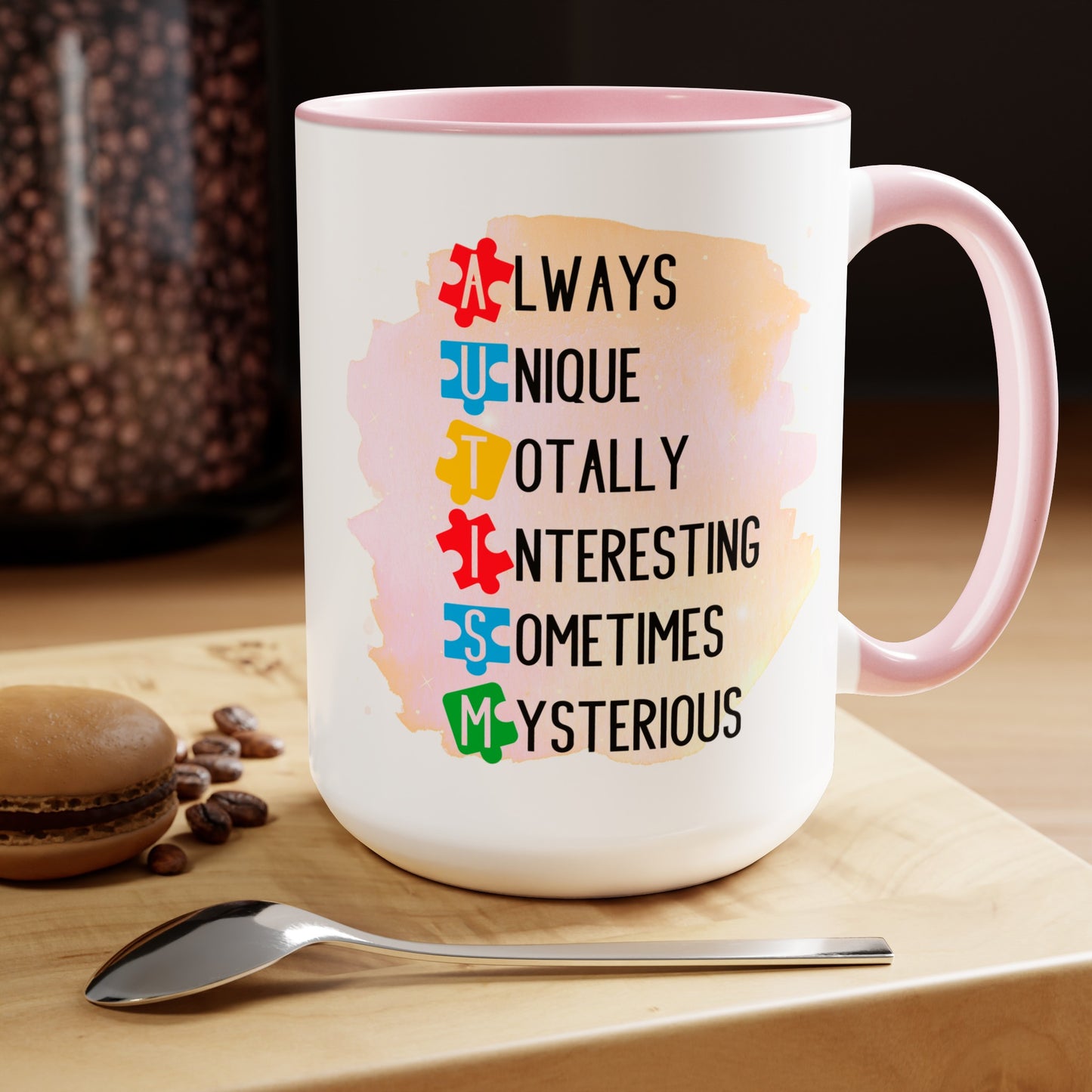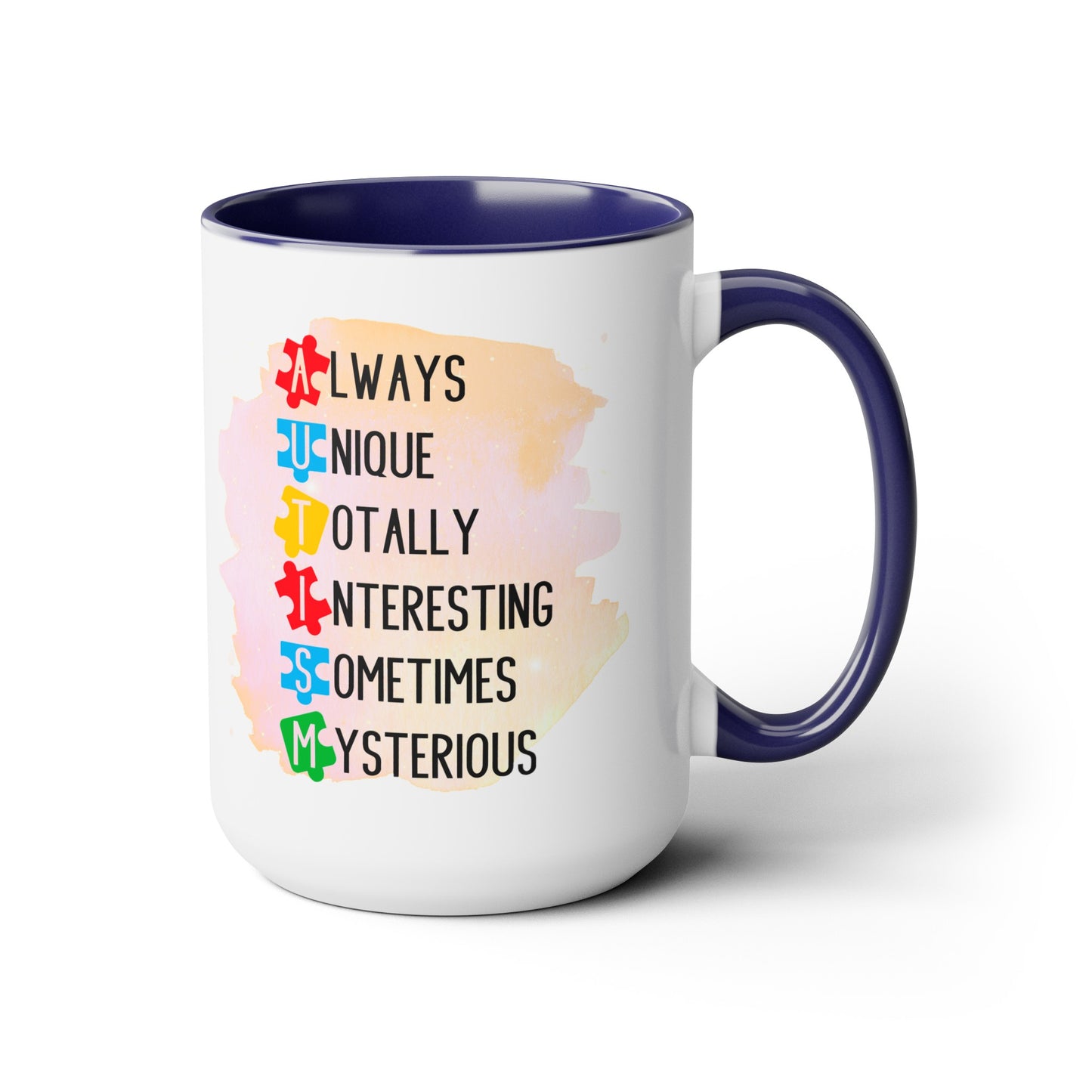 Autism Always Unique Totally Interesting Sometimes Mysterious 15oz Coffee Mug