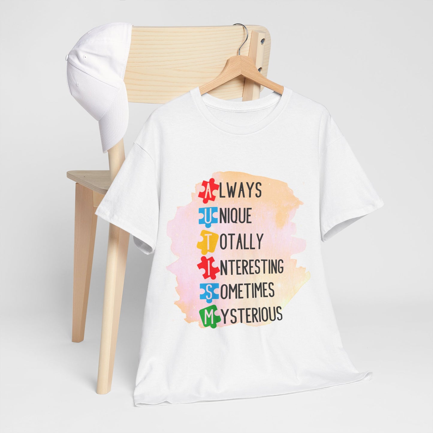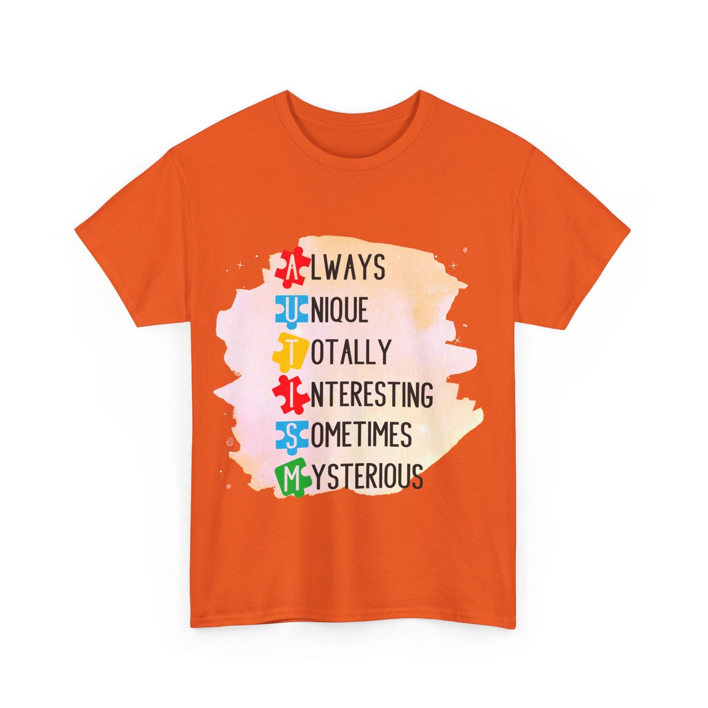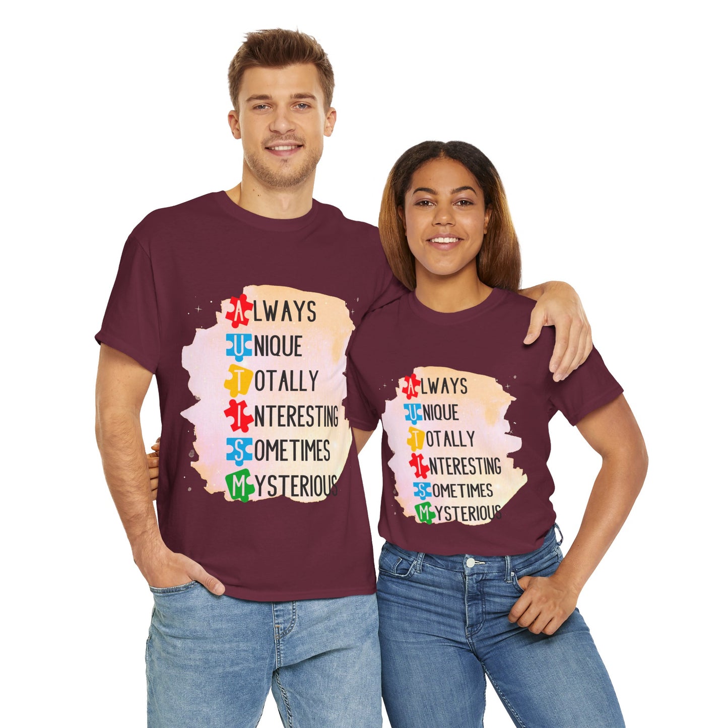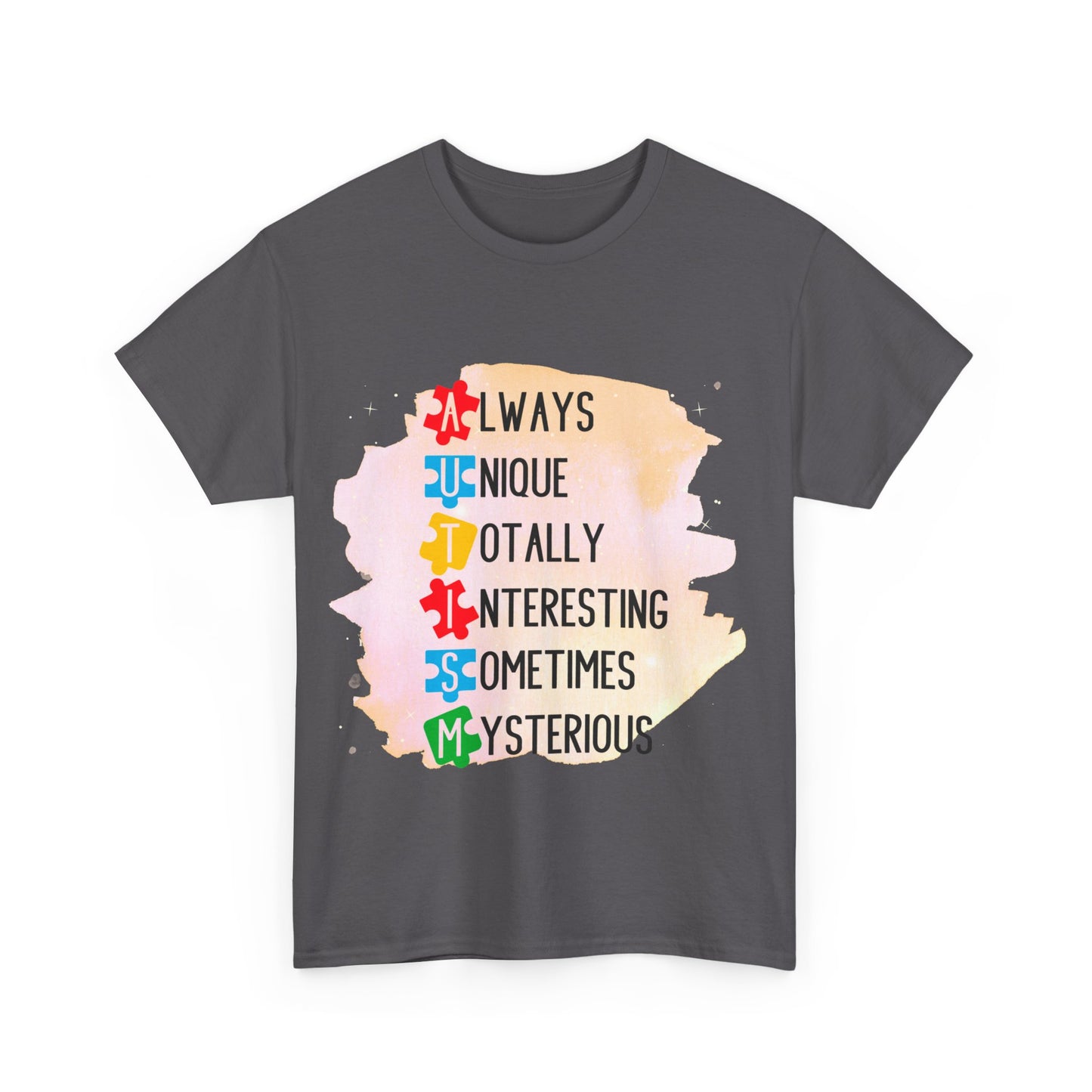Autism Always Unique Totally Interesting Sometimes Mysterious T-shirt Unisex Heavy Cotton