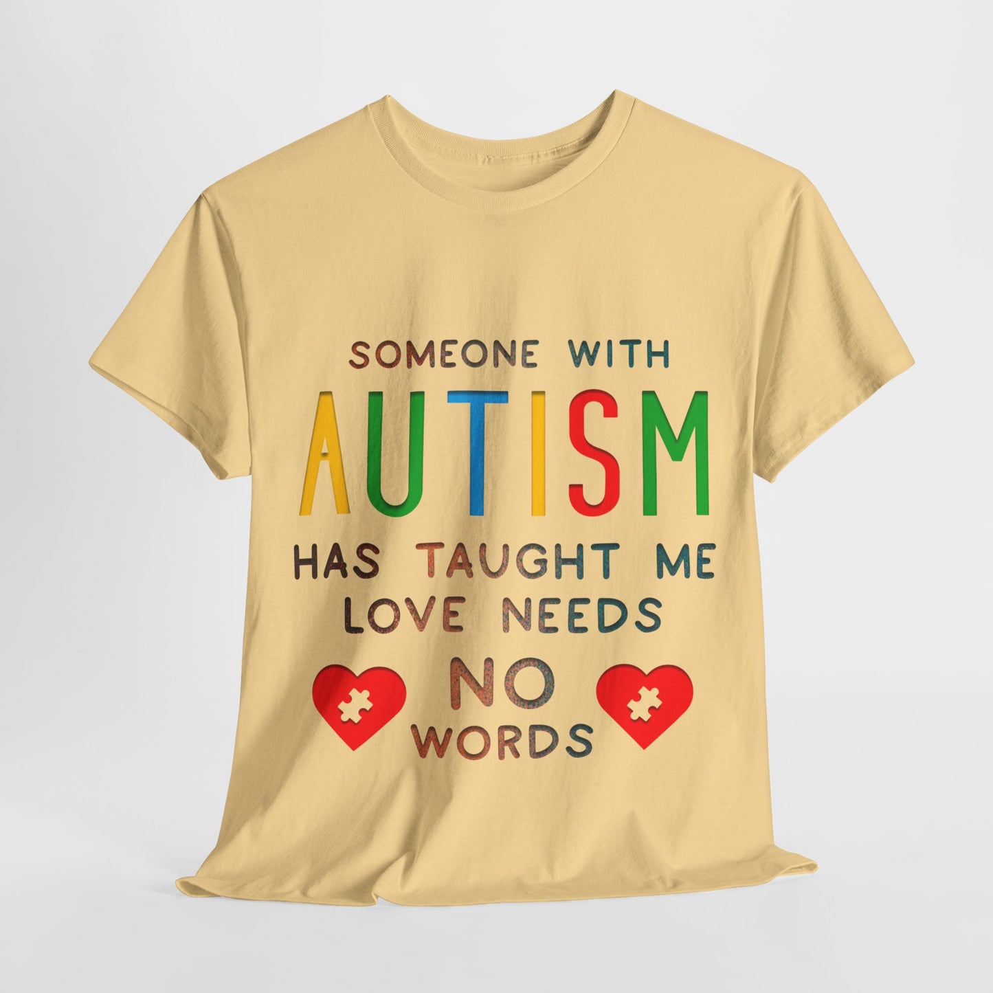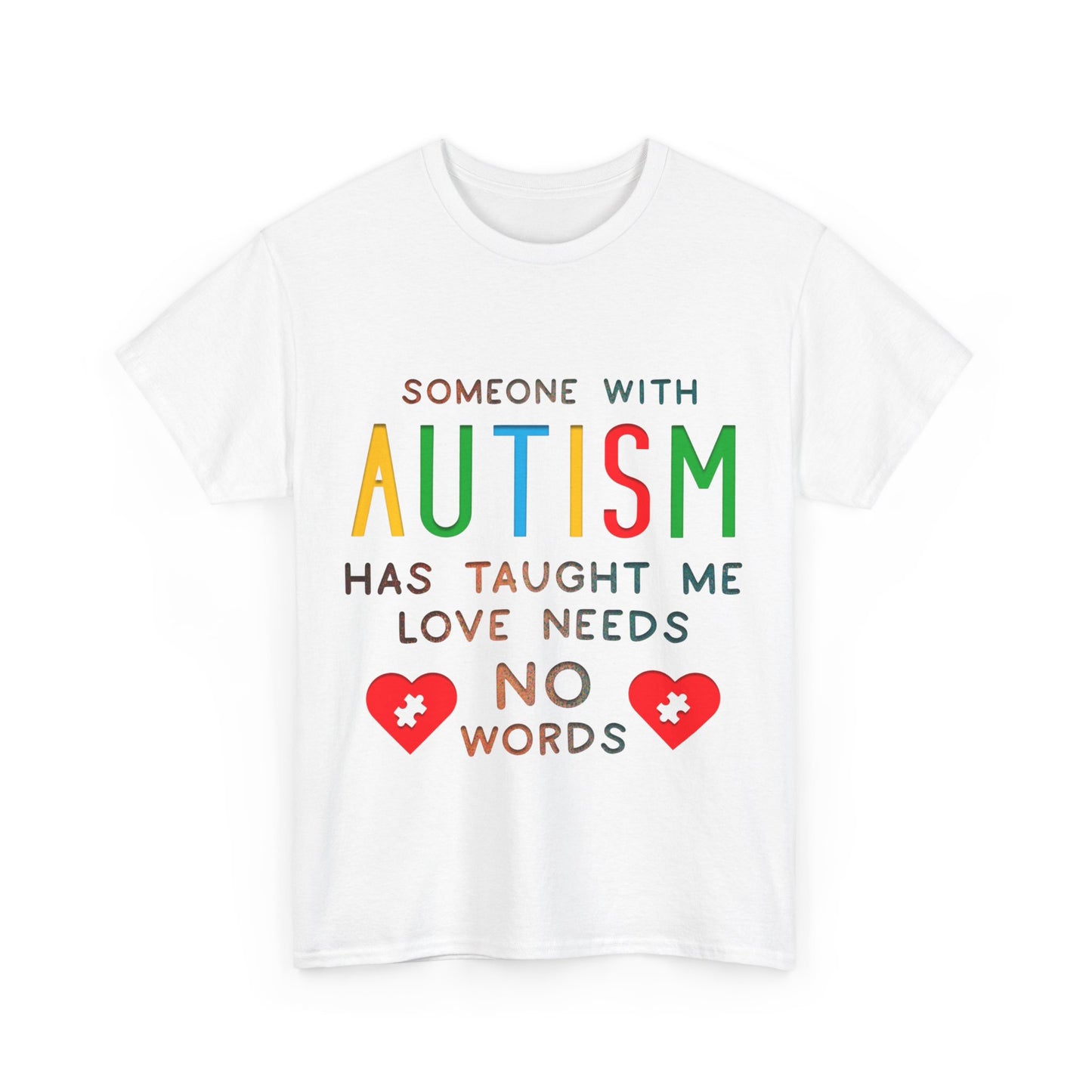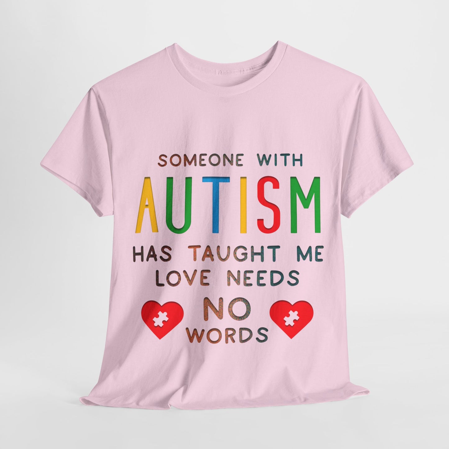 Autism Someone with Autism has Taught Me Love Needs No Words T-shirt Unisex Heavy Cotton