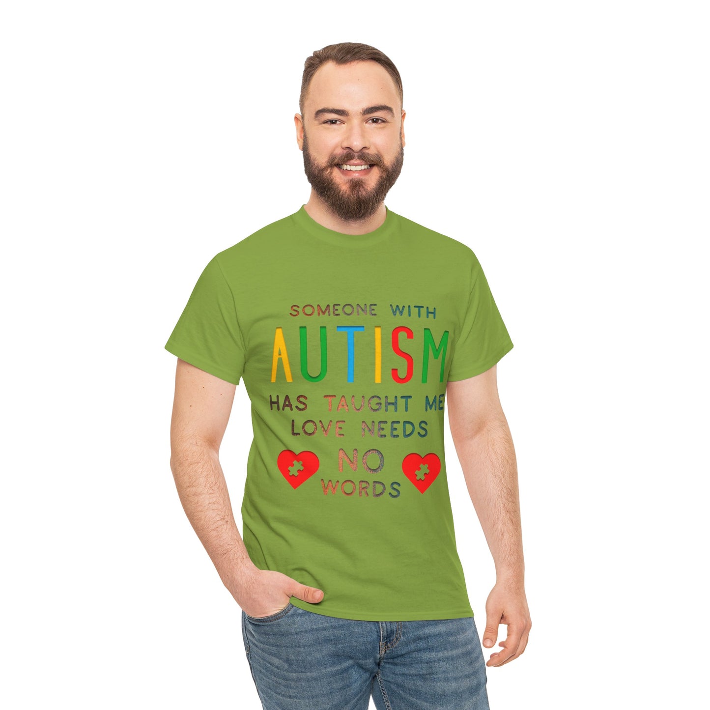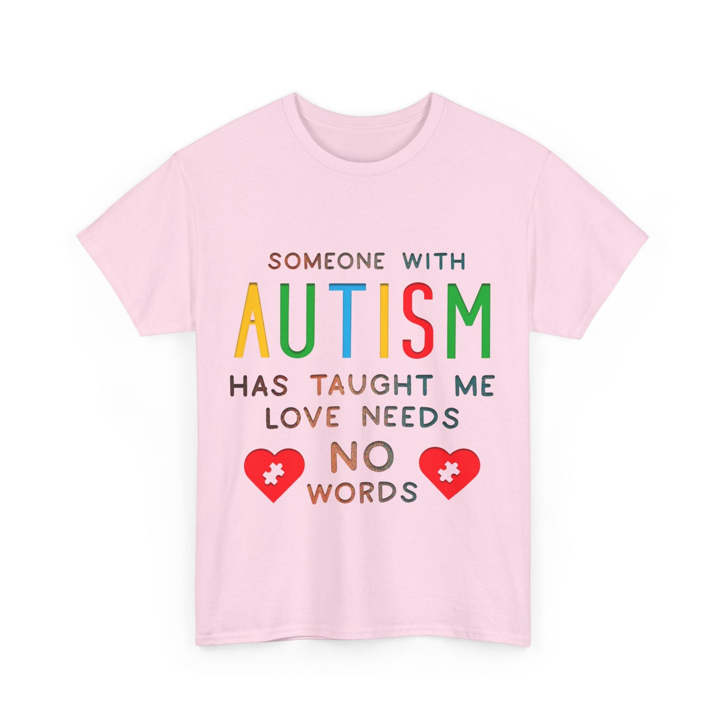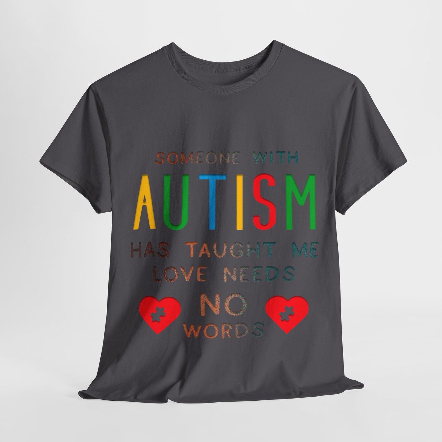 Autism Someone with Autism has Taught Me Love Needs No Words T-shirt Unisex Heavy Cotton