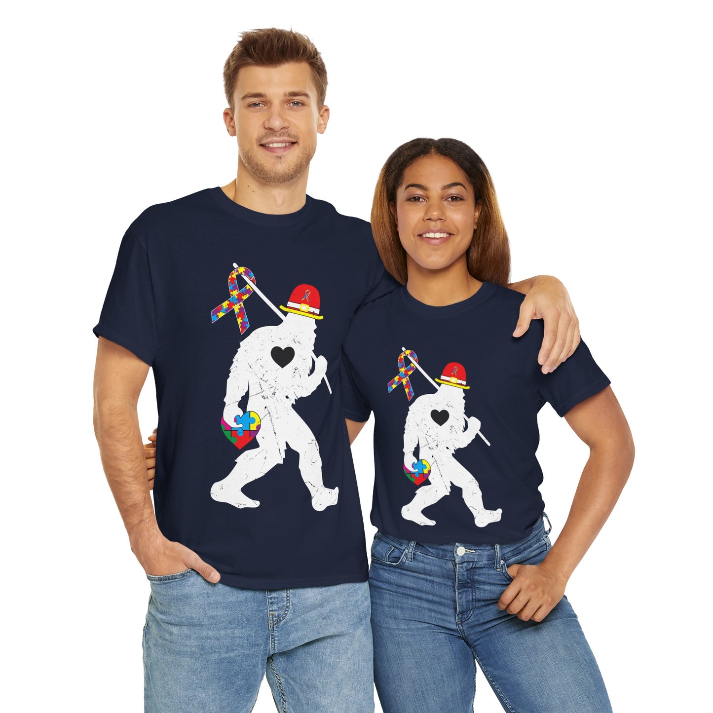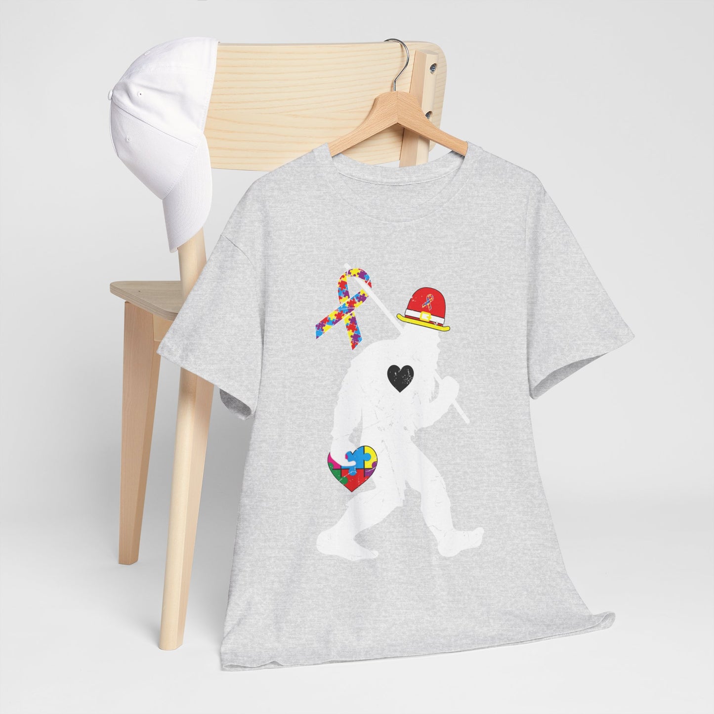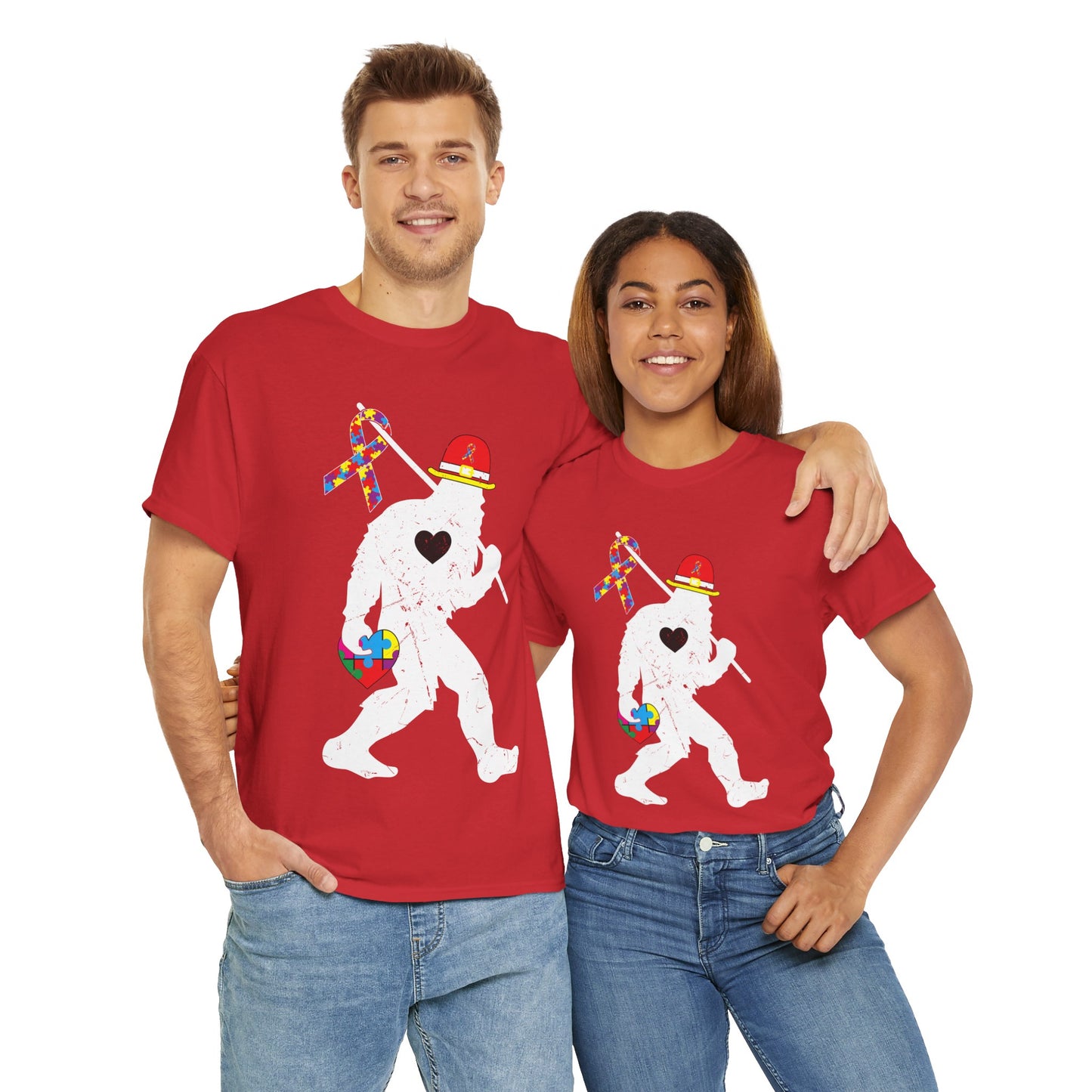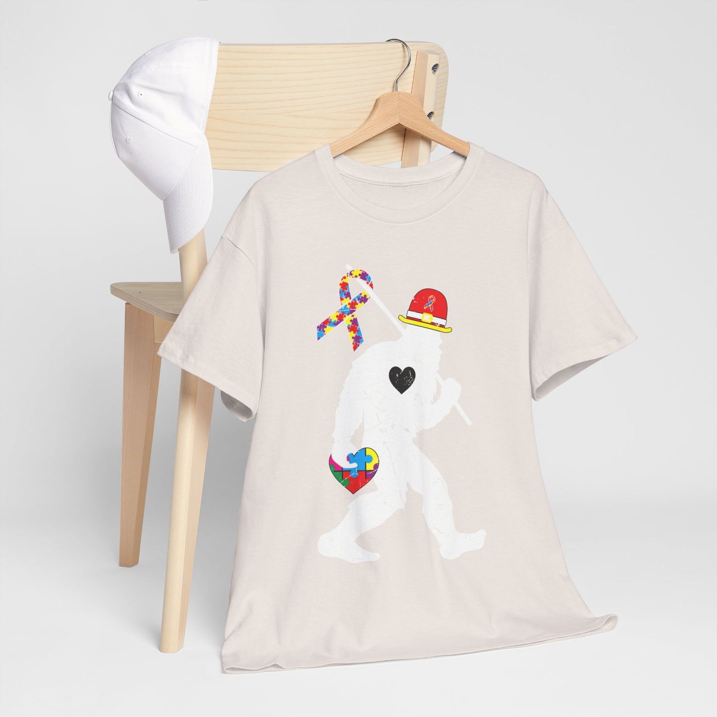 Bigfoot Heart Puzzle Piece Autism T shirt unisex heavy cotton T-shirt