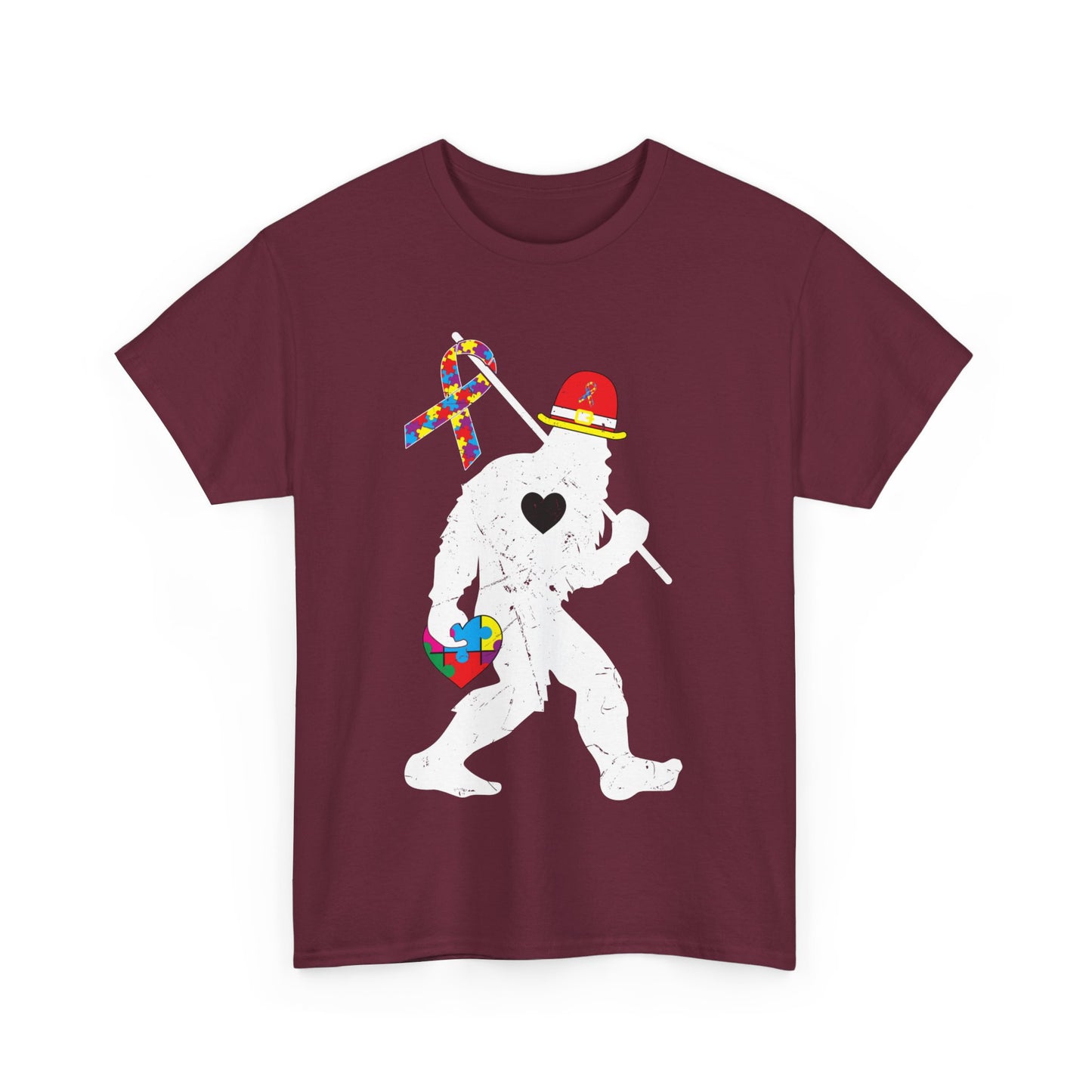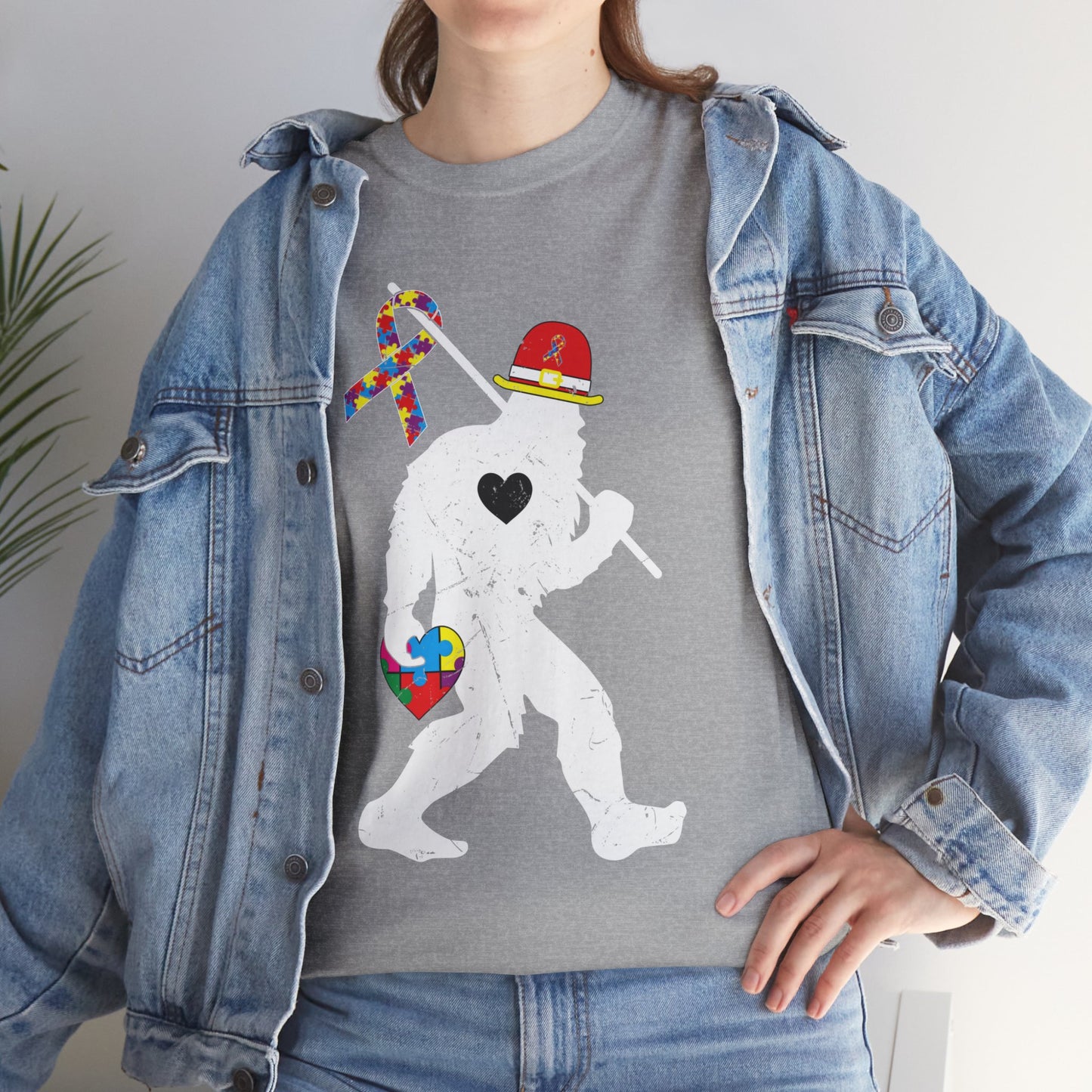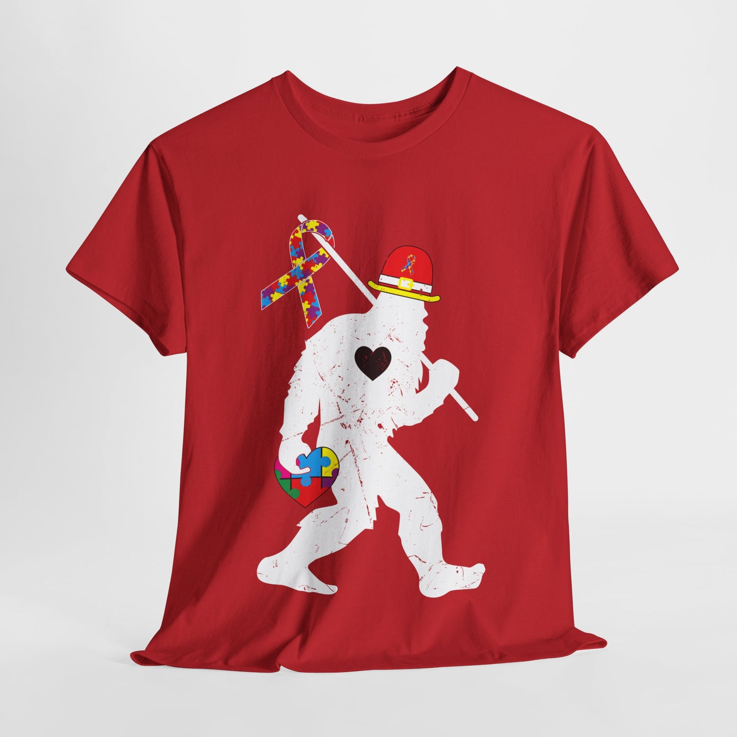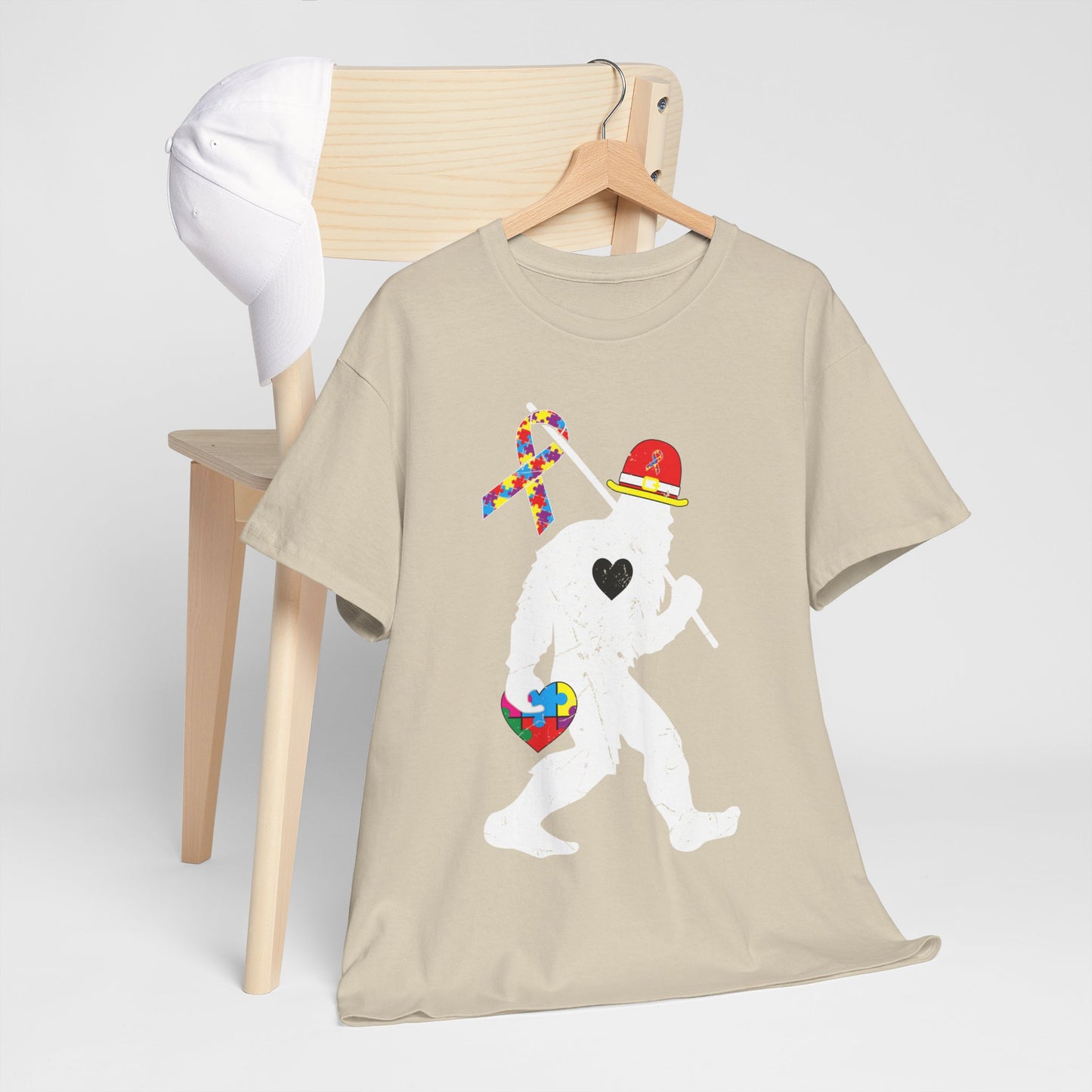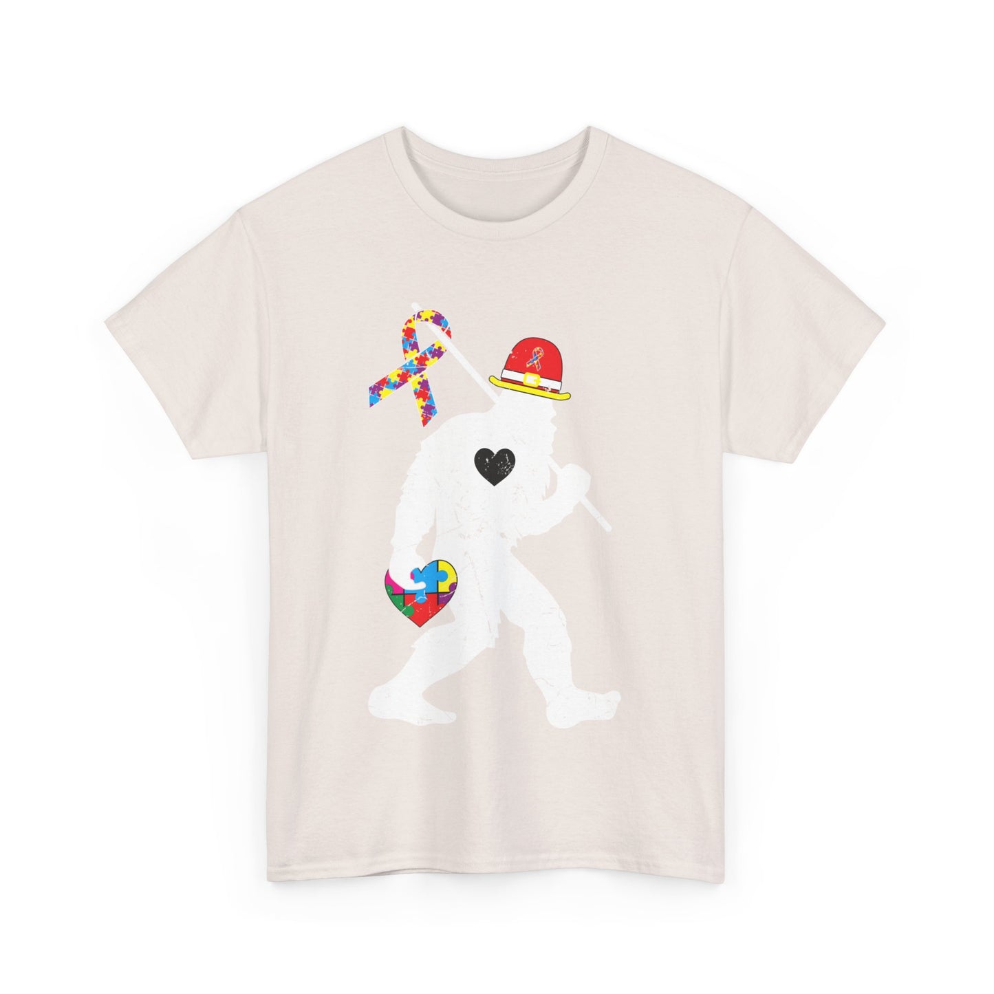 Bigfoot Heart Puzzle Piece Autism T shirt unisex heavy cotton T-shirt