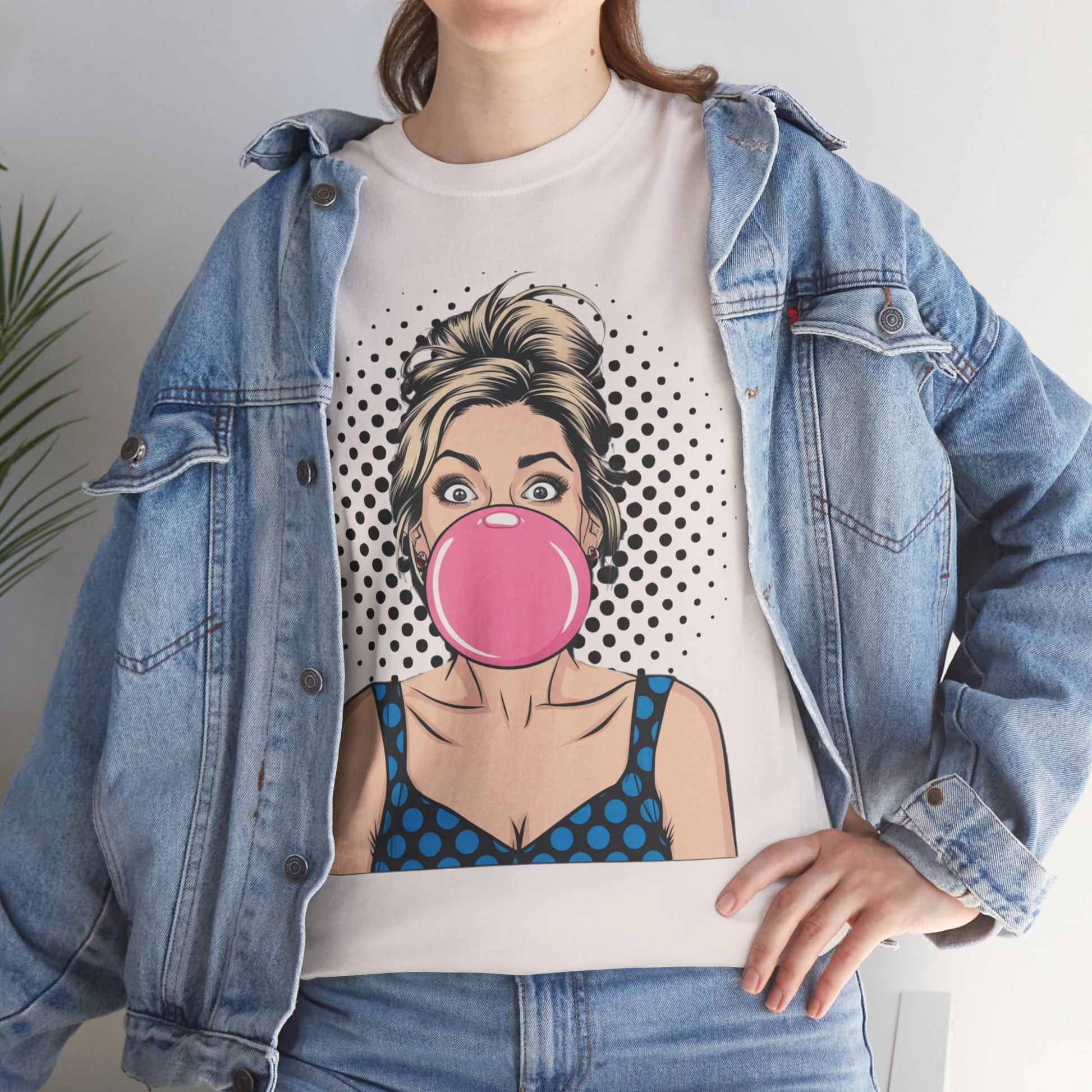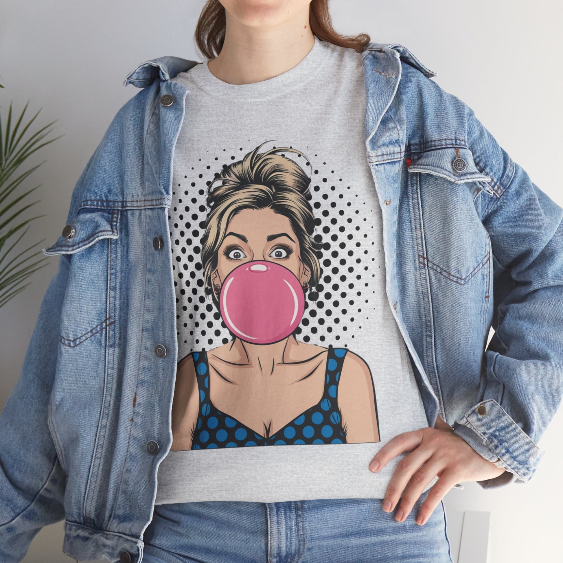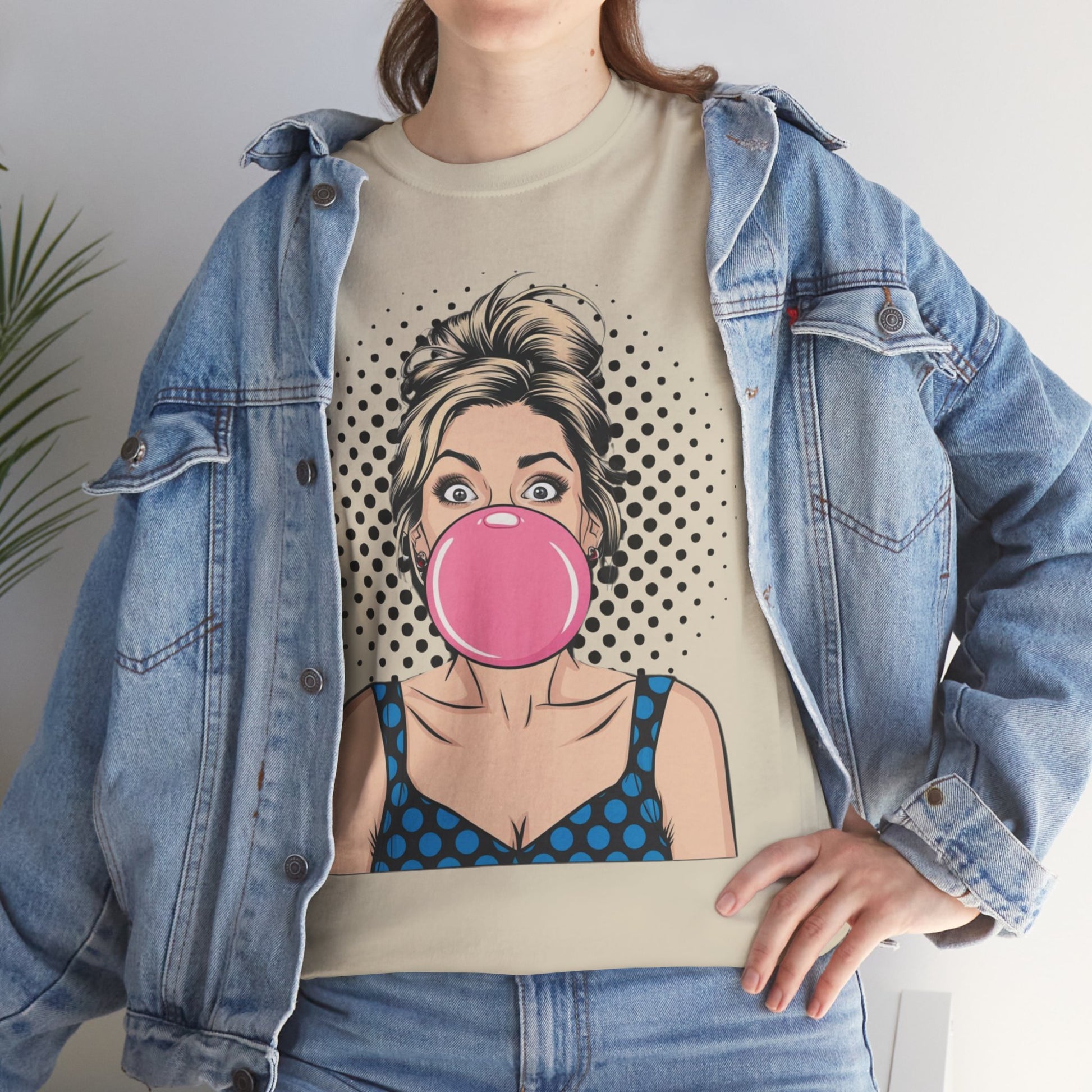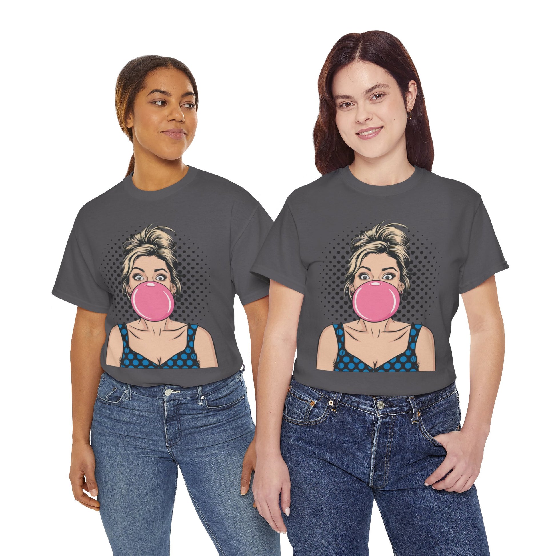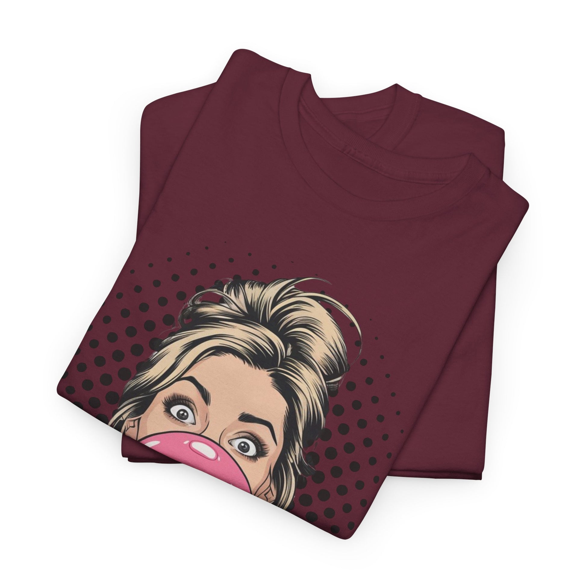 PopArt Girl Bubble Gum Bubble Tshirt unisex heavy cotton