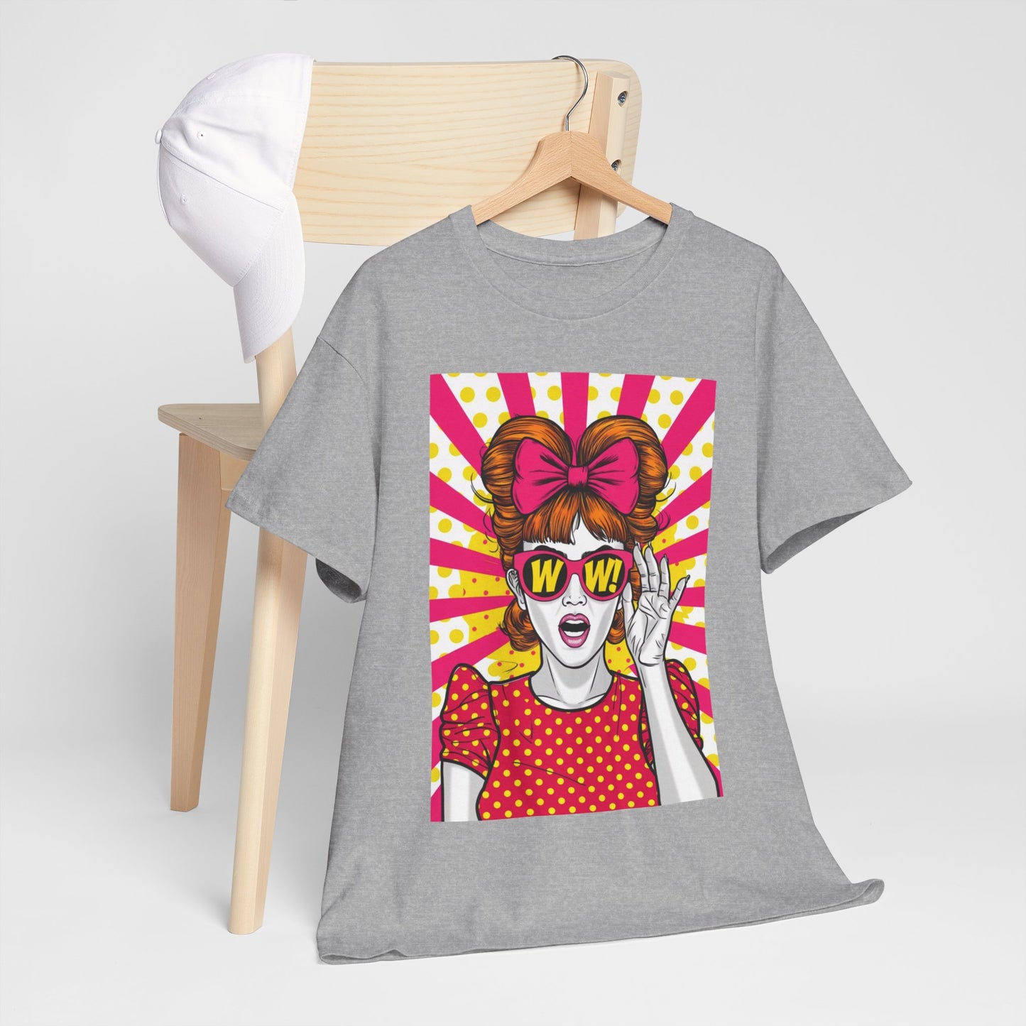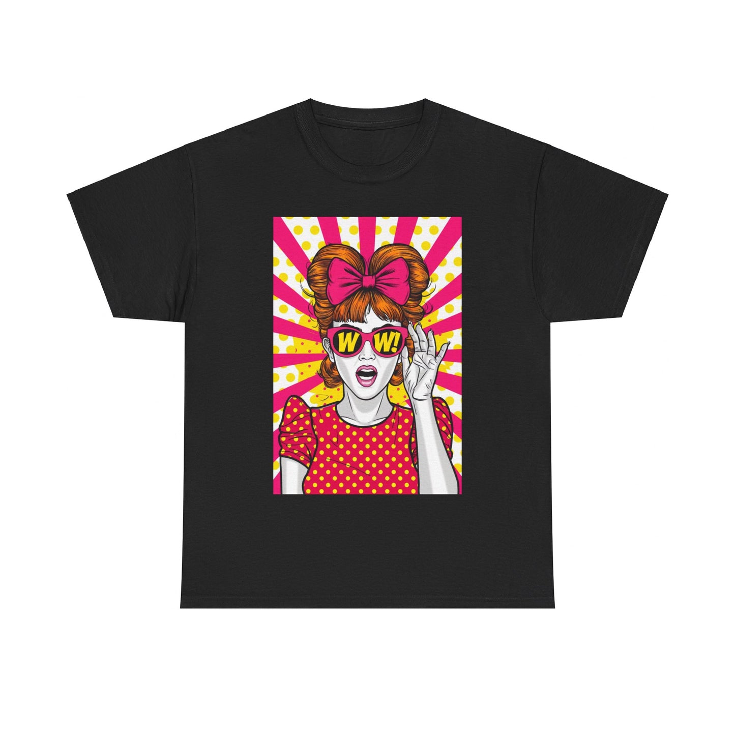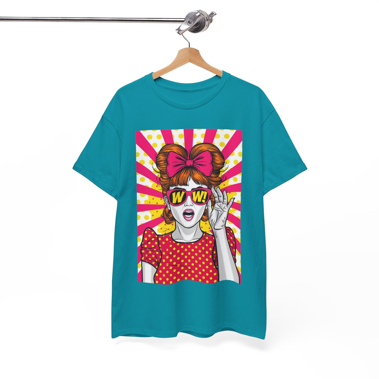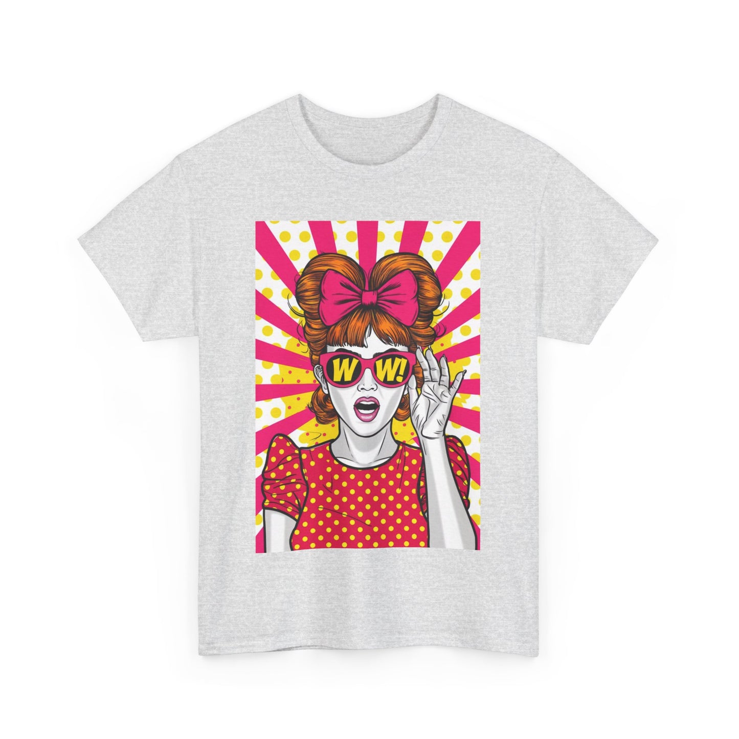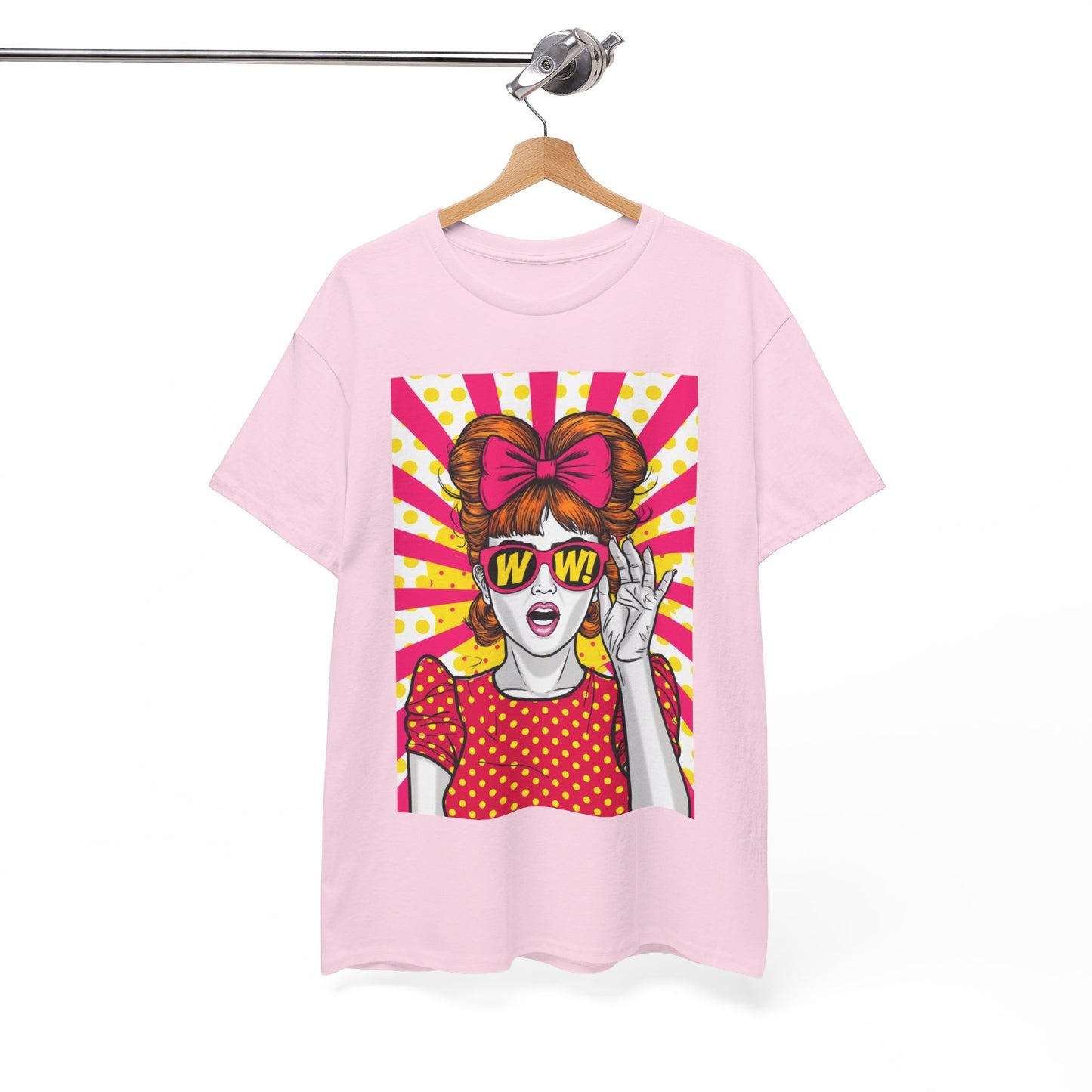 PopArt Girl WOW with Sunglasses Unisex heavy cotton Tshirt