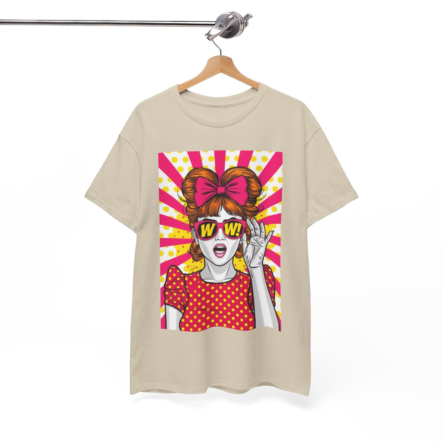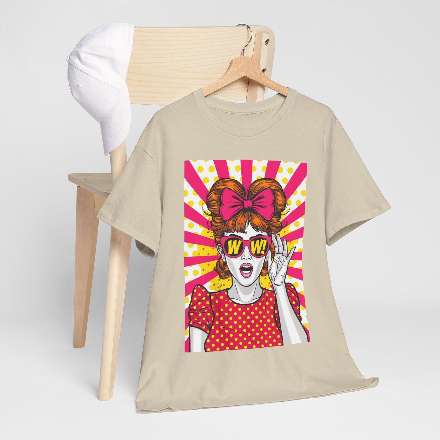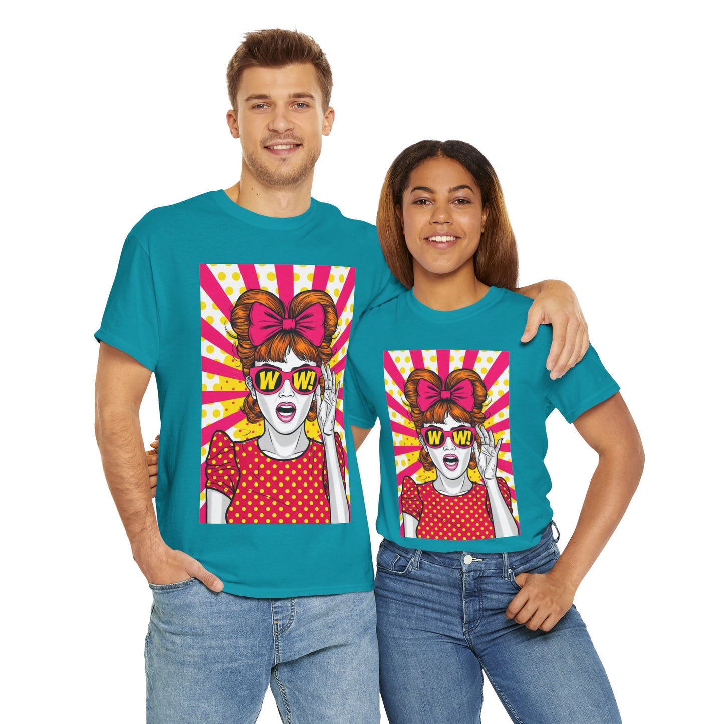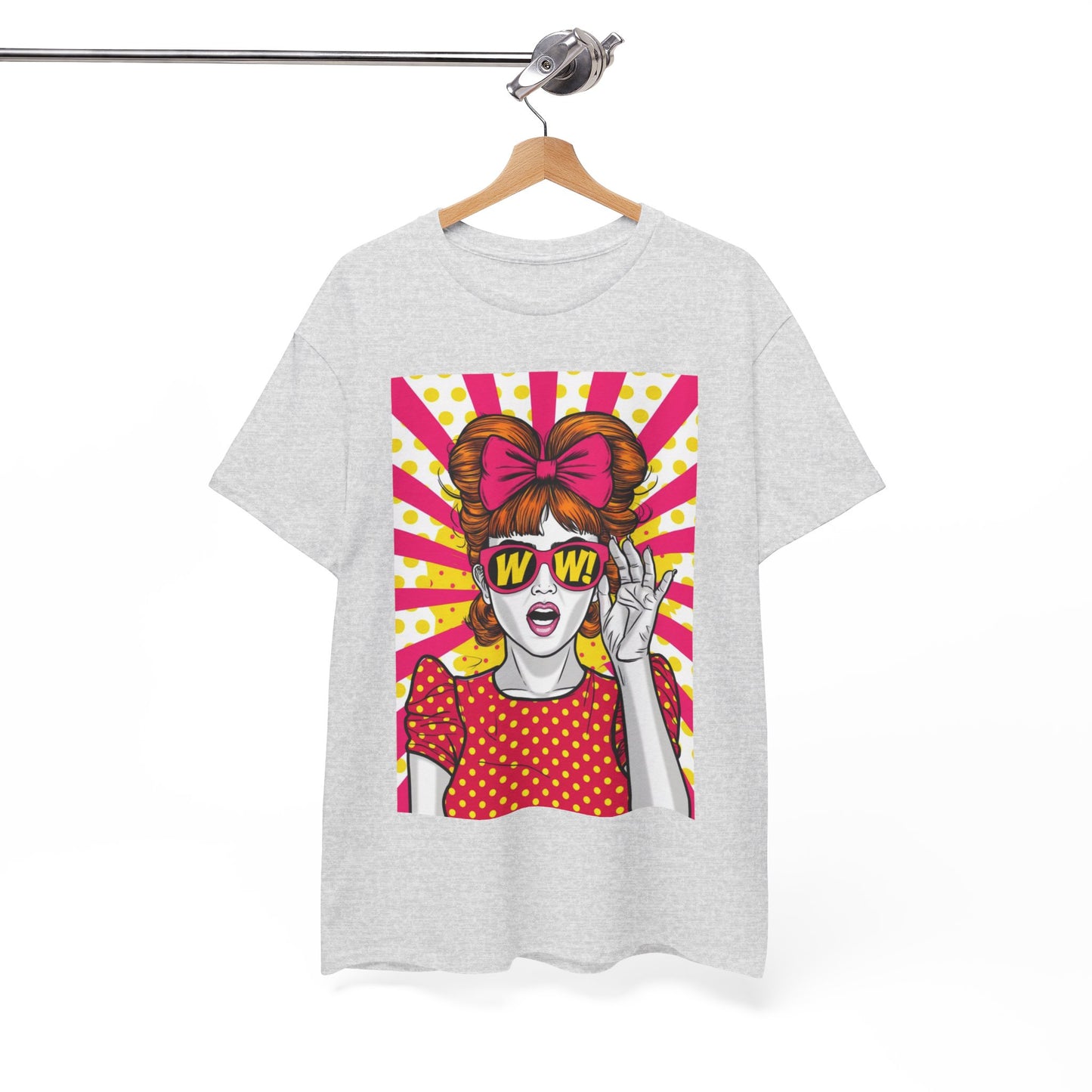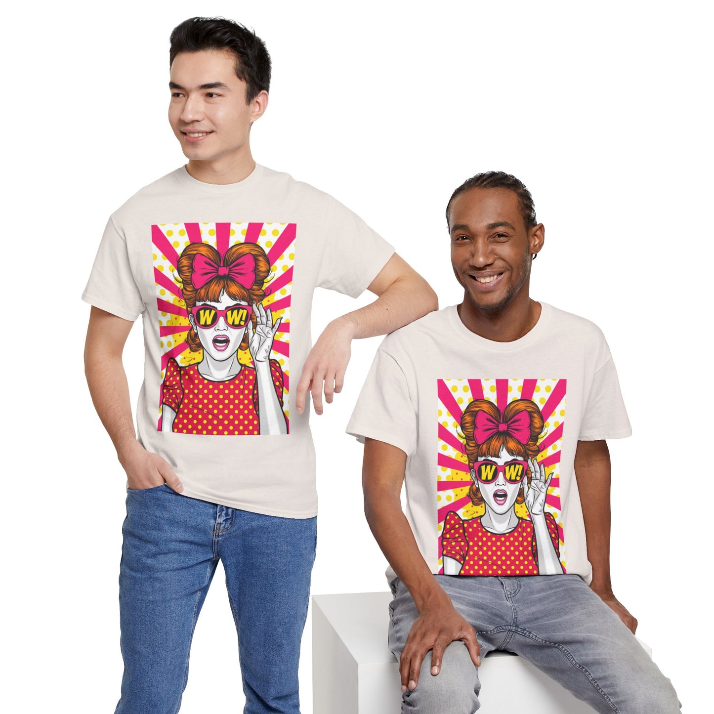 PopArt Girl WOW with Sunglasses Unisex heavy cotton Tshirt