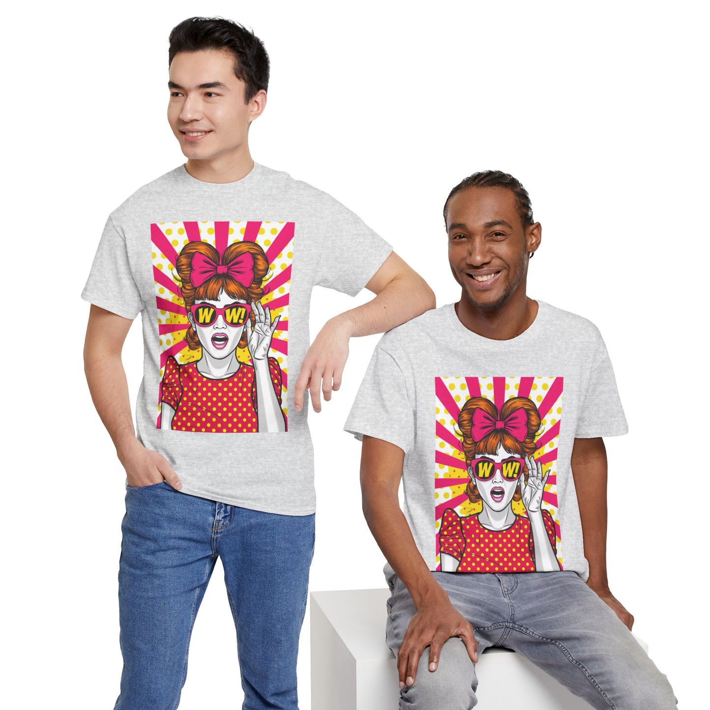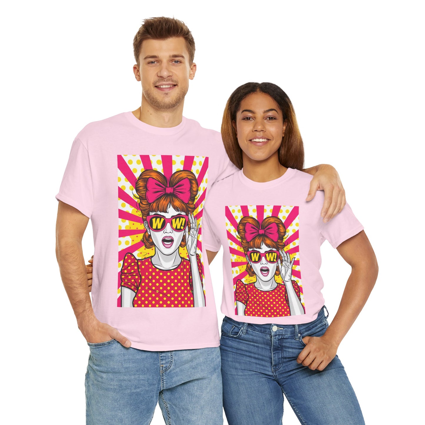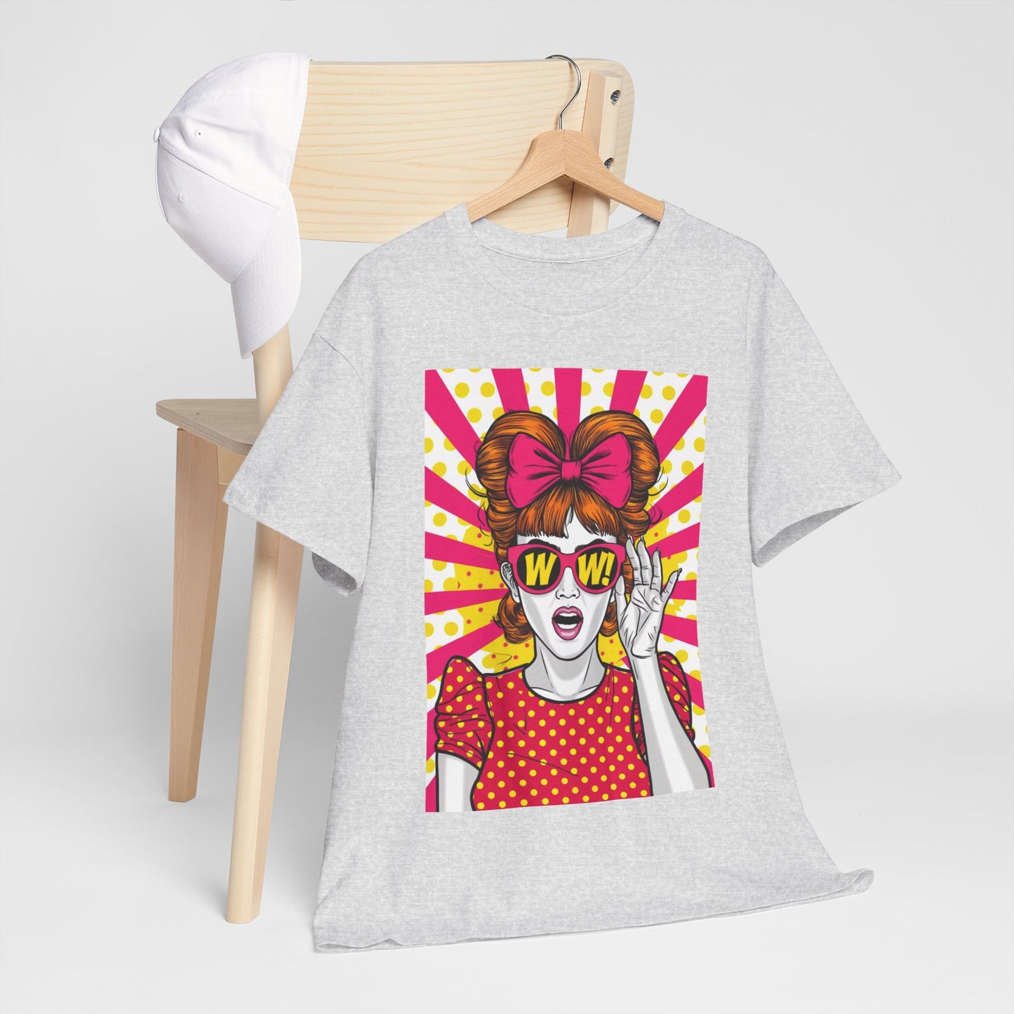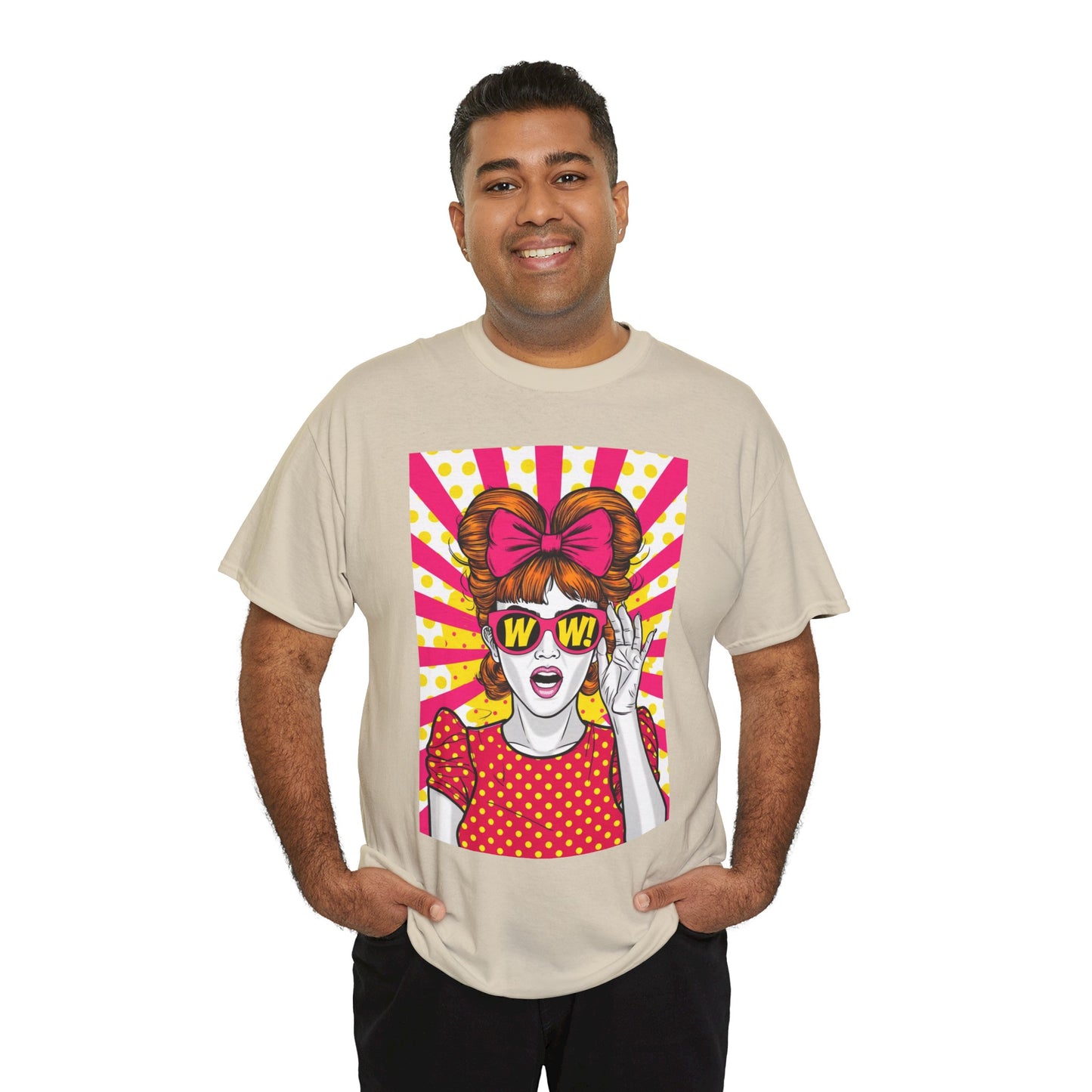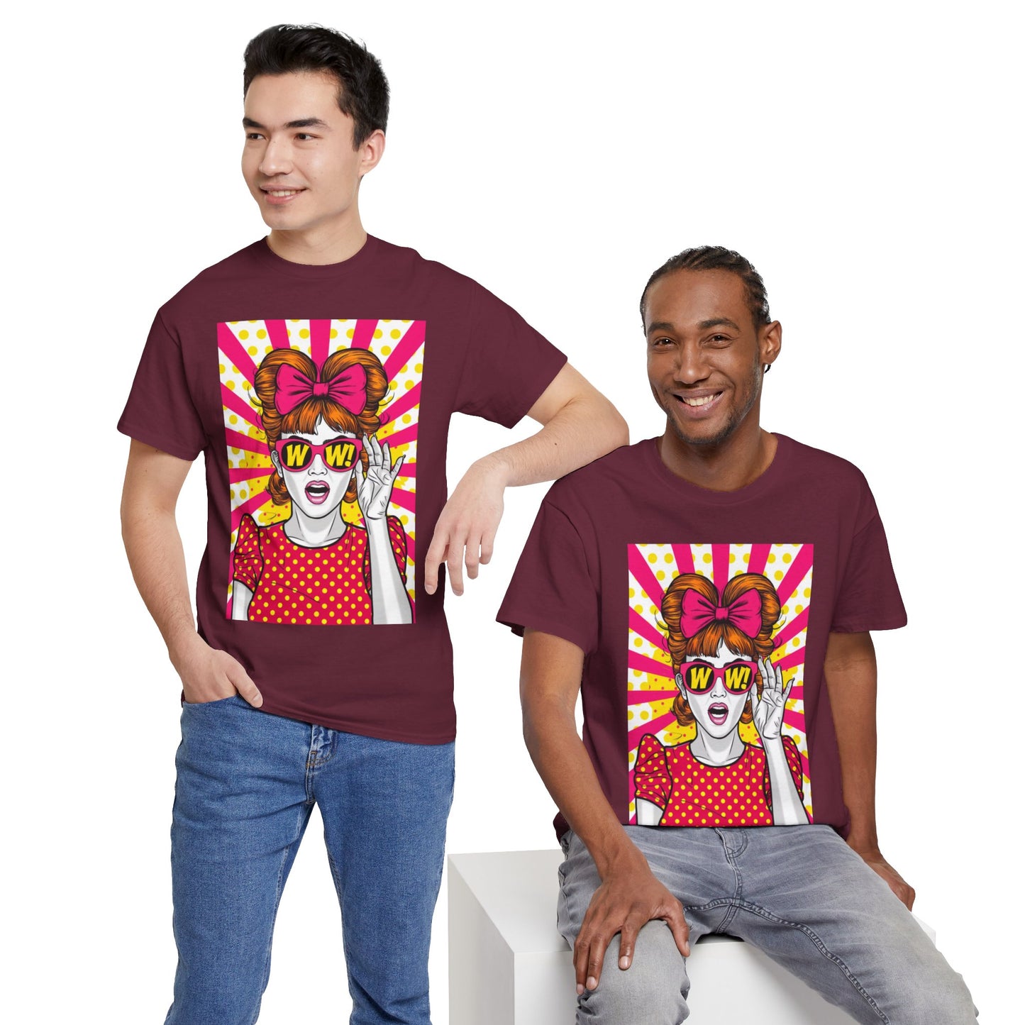 PopArt Girl WOW with Sunglasses Unisex heavy cotton Tshirt