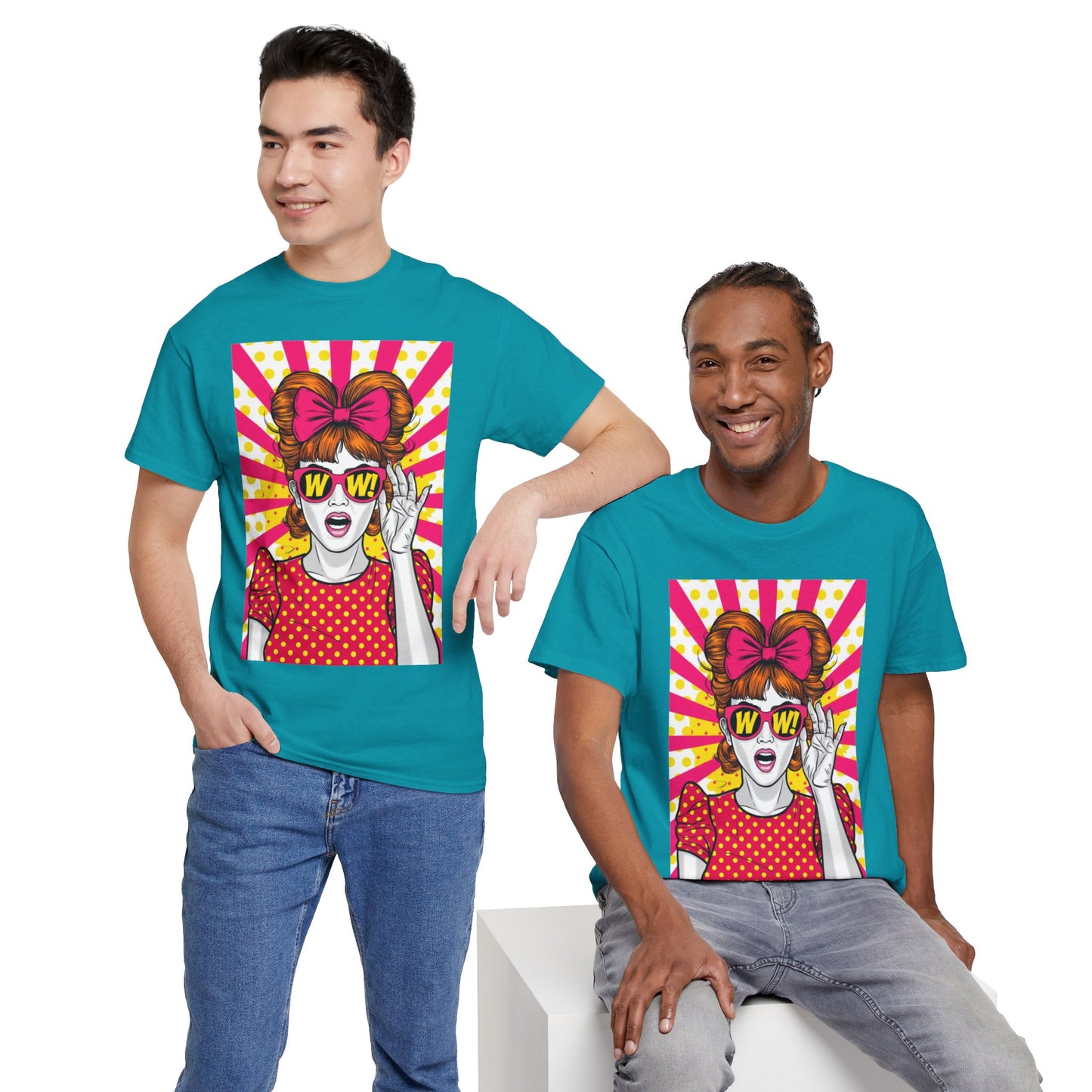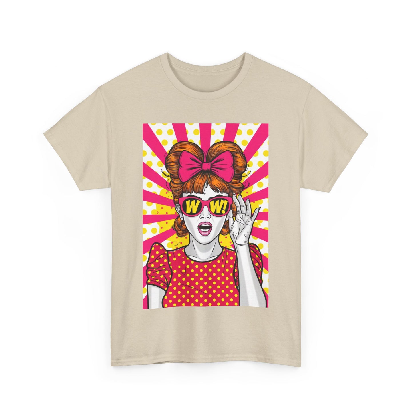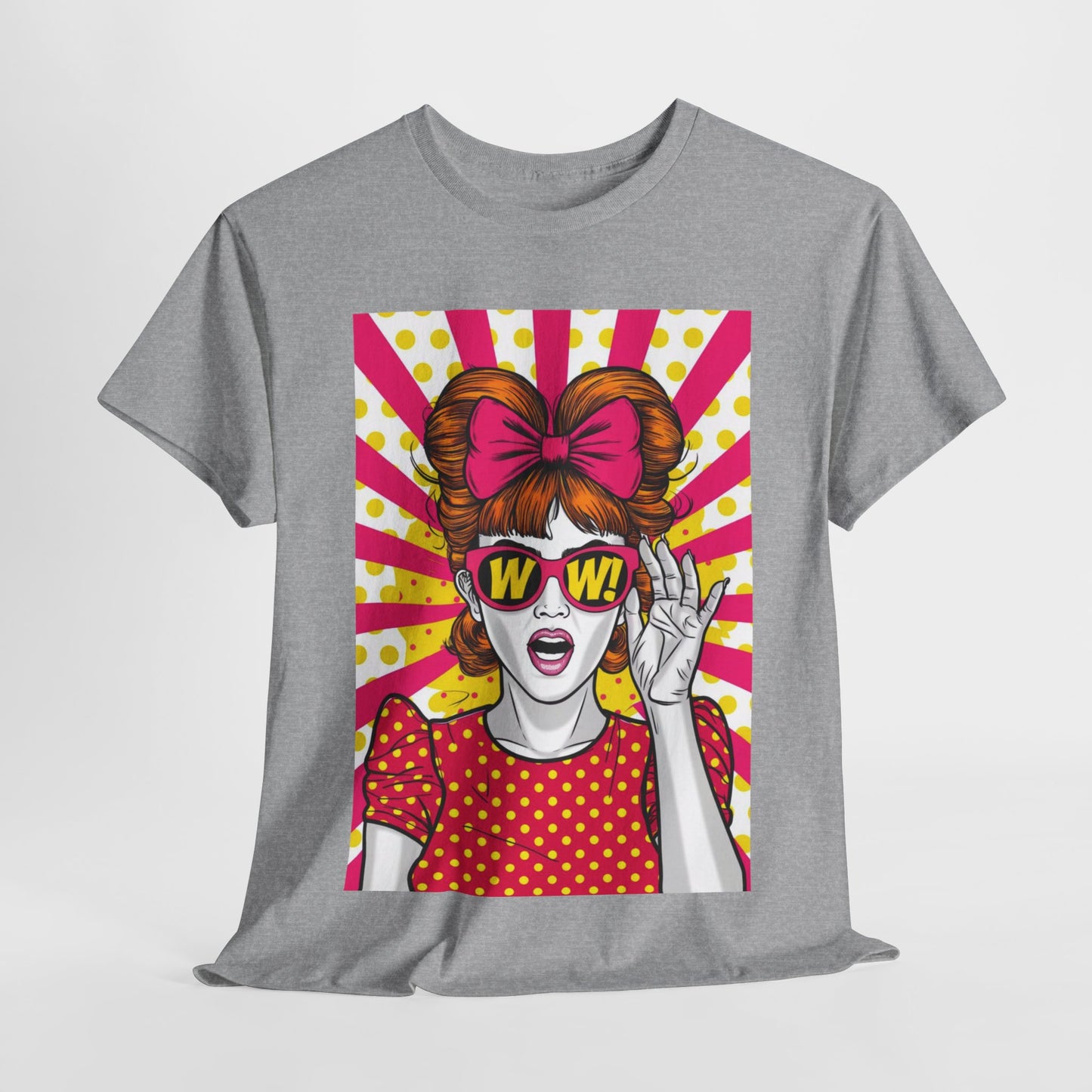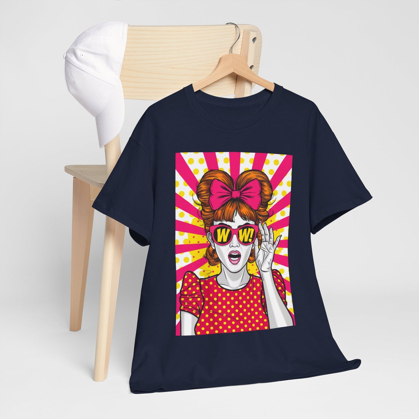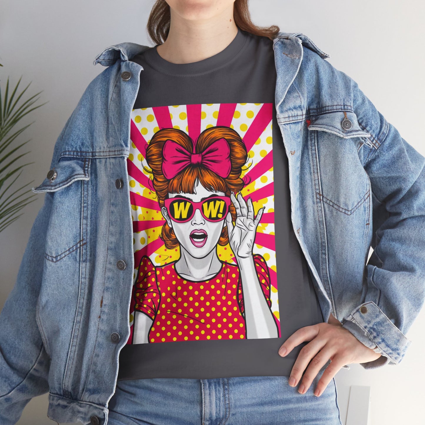 PopArt Girl WOW with Sunglasses Unisex heavy cotton Tshirt