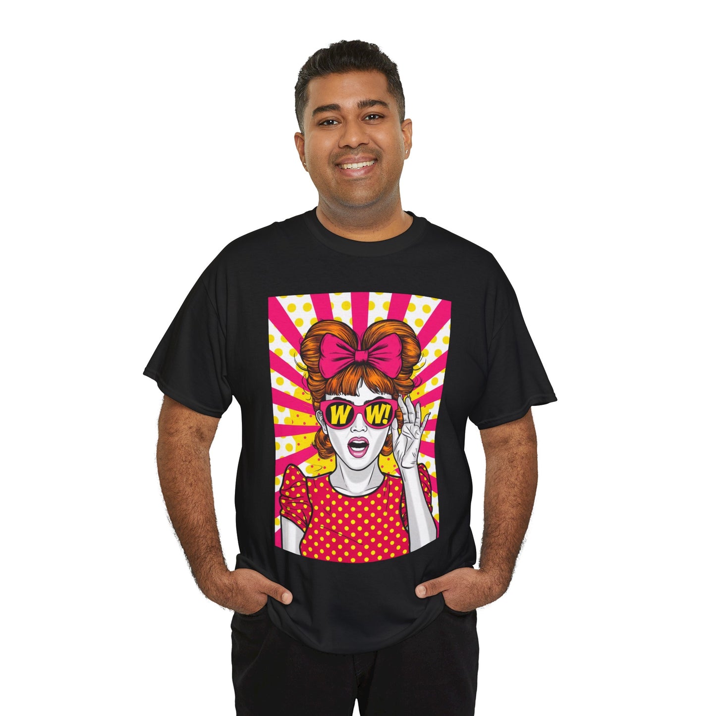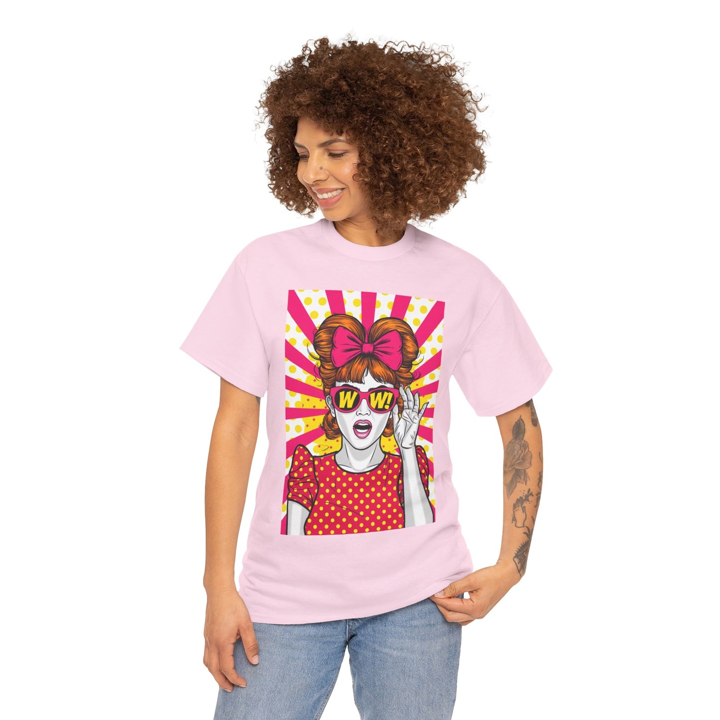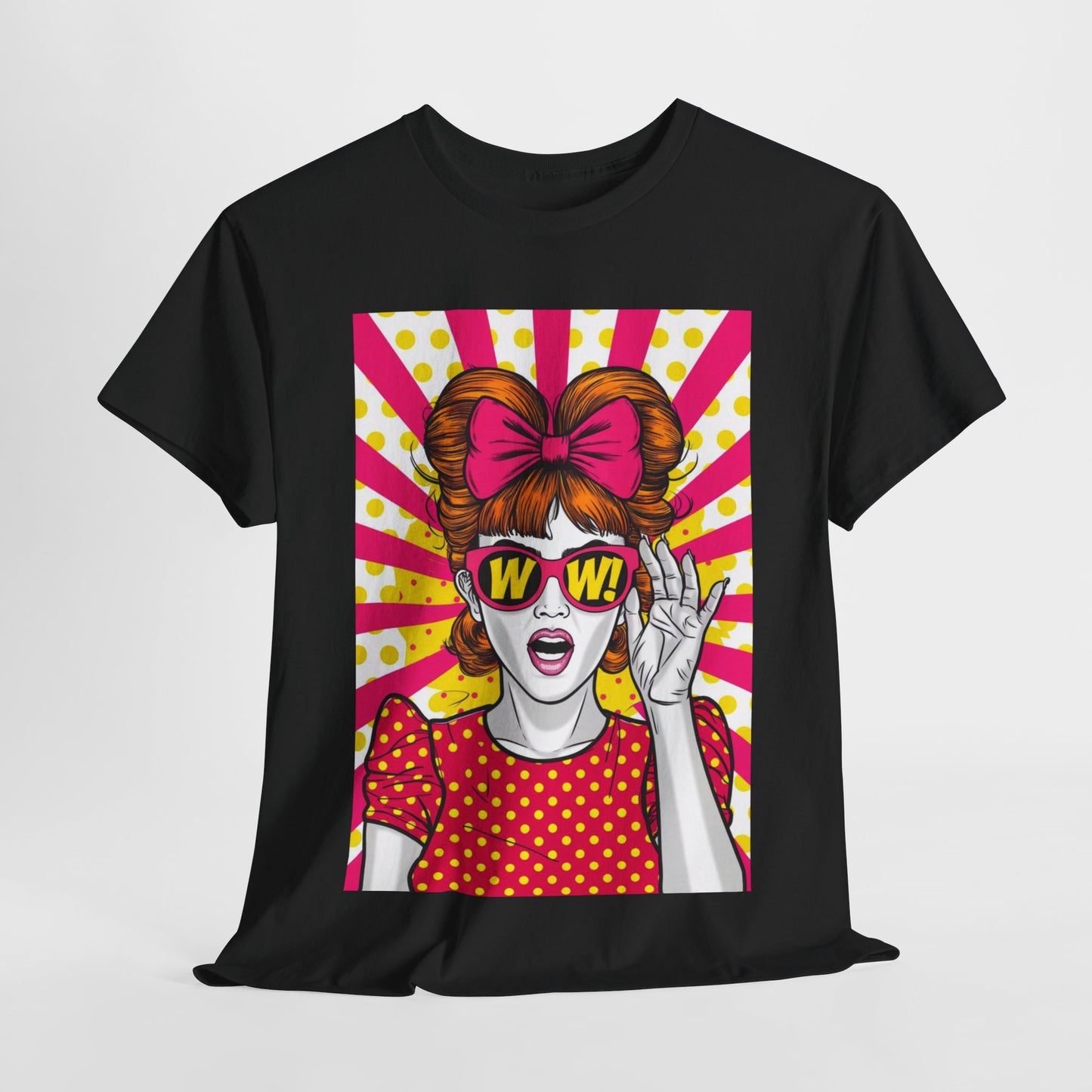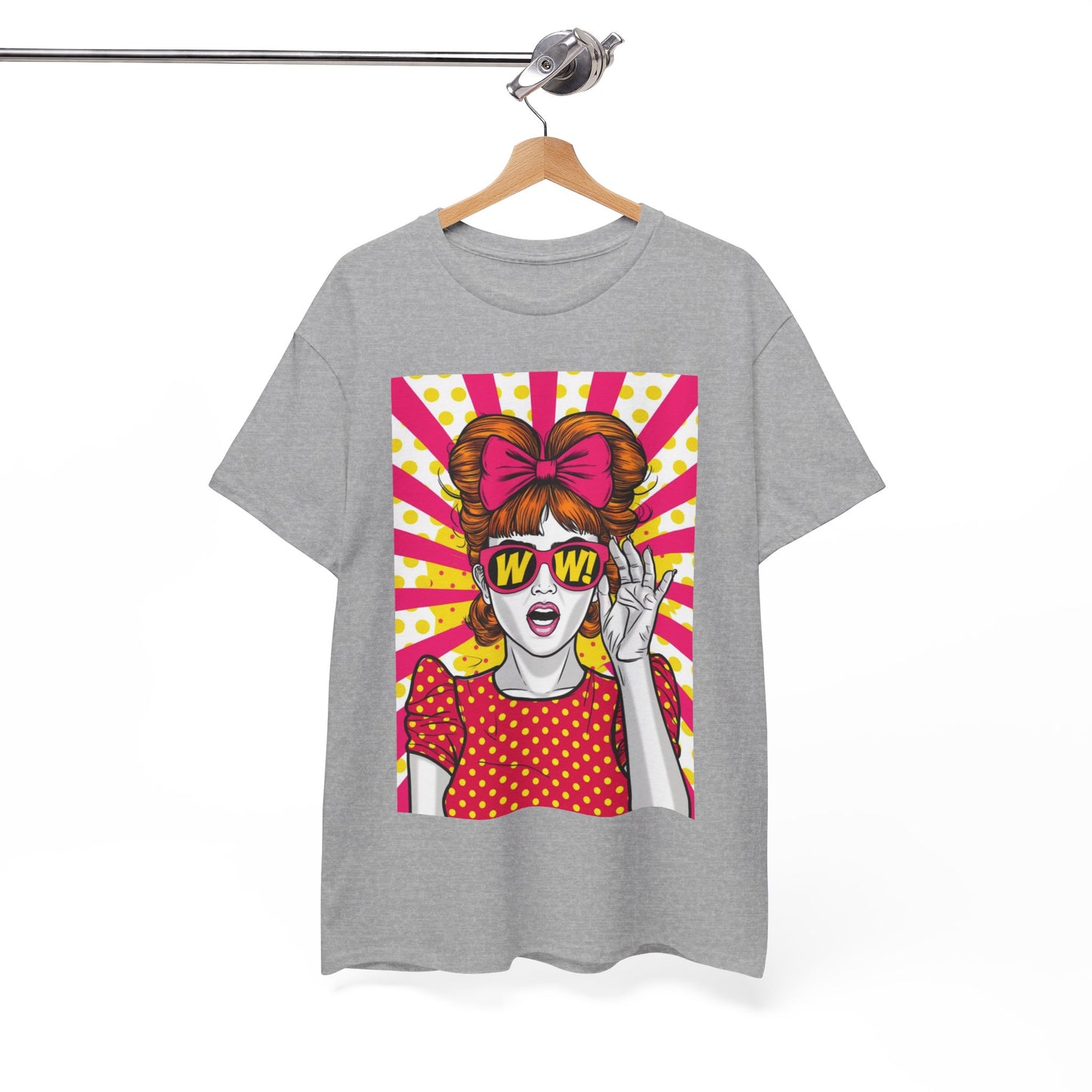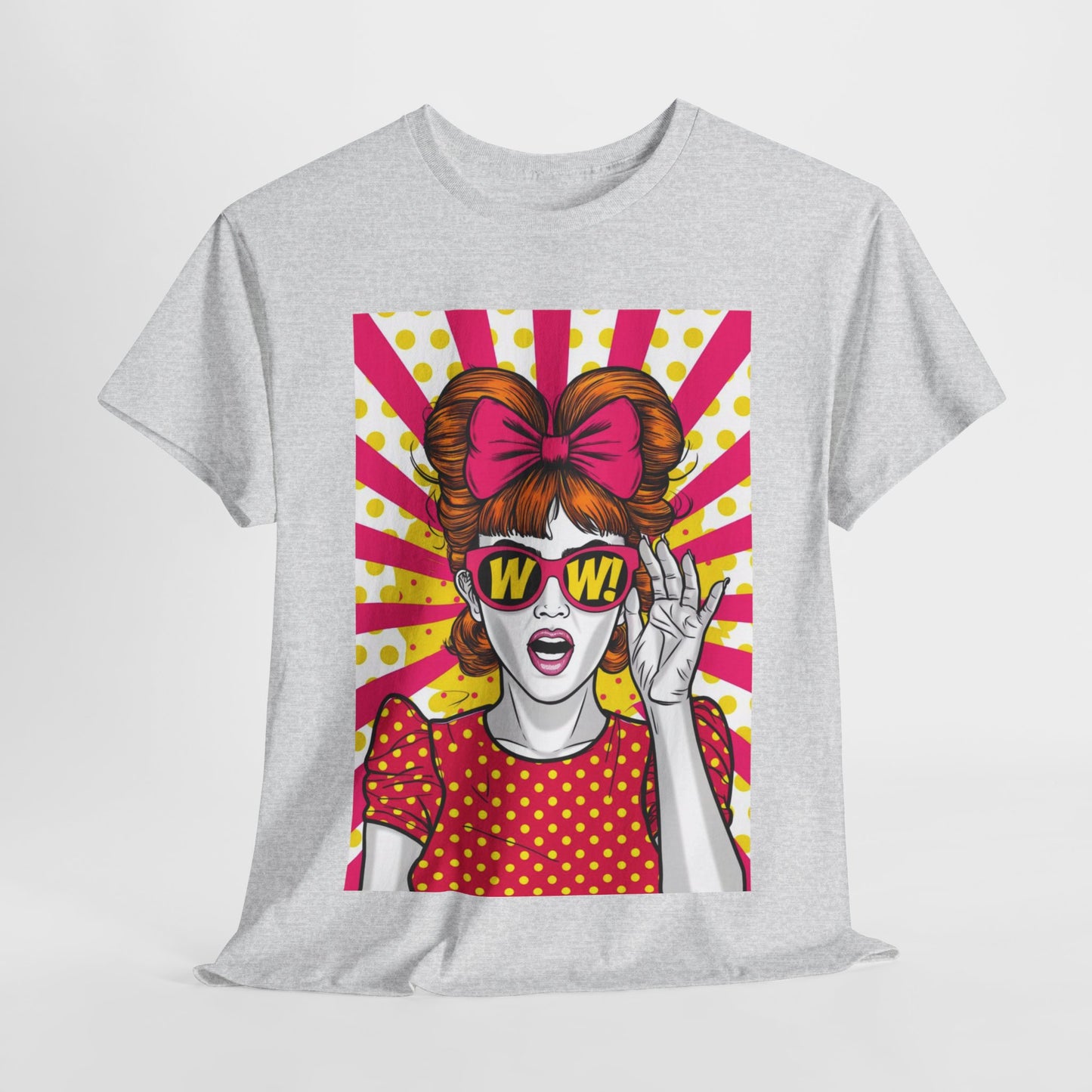 PopArt Girl WOW with Sunglasses Unisex heavy cotton Tshirt