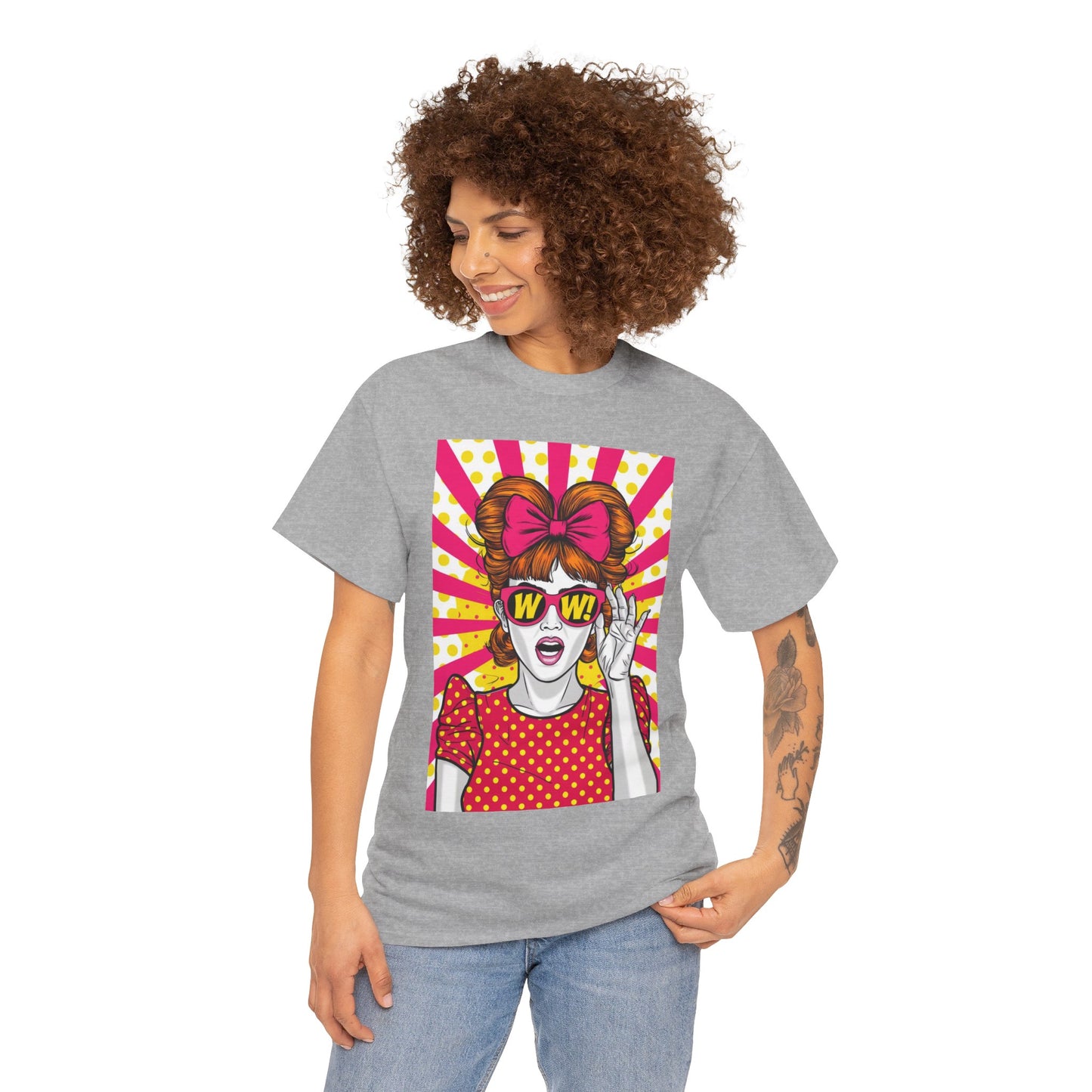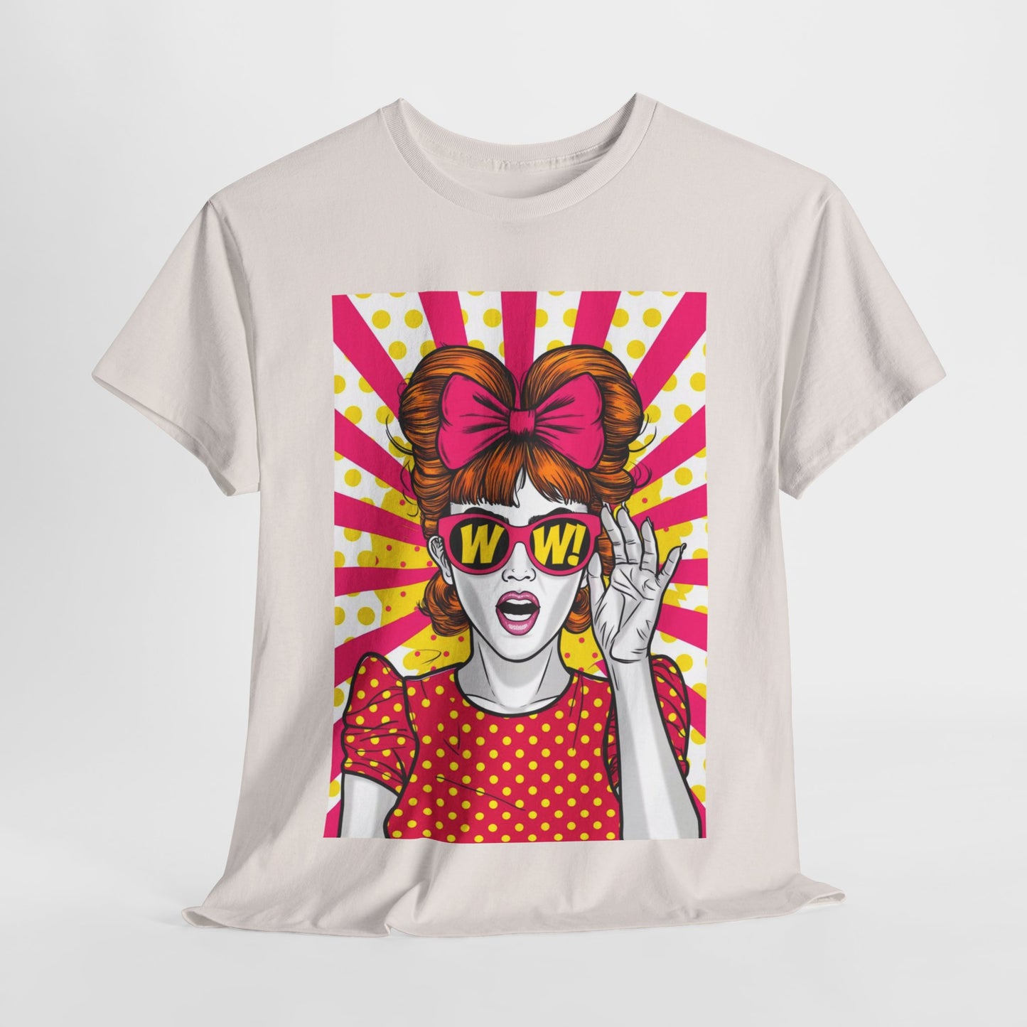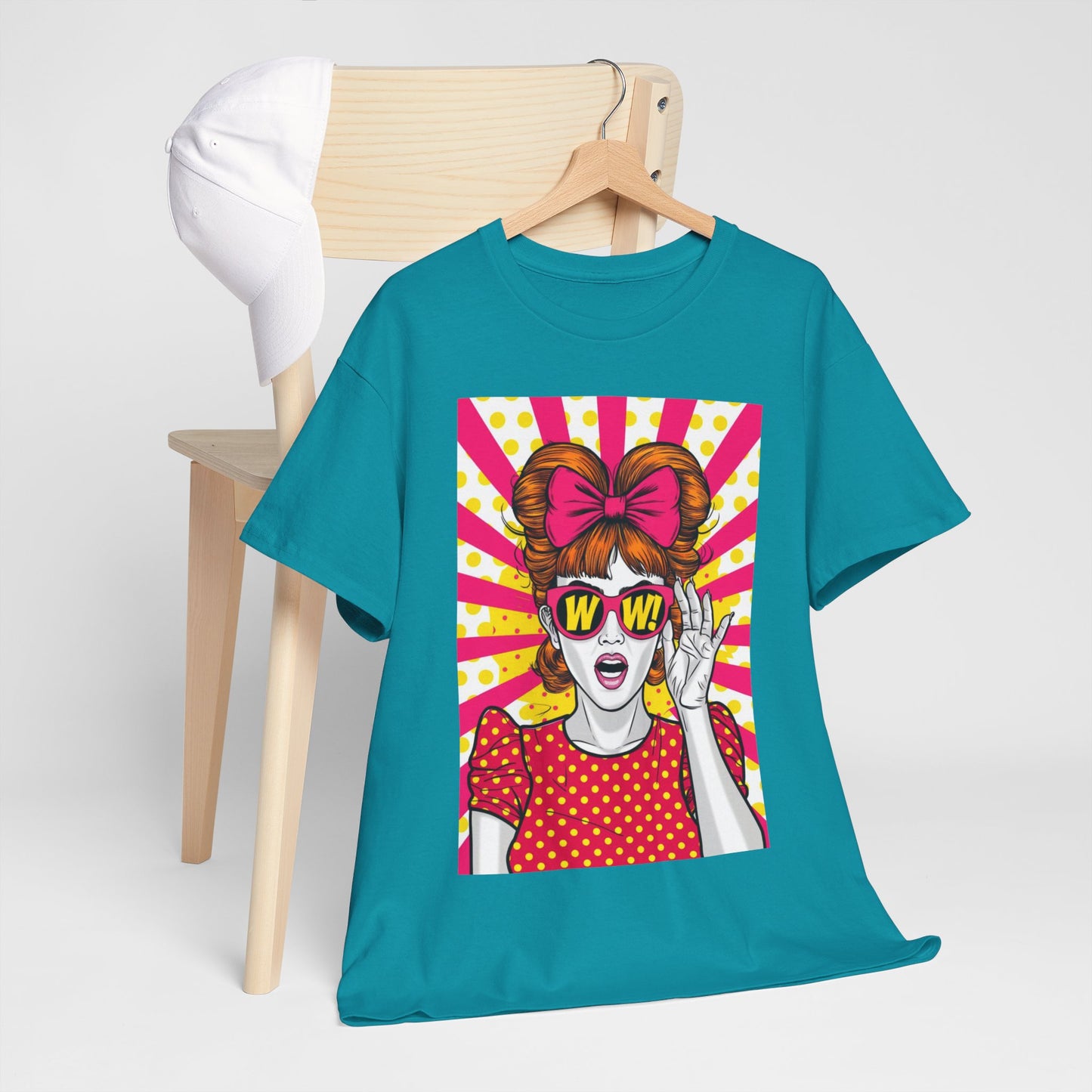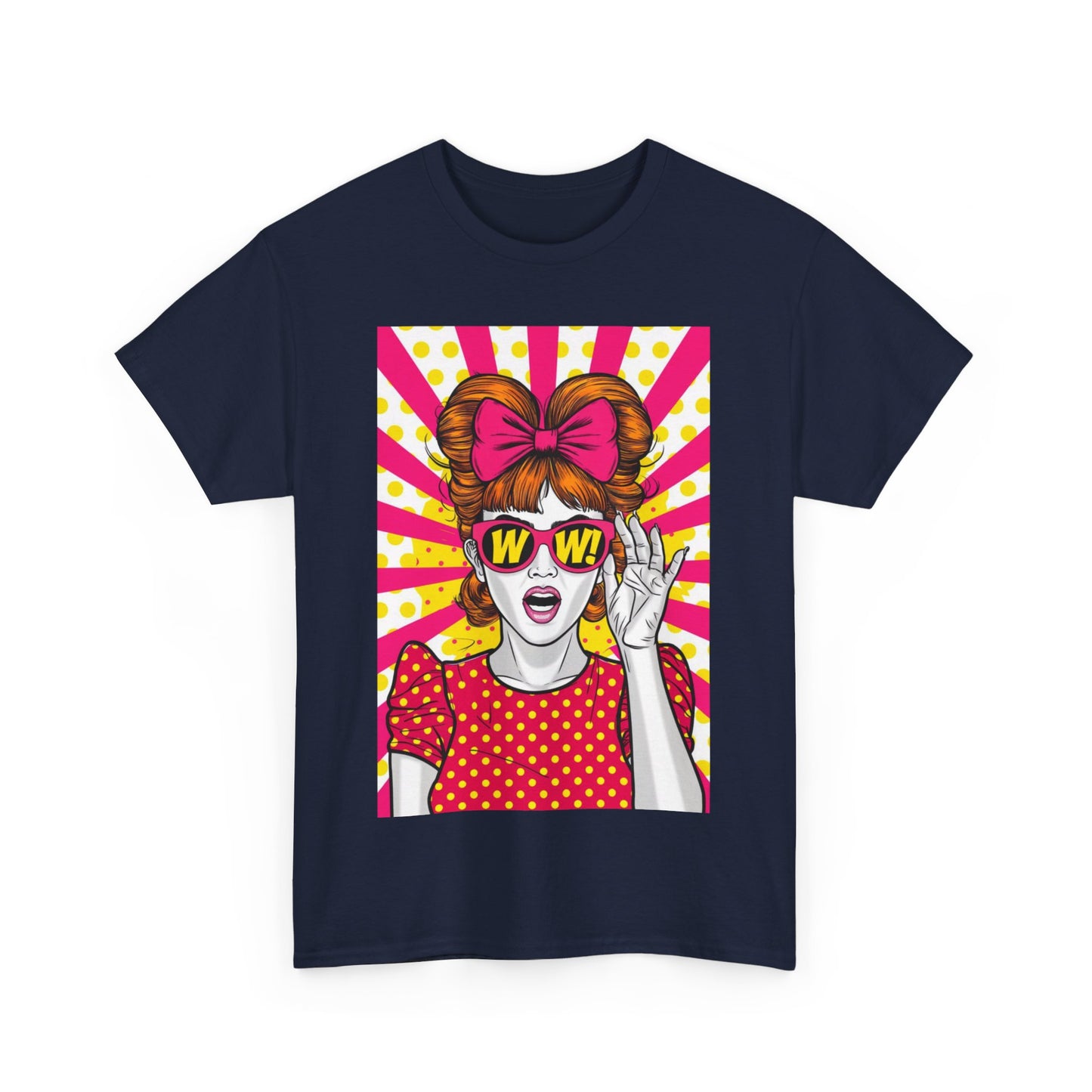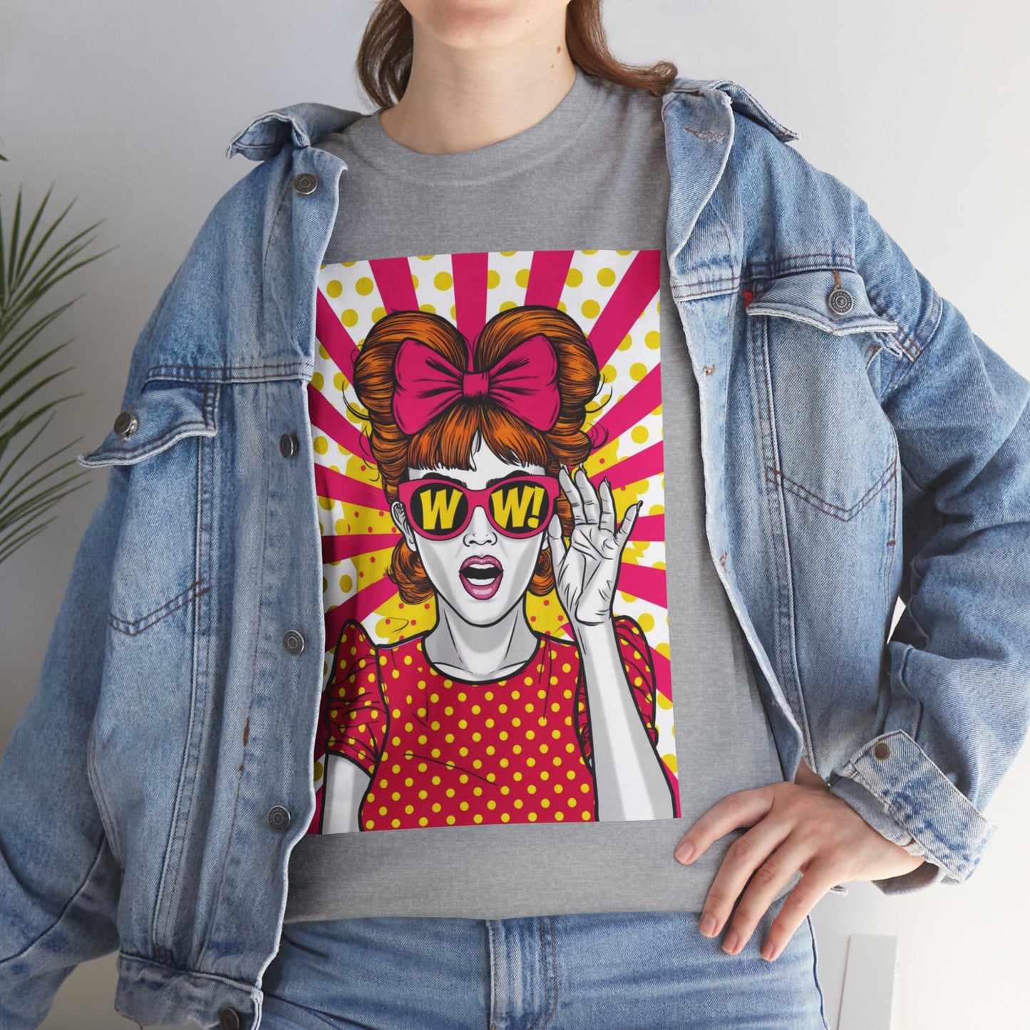 PopArt Girl WOW with Sunglasses Unisex heavy cotton Tshirt