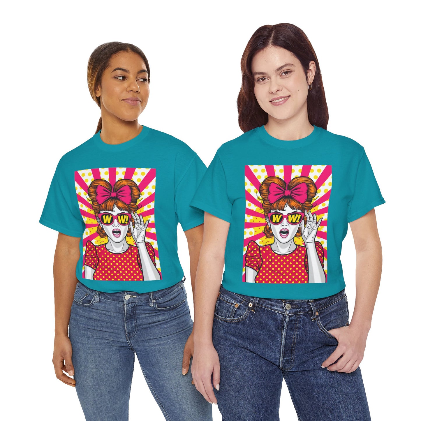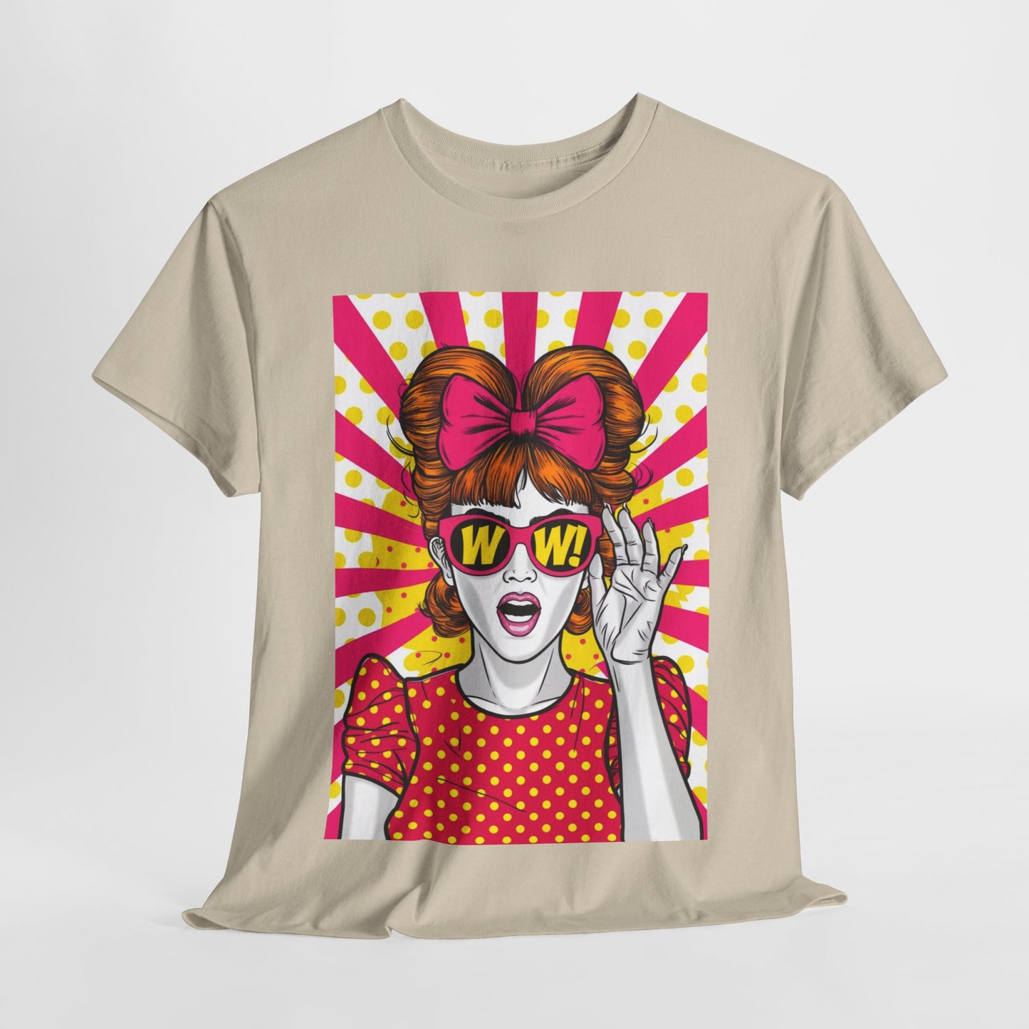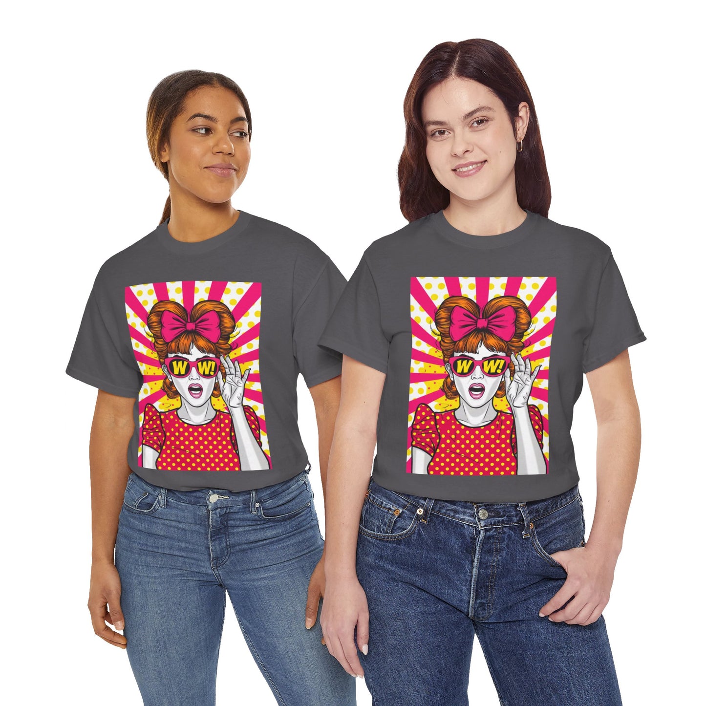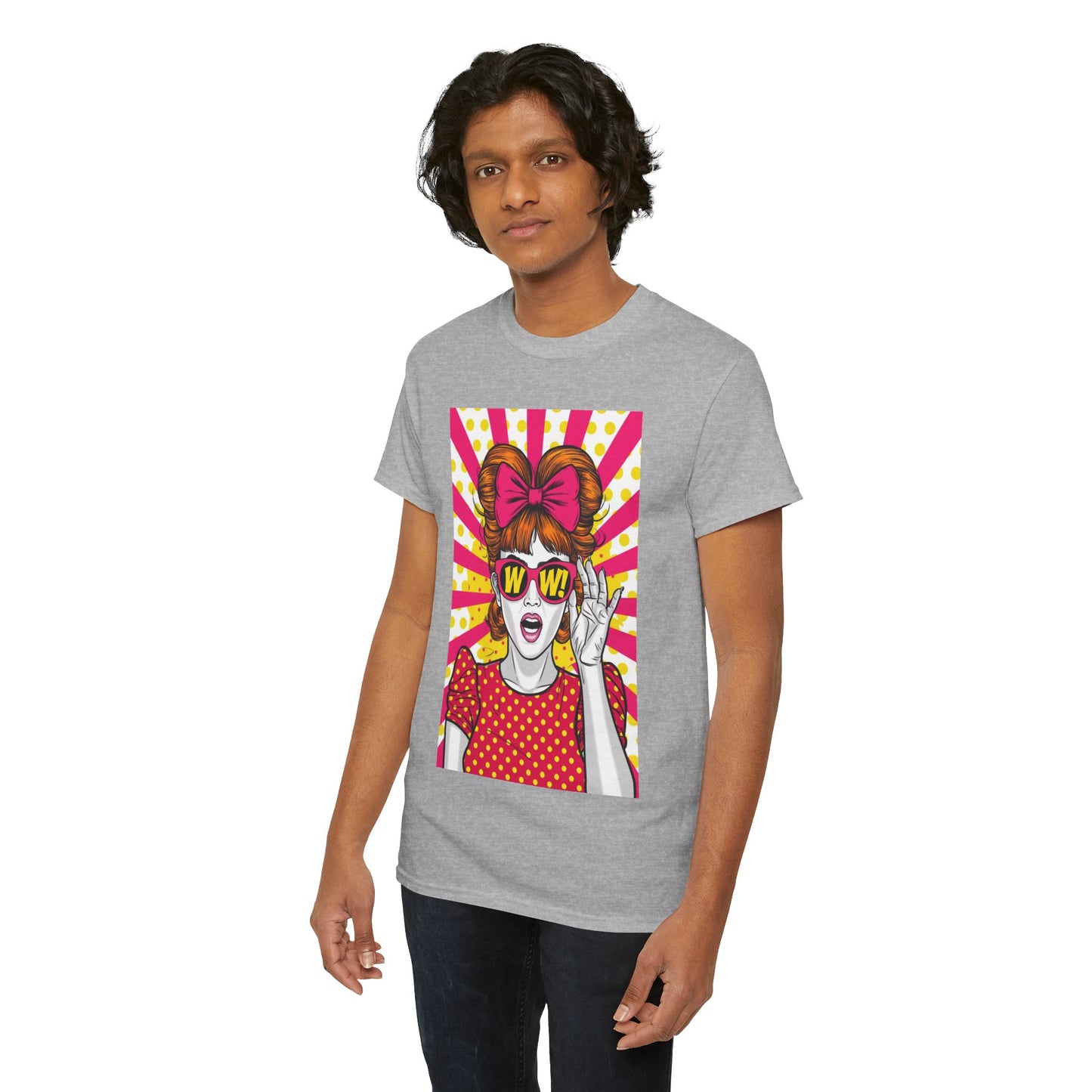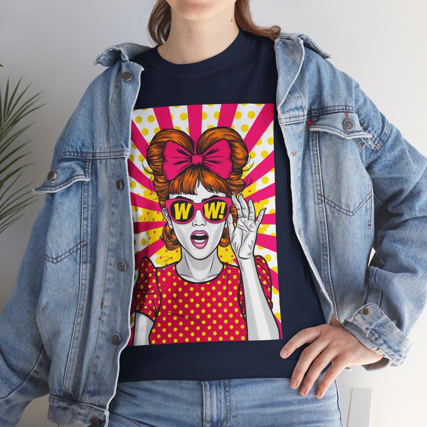 PopArt Girl WOW with Sunglasses Unisex heavy cotton Tshirt