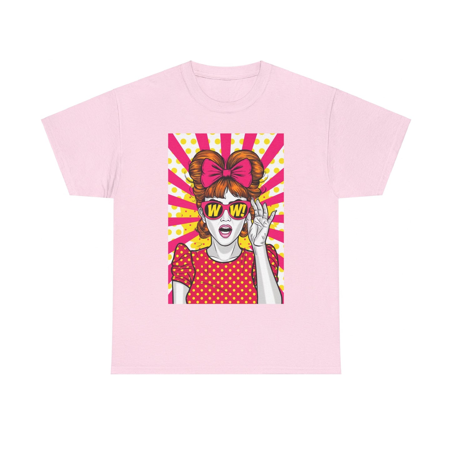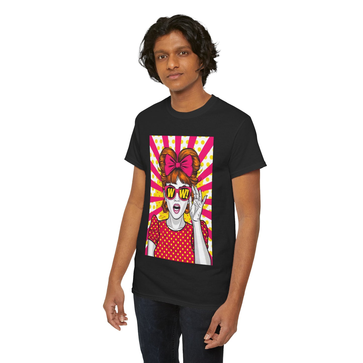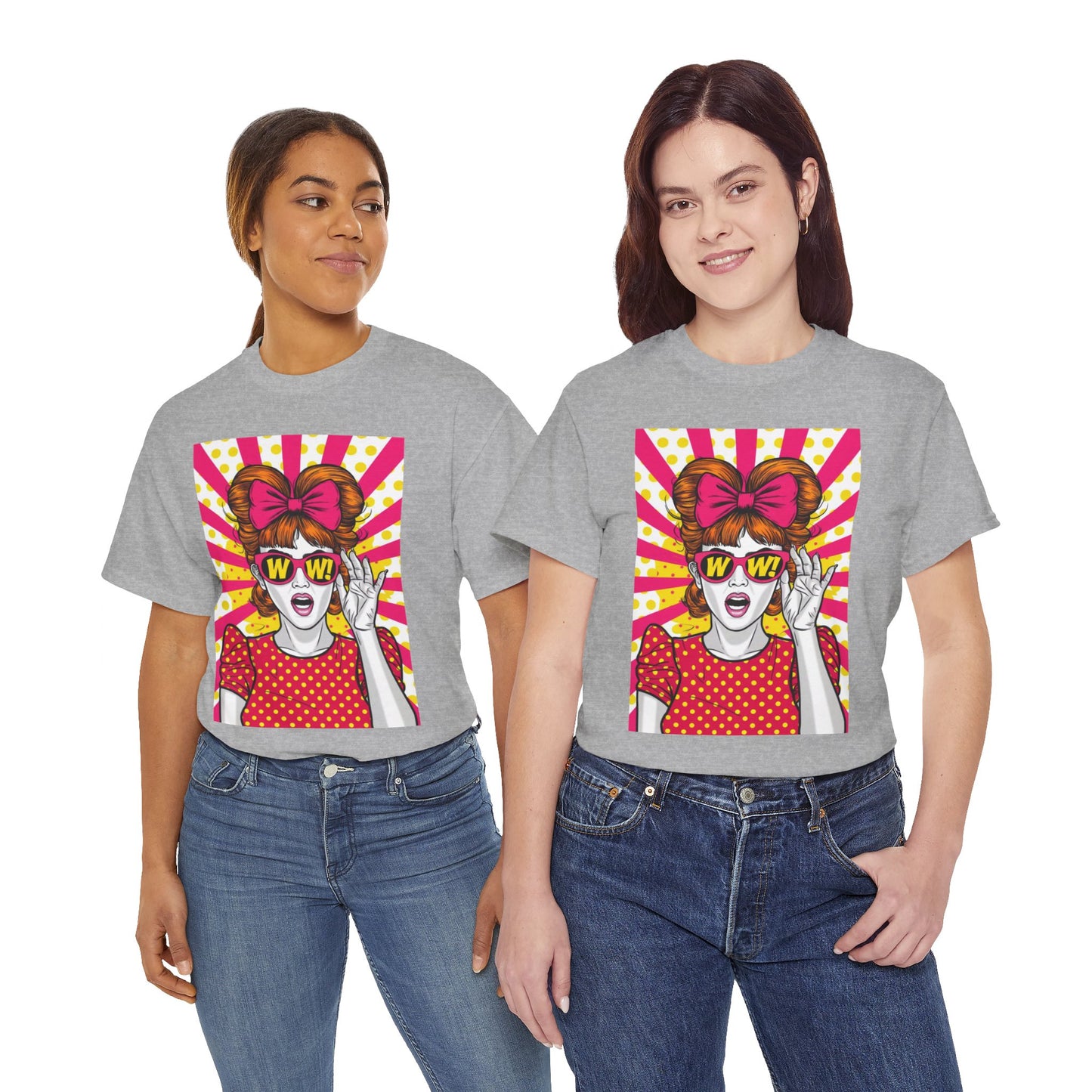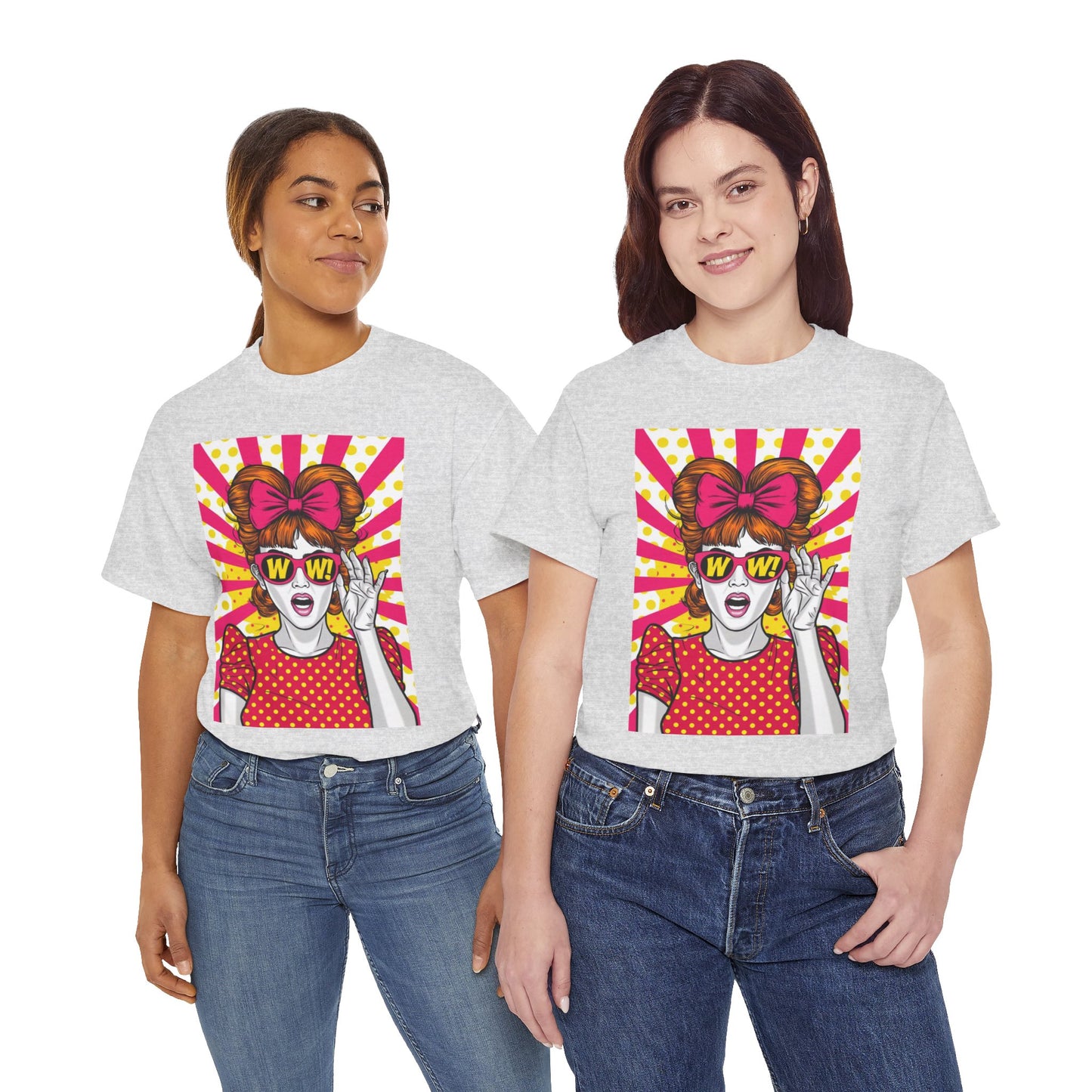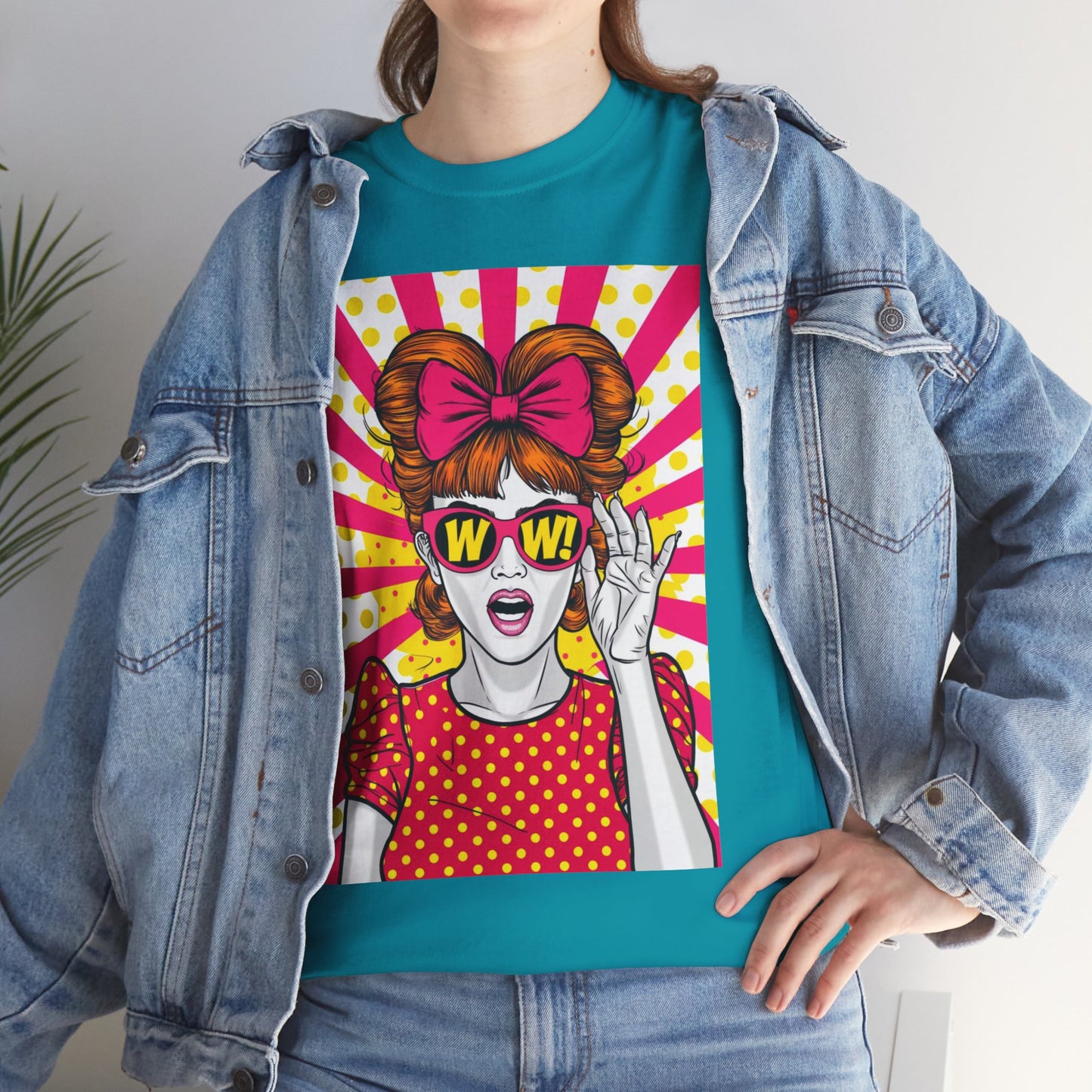 PopArt Girl WOW with Sunglasses Unisex heavy cotton Tshirt