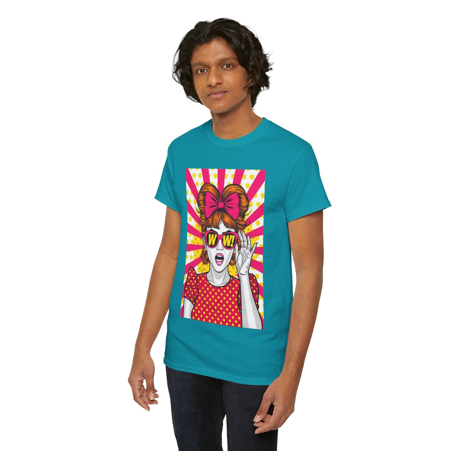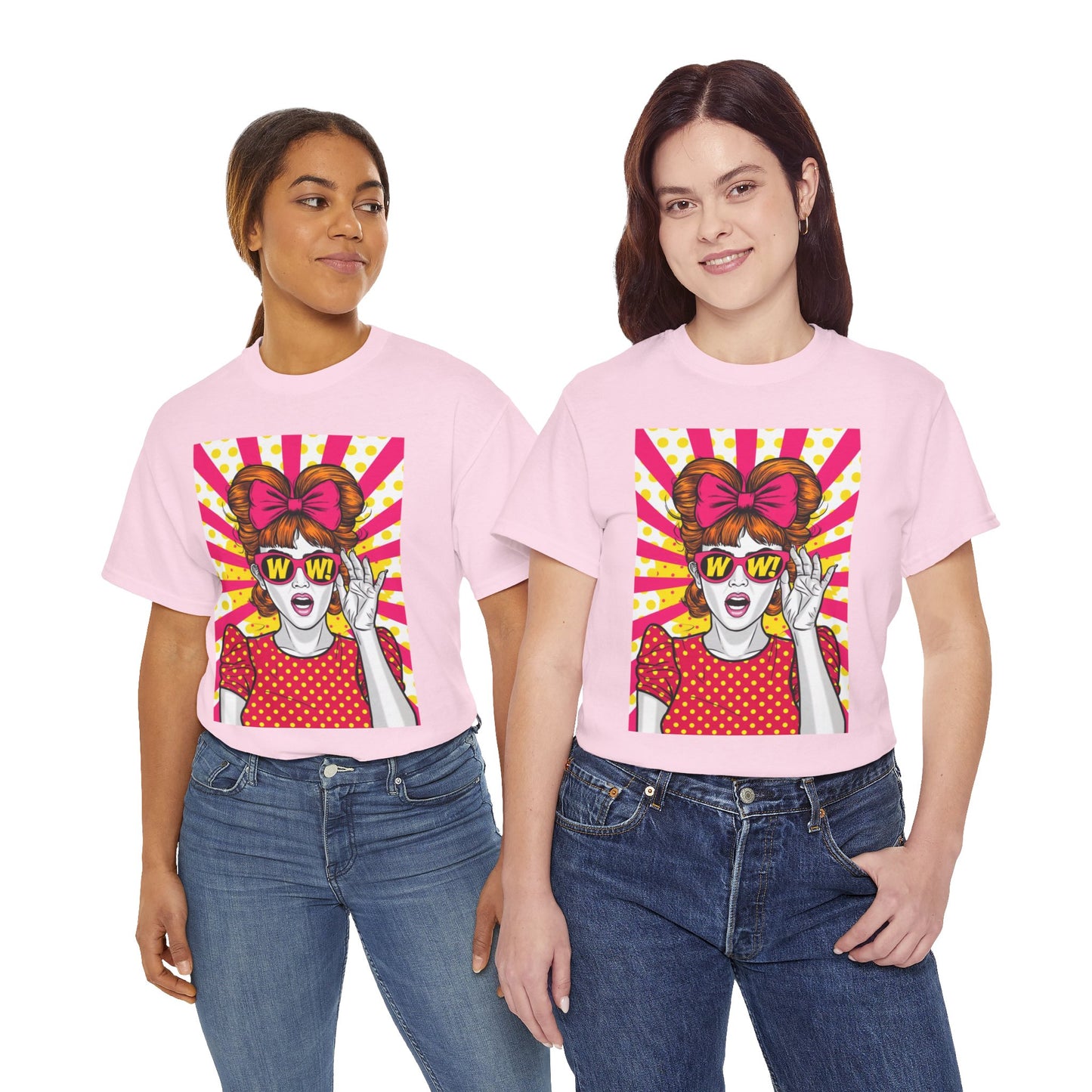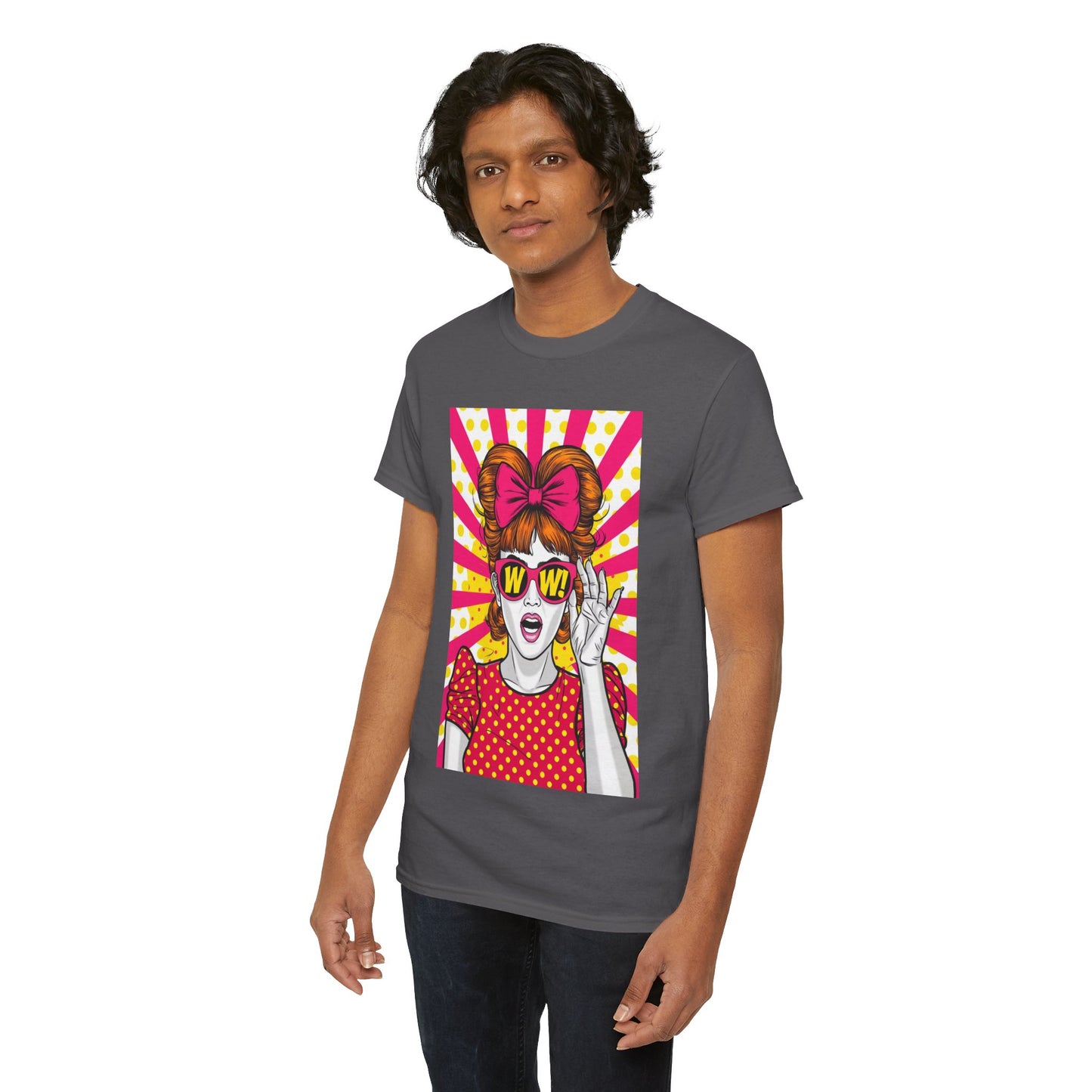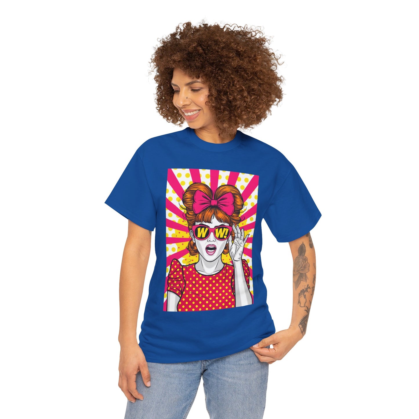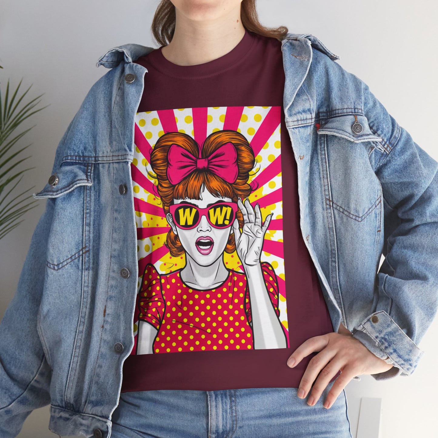 PopArt Girl WOW with Sunglasses Unisex heavy cotton Tshirt