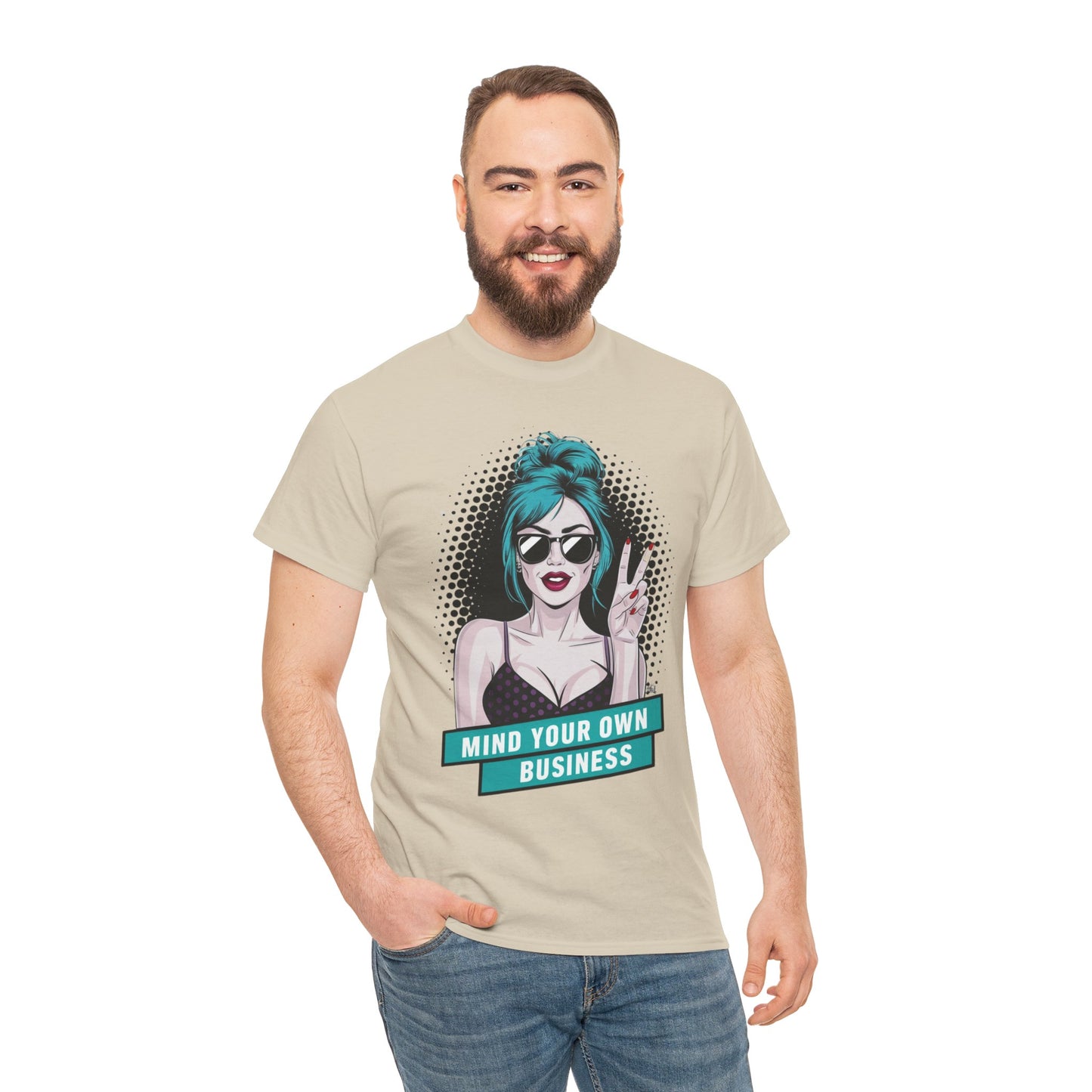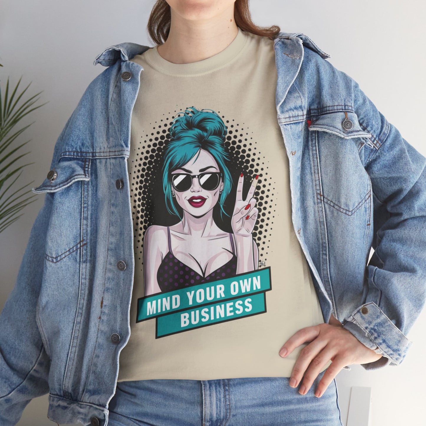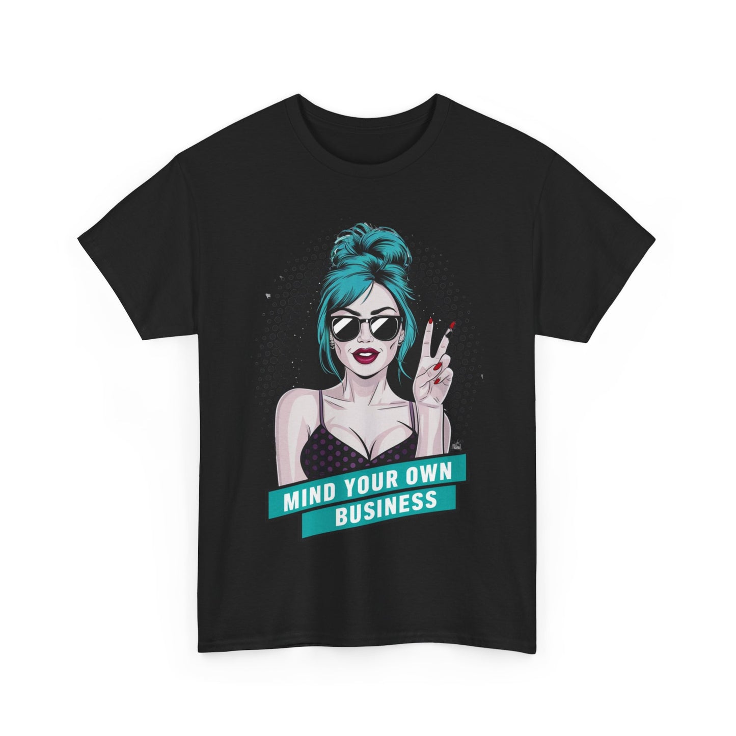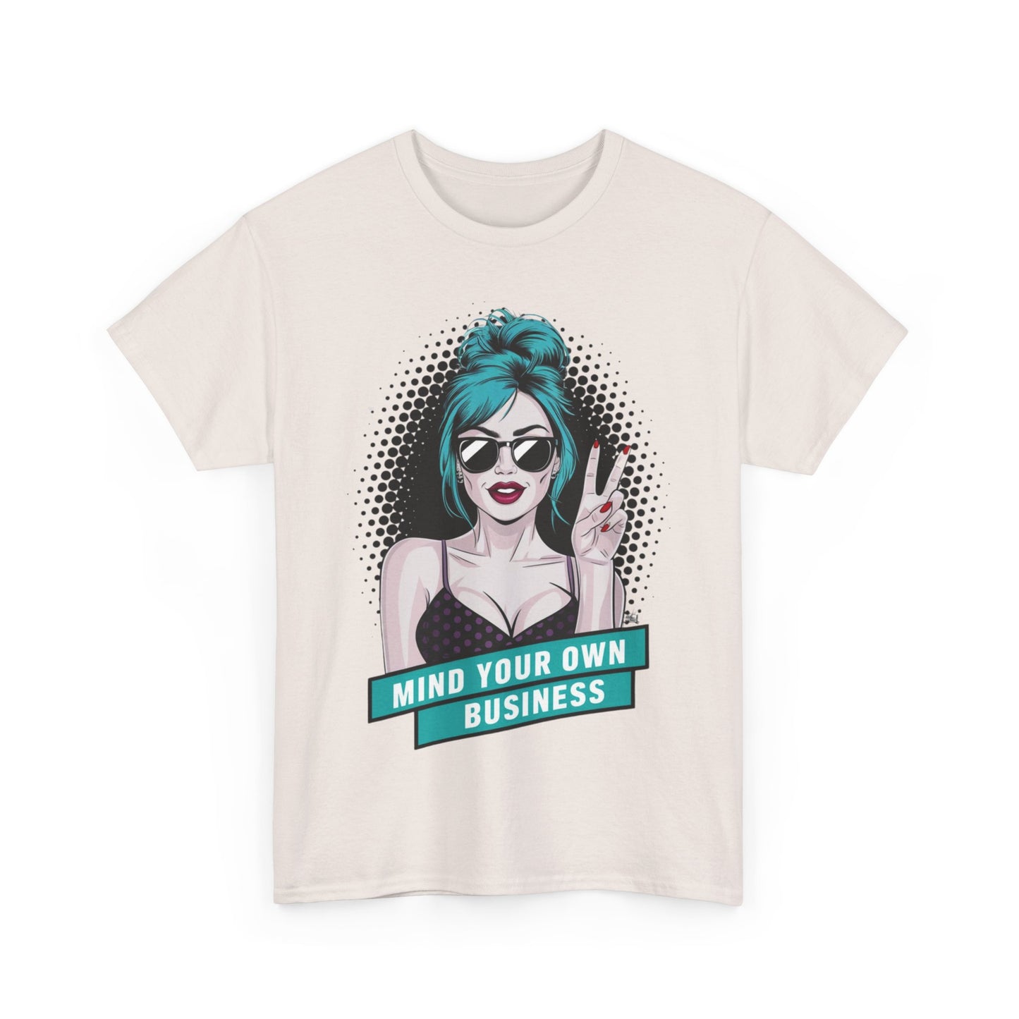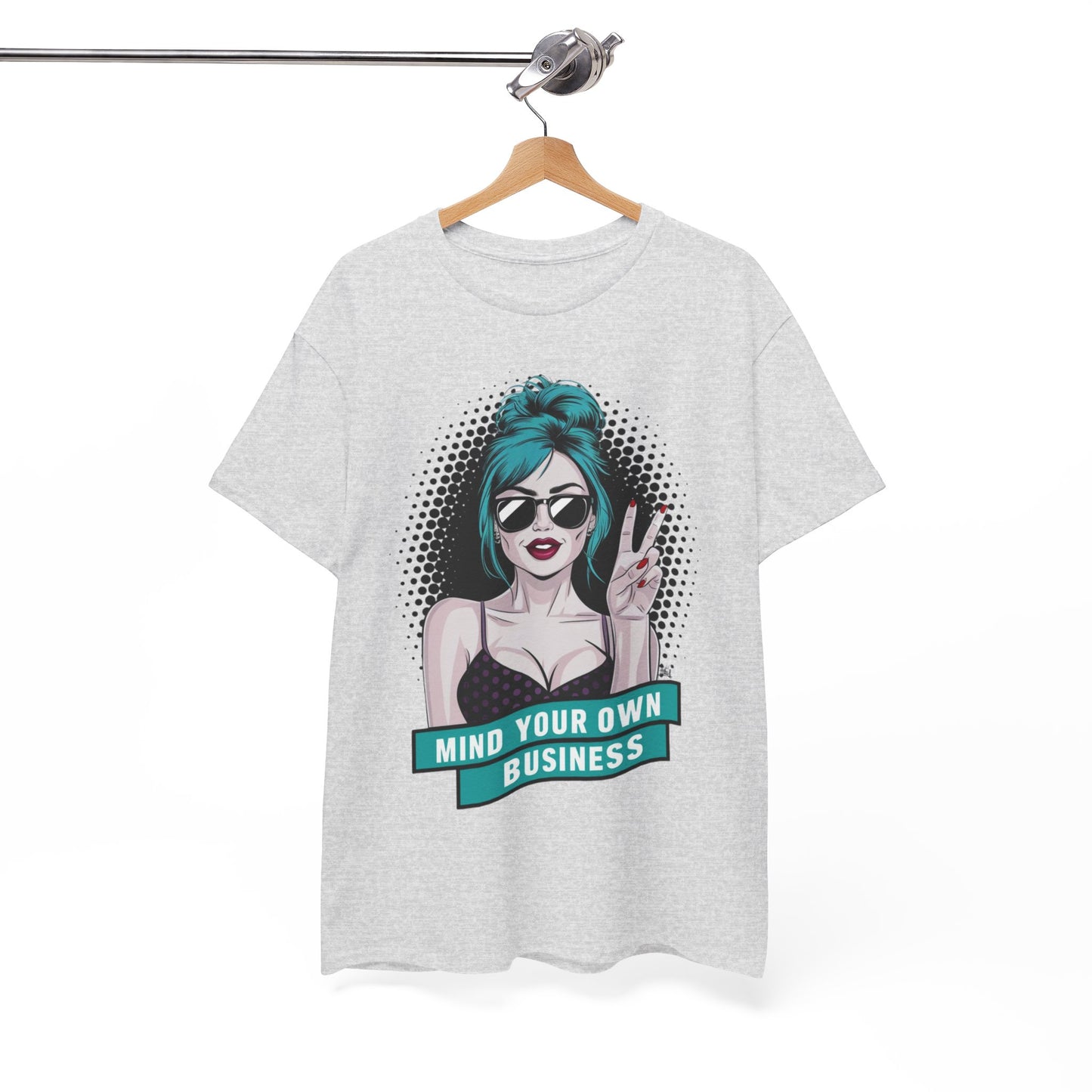 Sexy PopArt Girl Mind Your Own Business Tshirt unisex heavy cotton