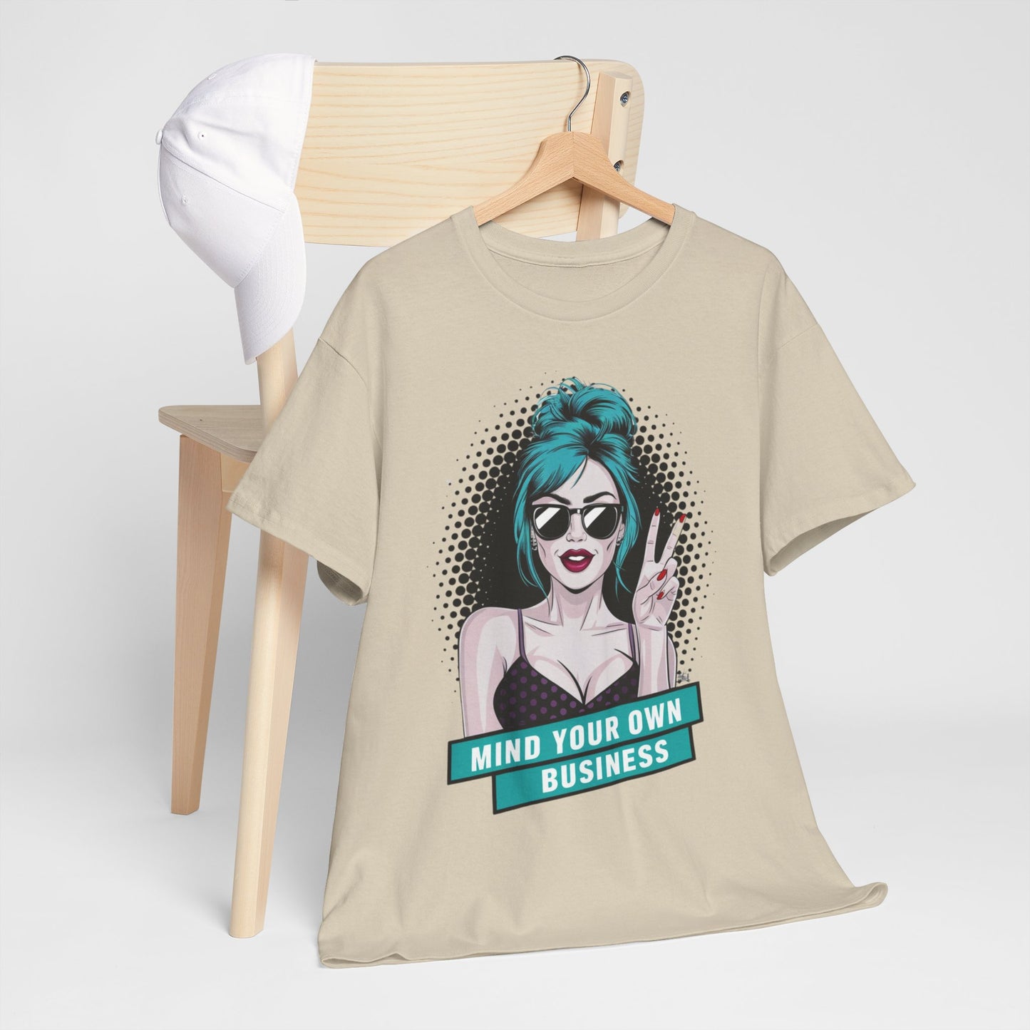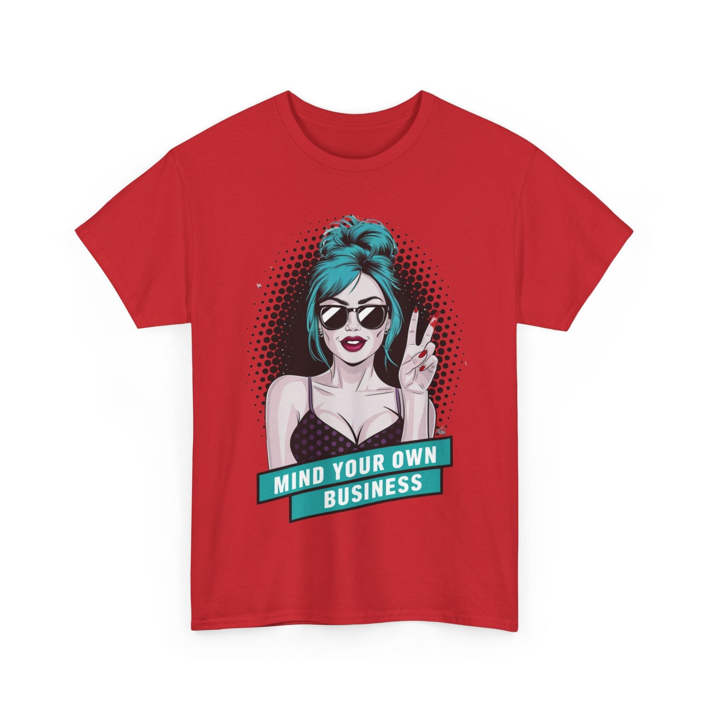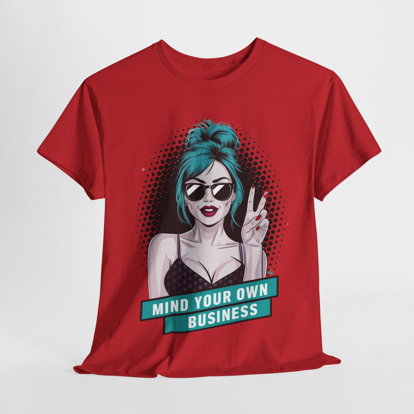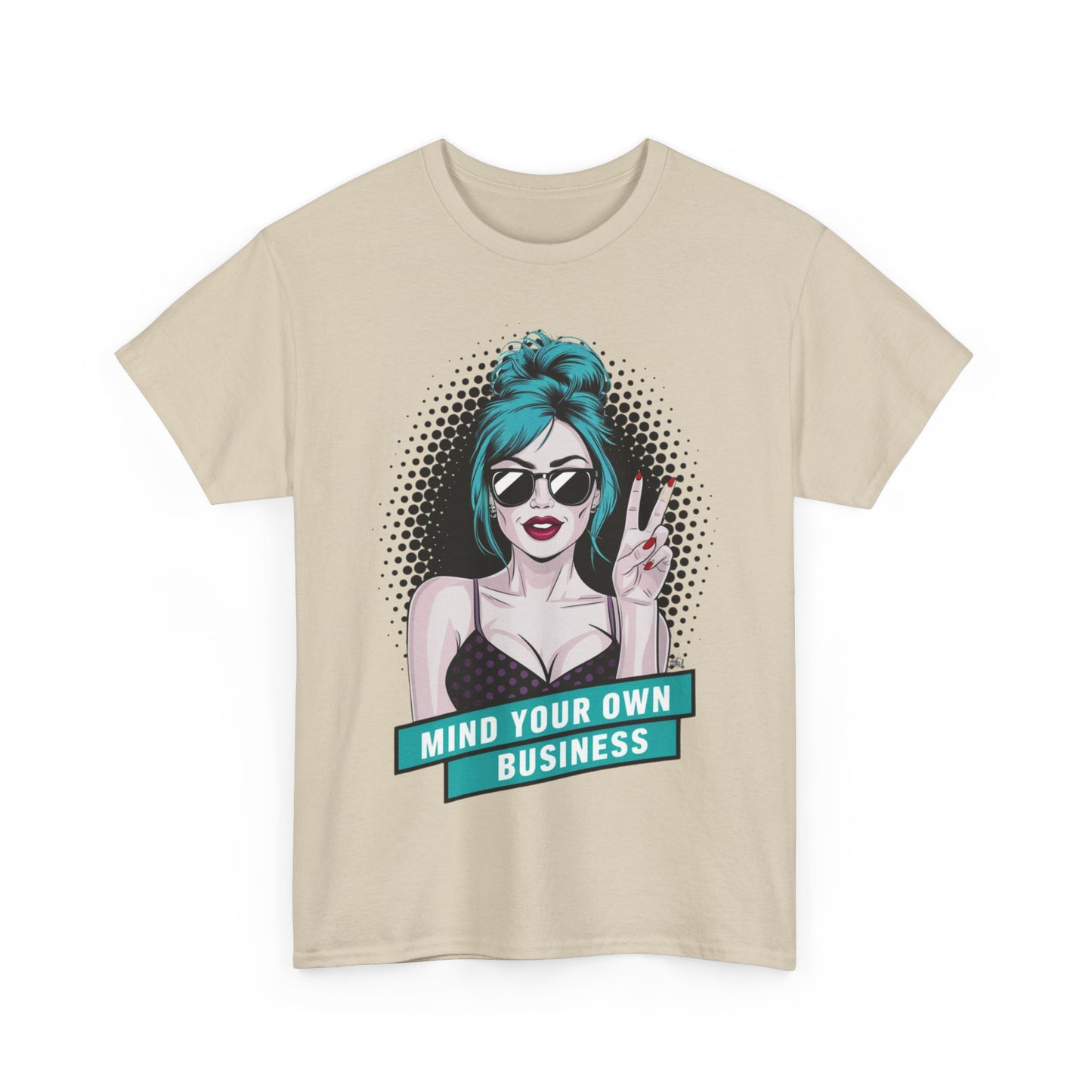 Sexy PopArt Girl Mind Your Own Business Tshirt unisex heavy cotton