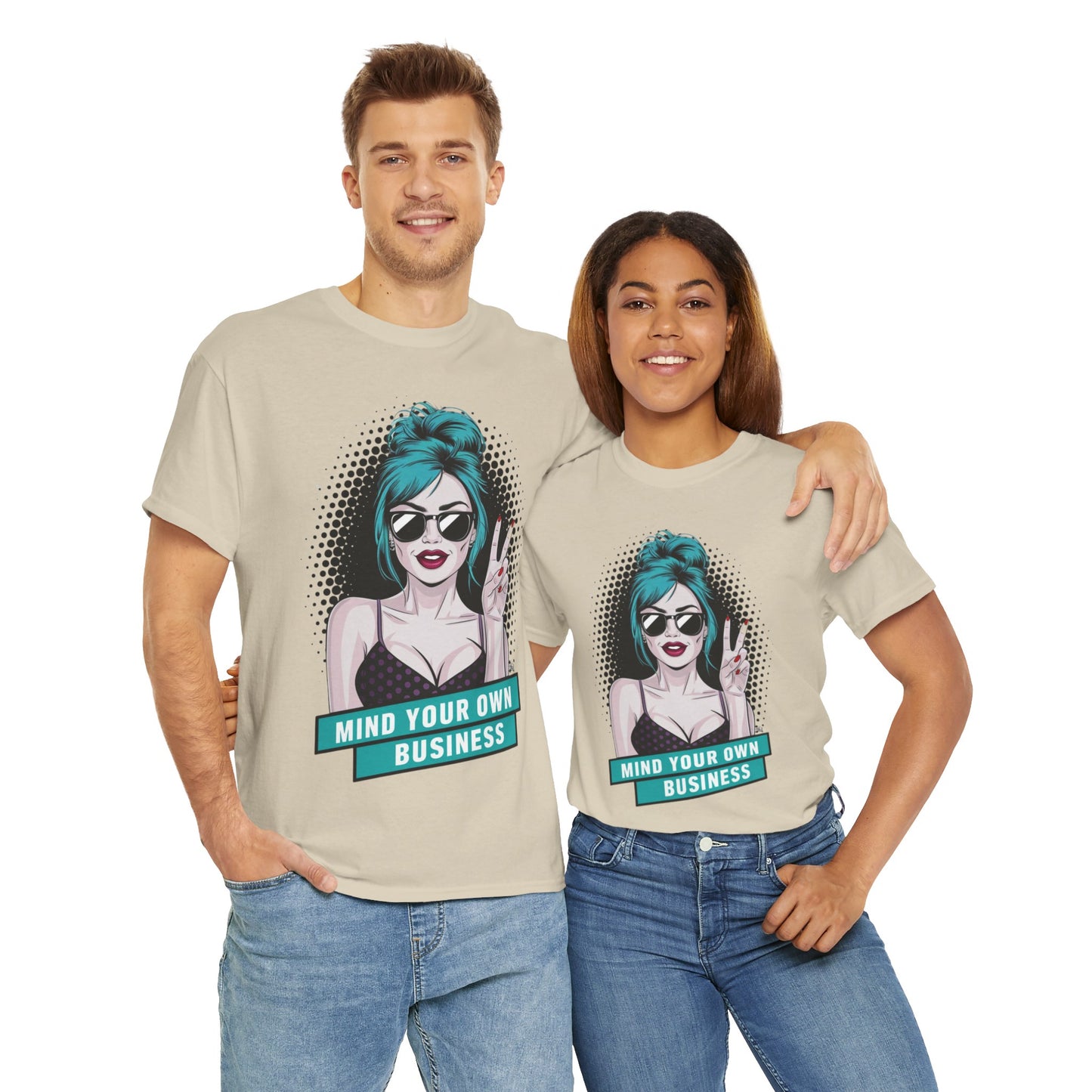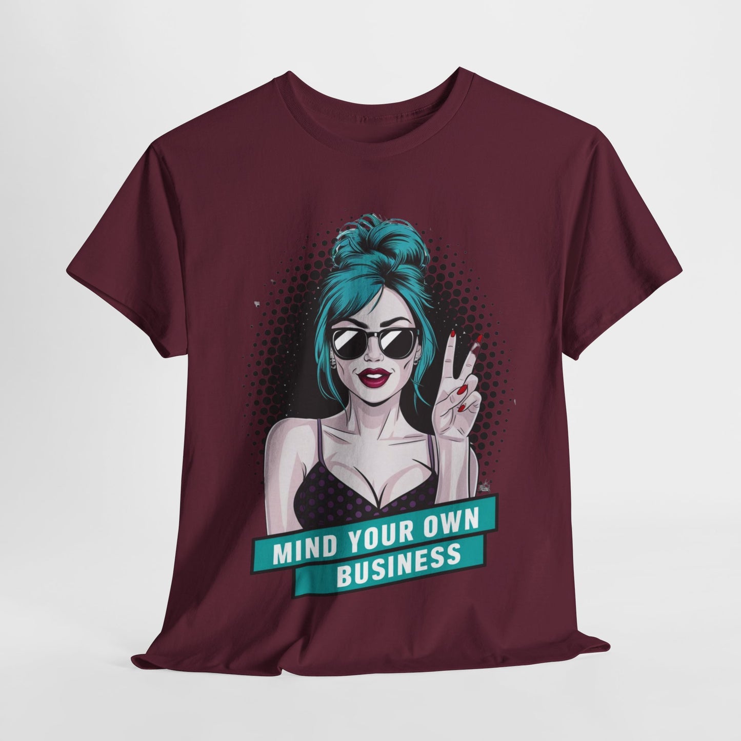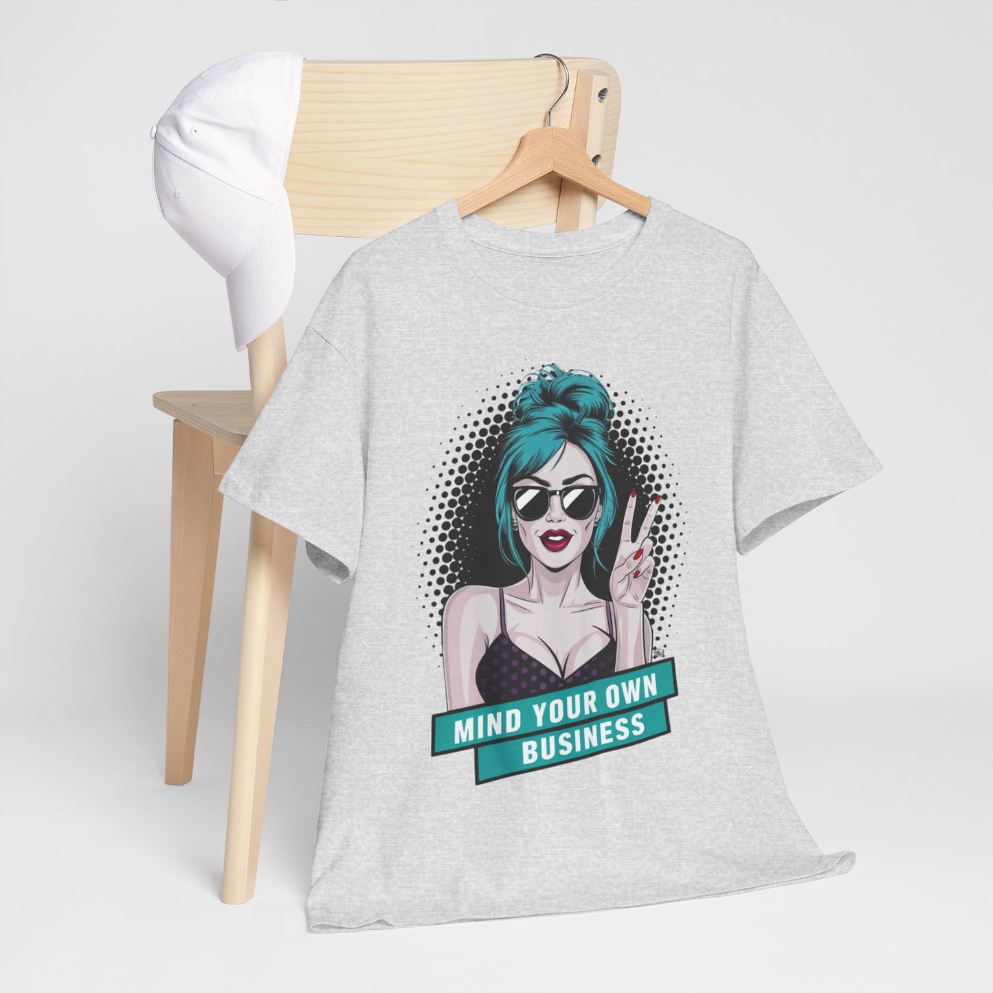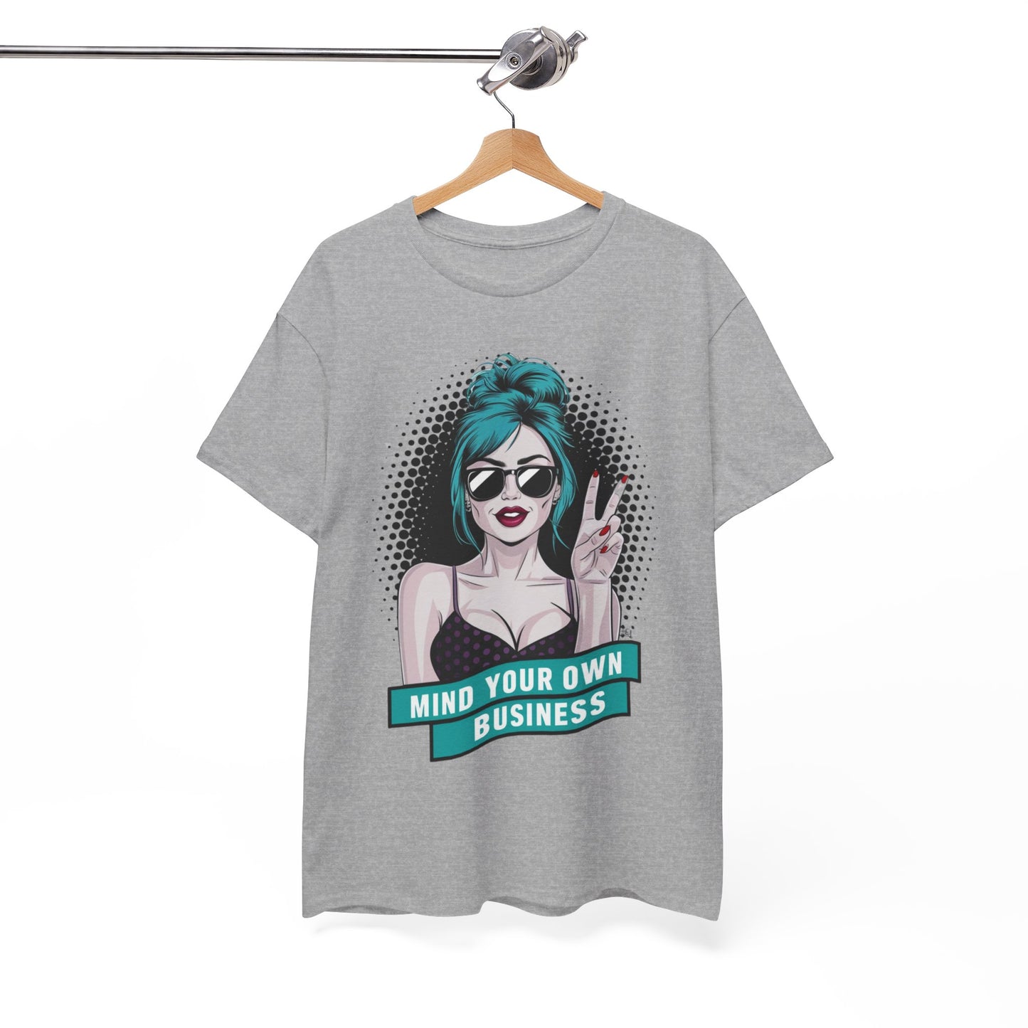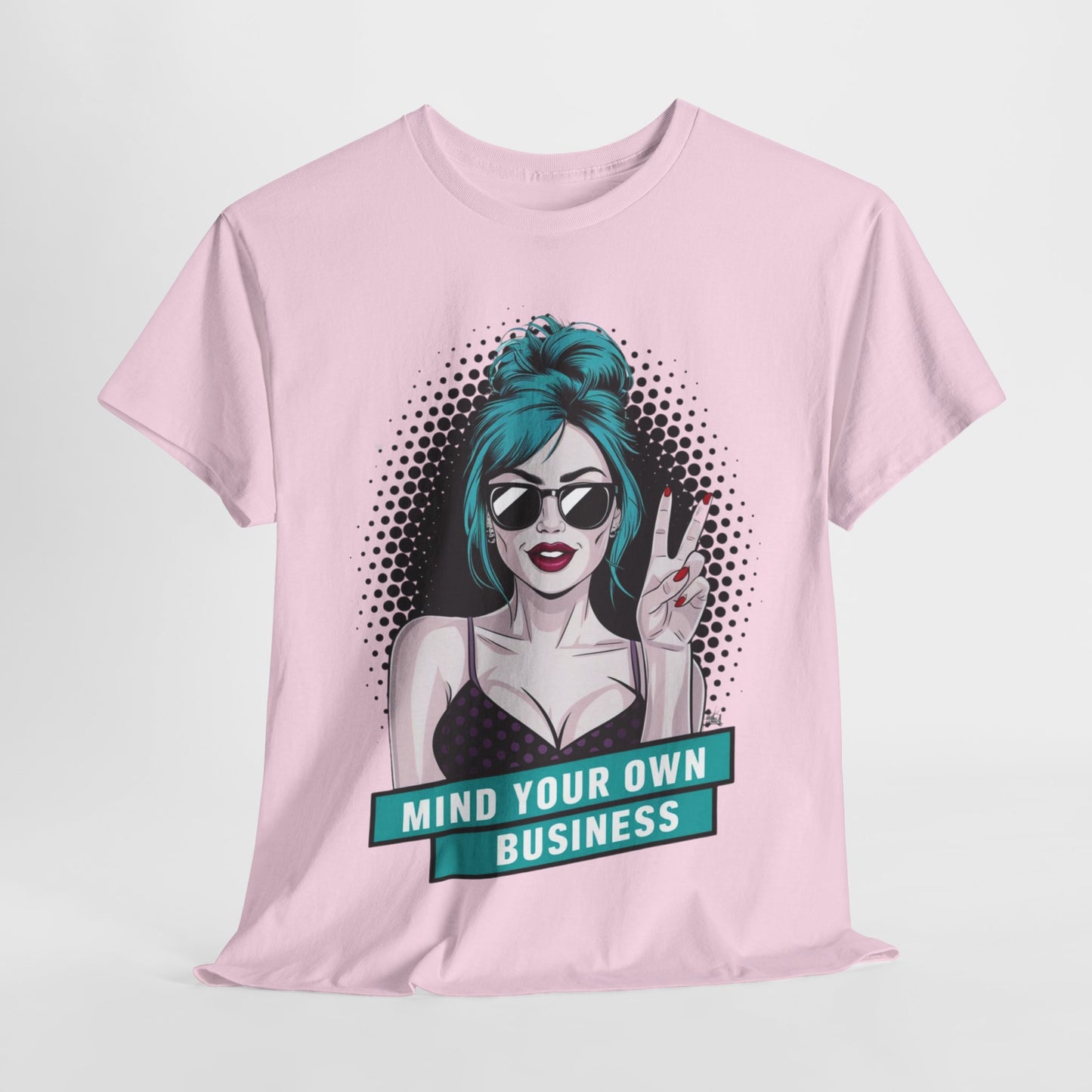 Sexy PopArt Girl Mind Your Own Business Tshirt unisex heavy cotton