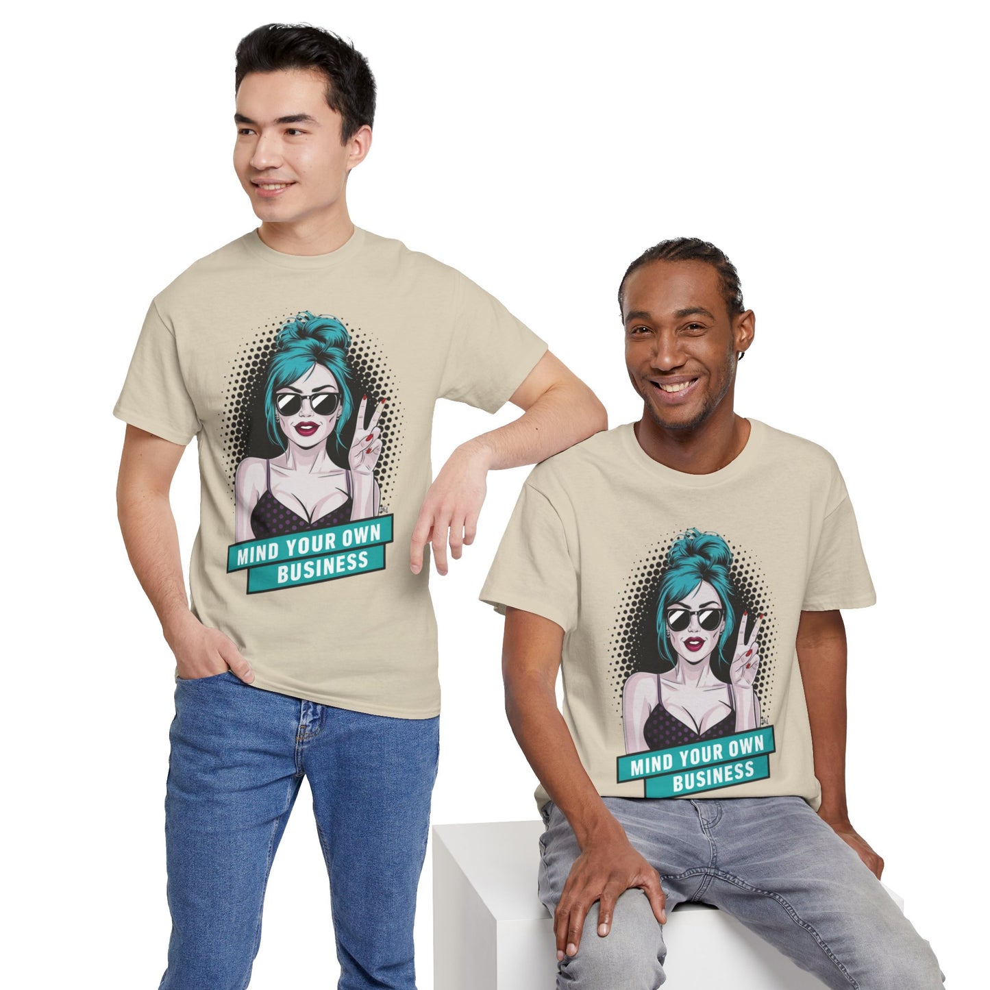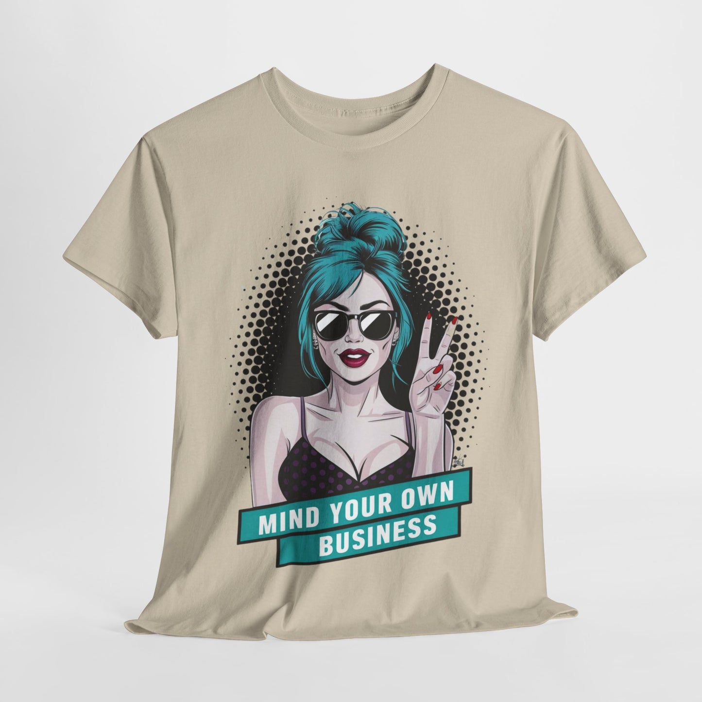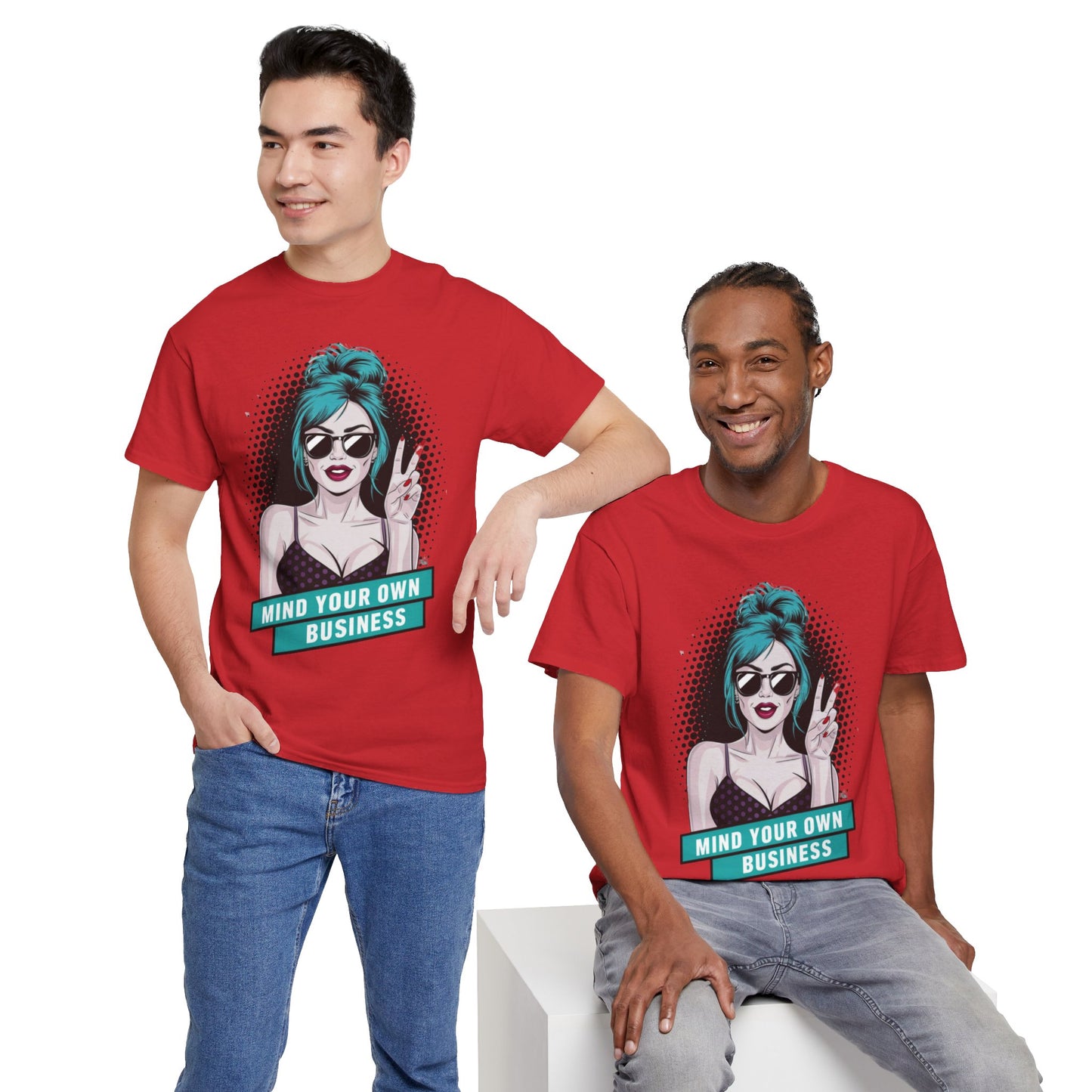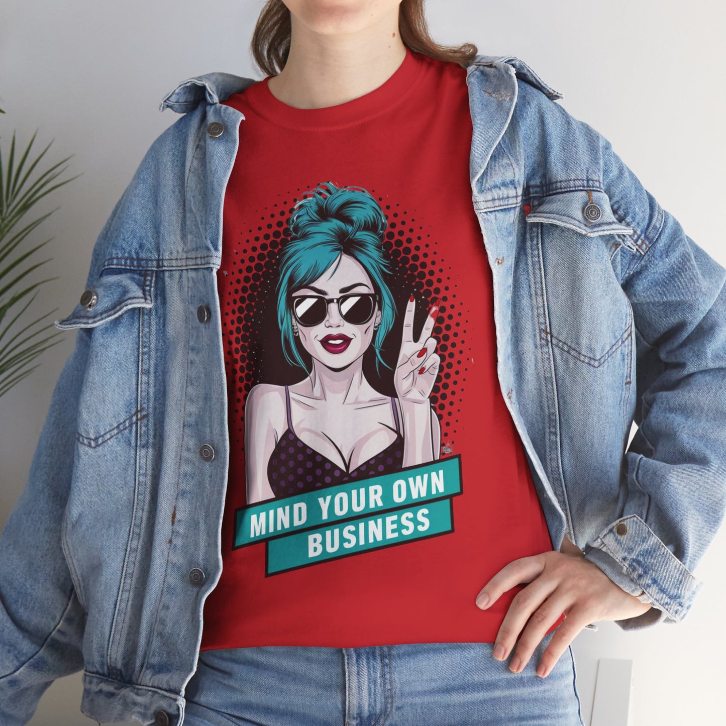 Sexy PopArt Girl Mind Your Own Business Tshirt unisex heavy cotton