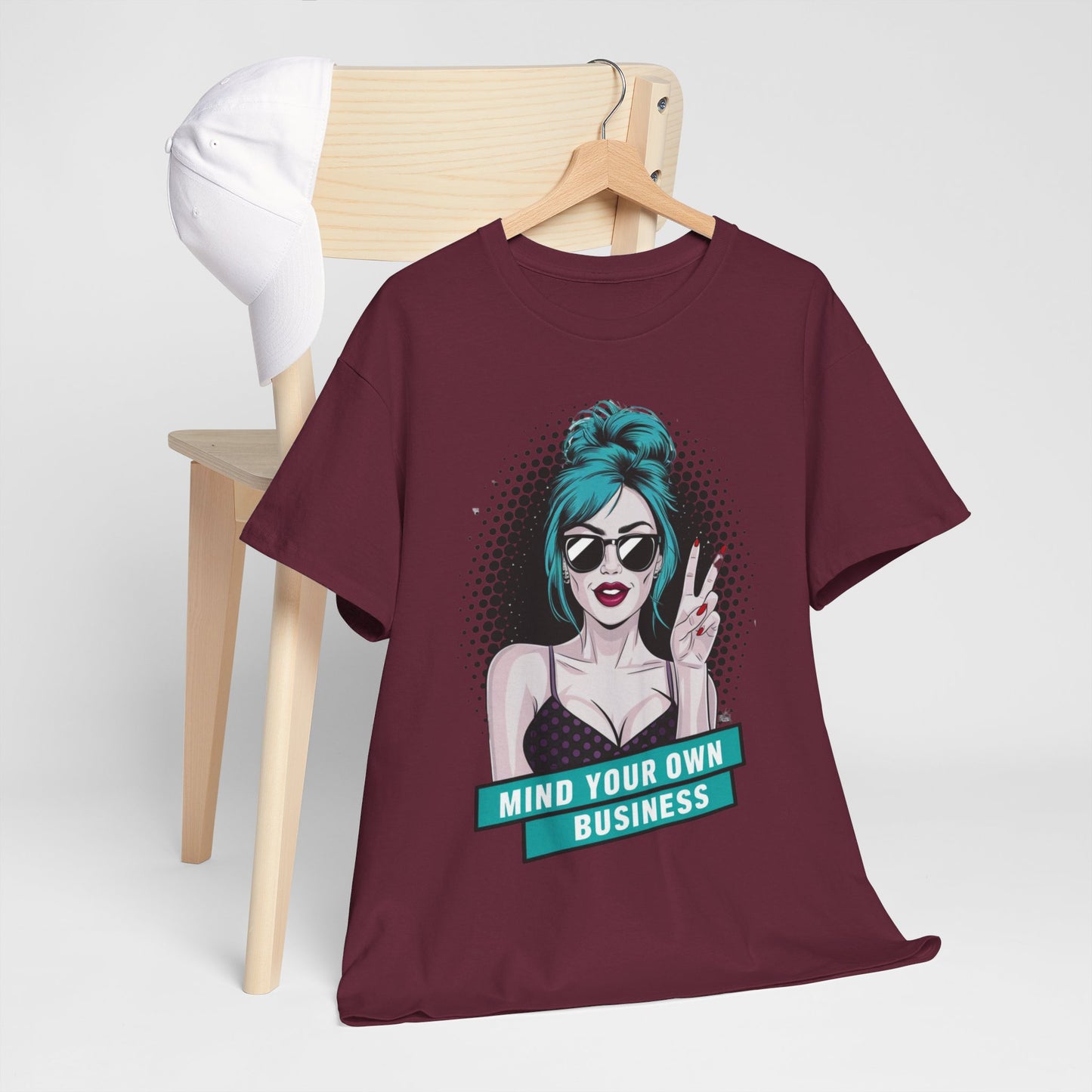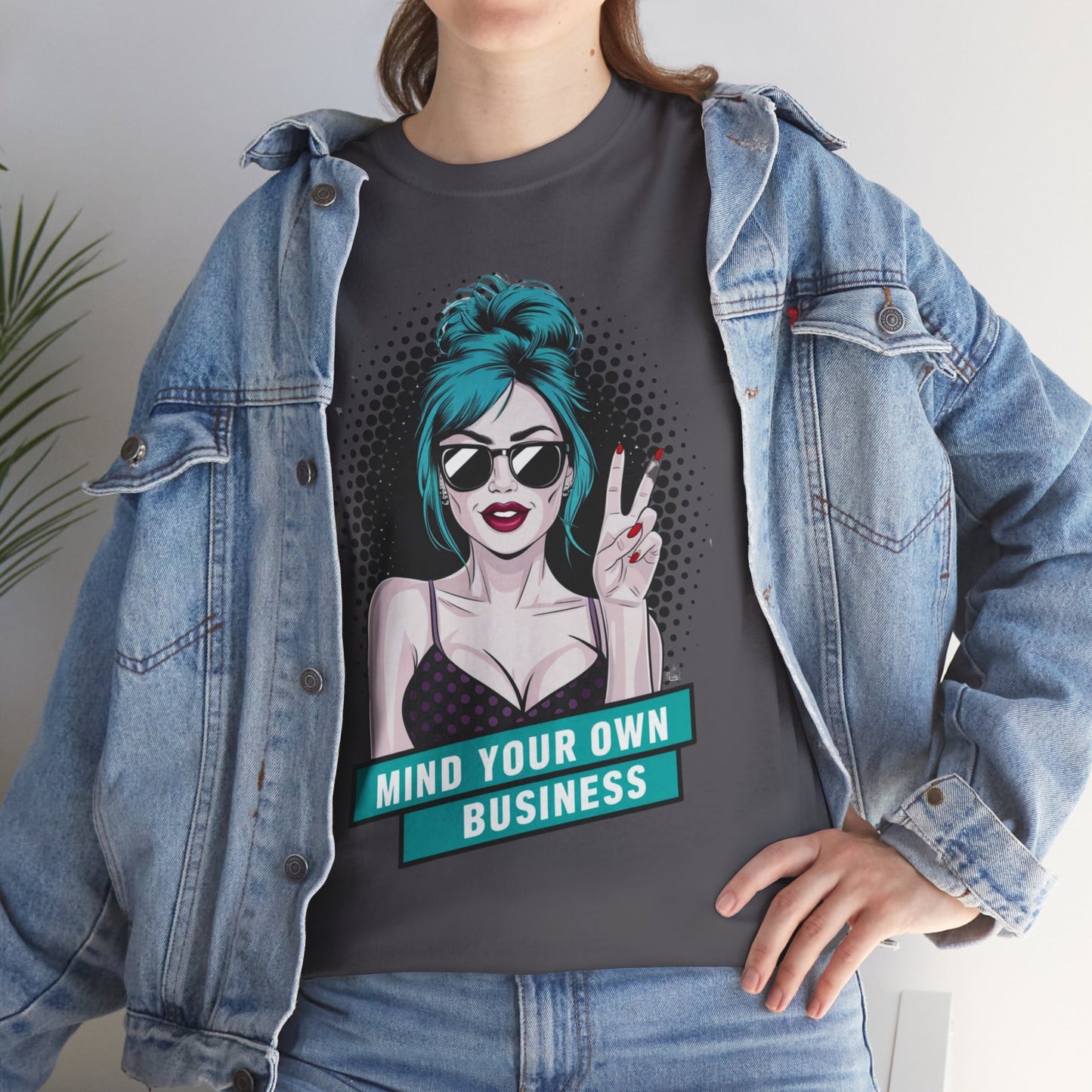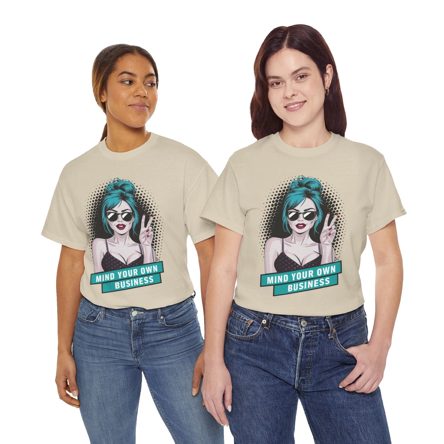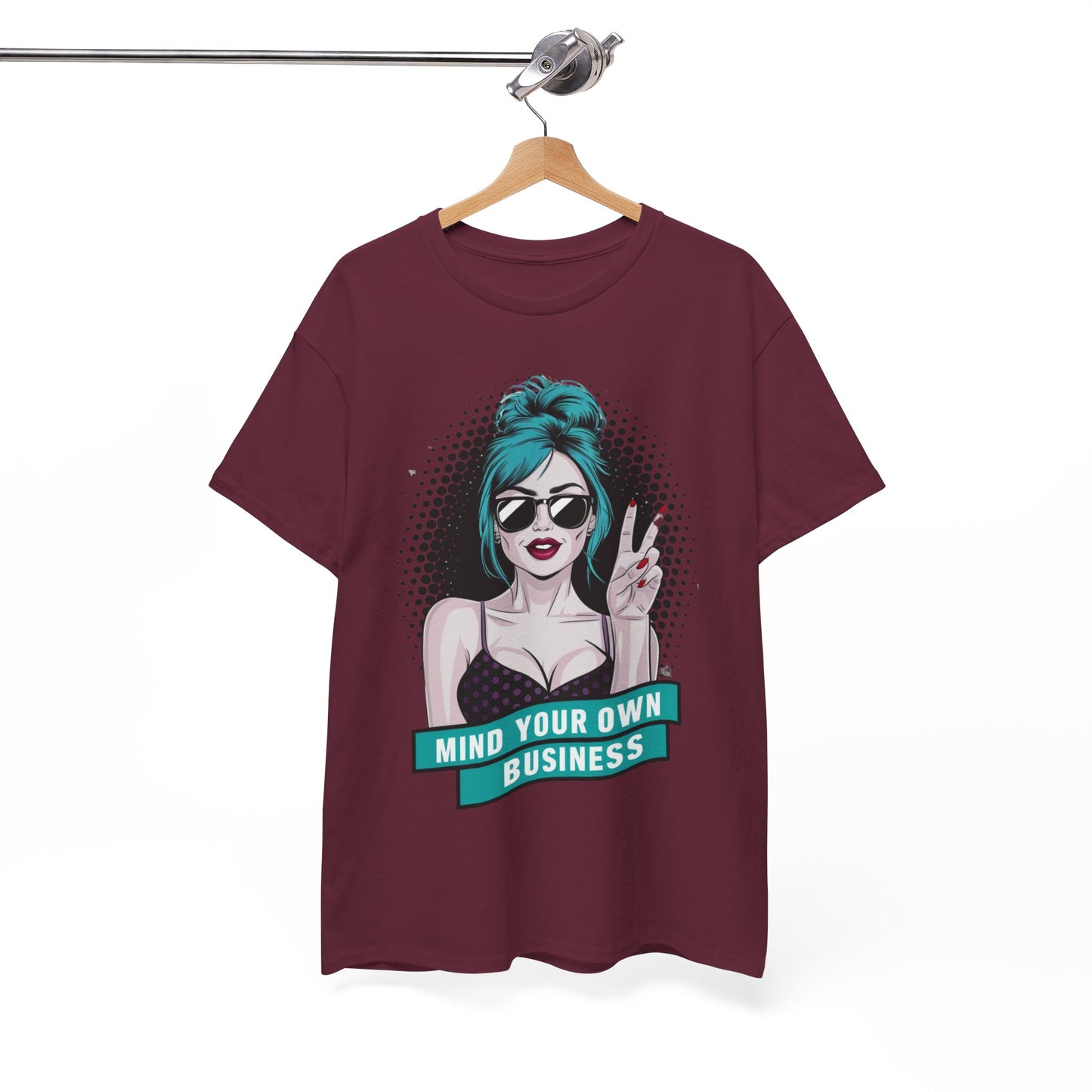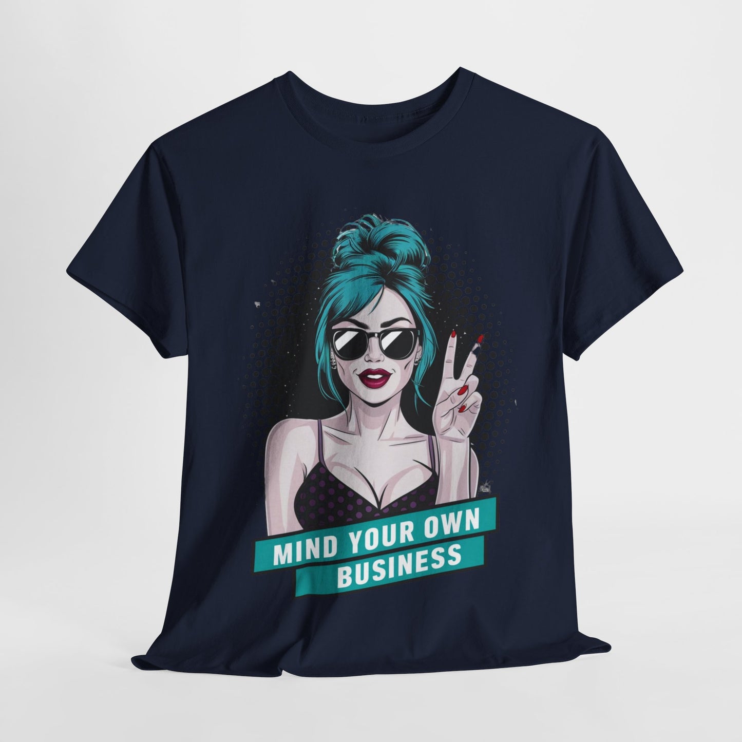 Sexy PopArt Girl Mind Your Own Business Tshirt unisex heavy cotton