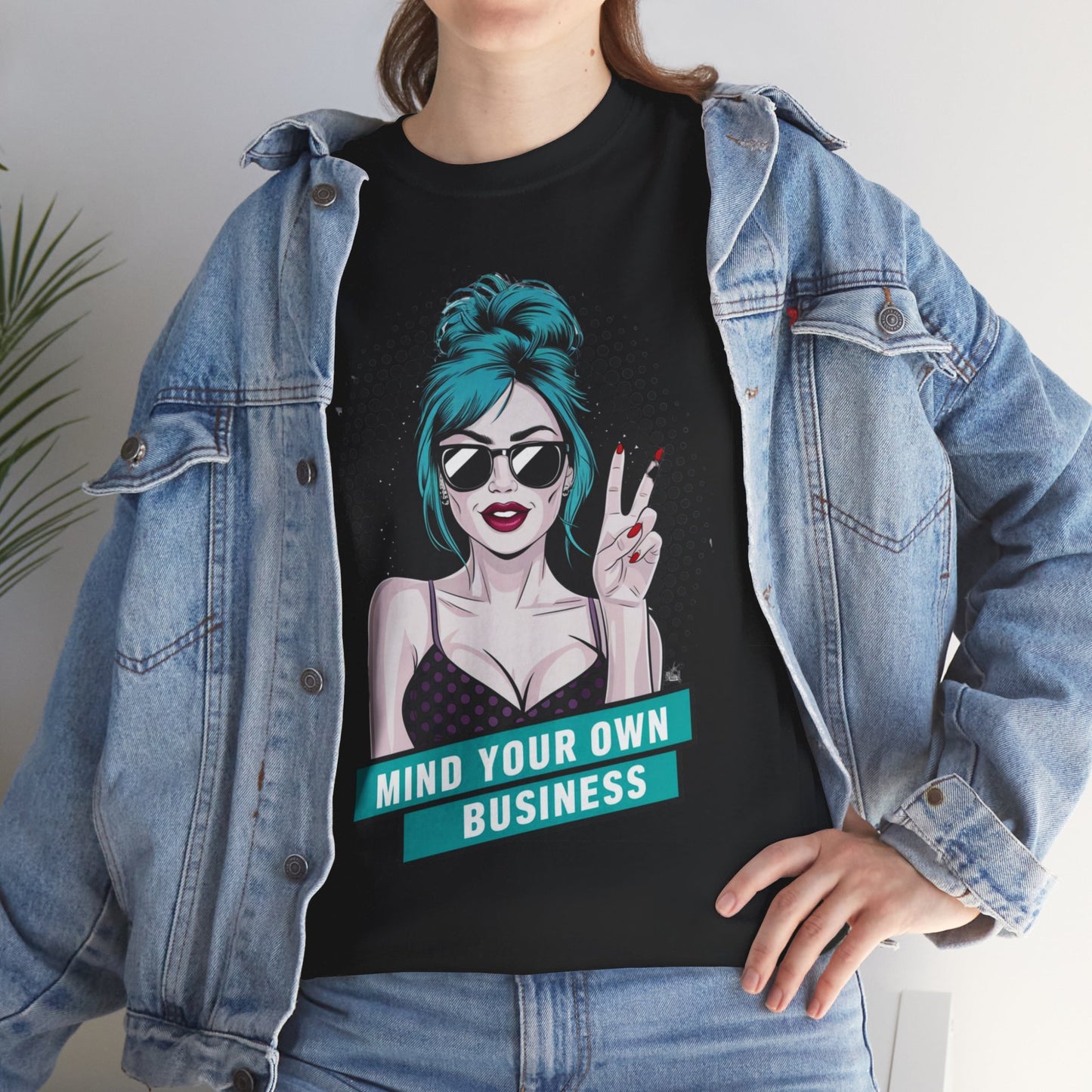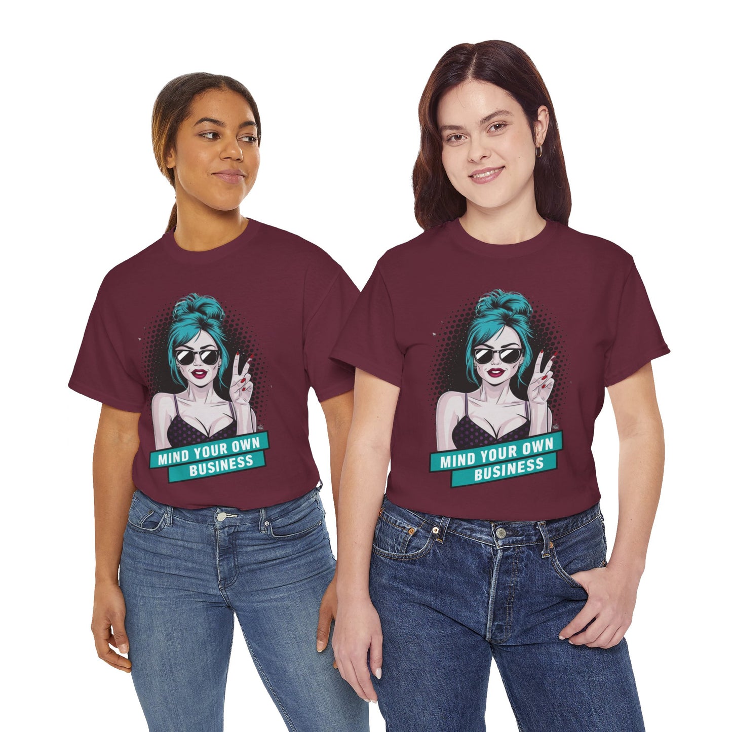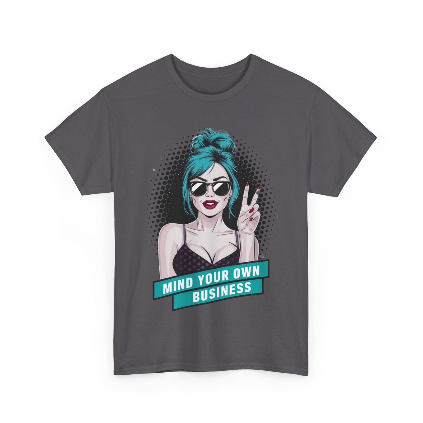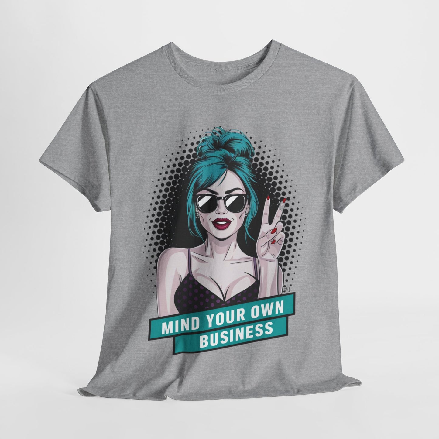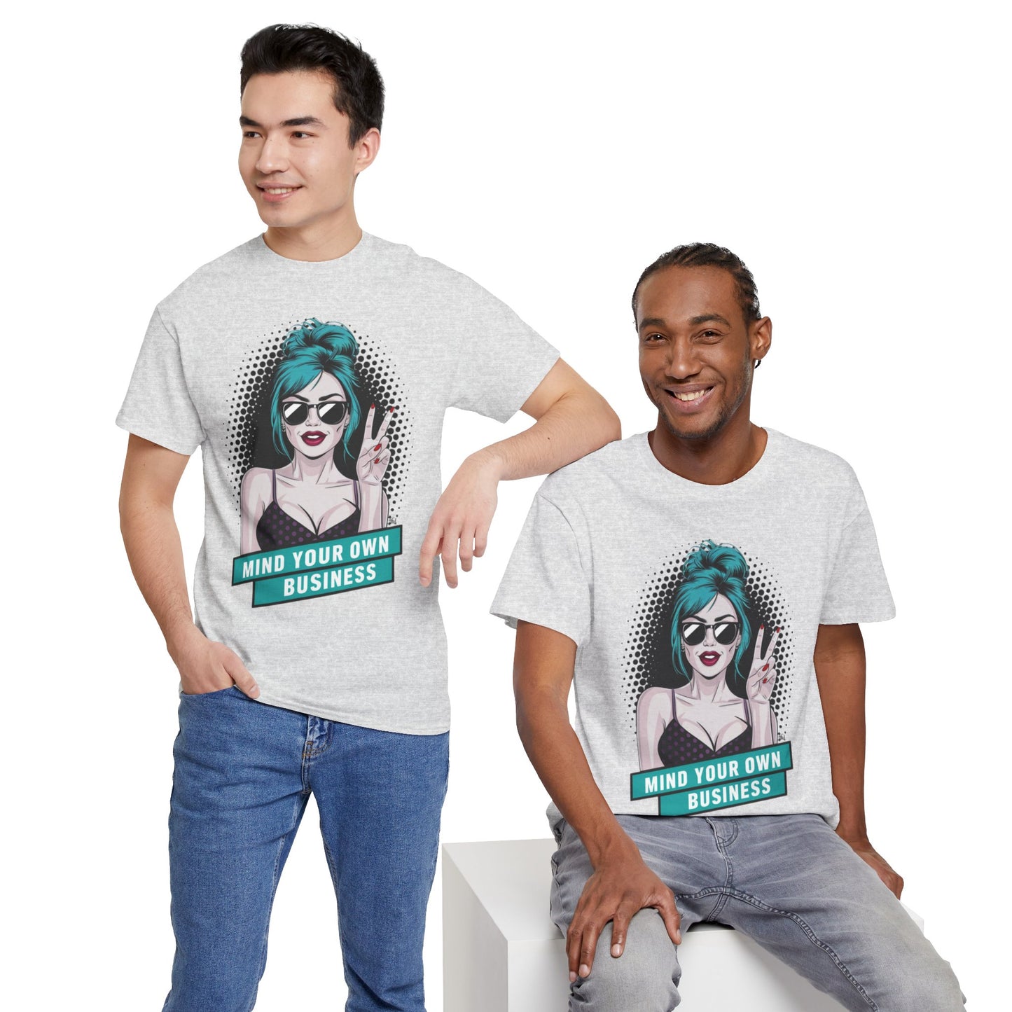 Sexy PopArt Girl Mind Your Own Business Tshirt unisex heavy cotton