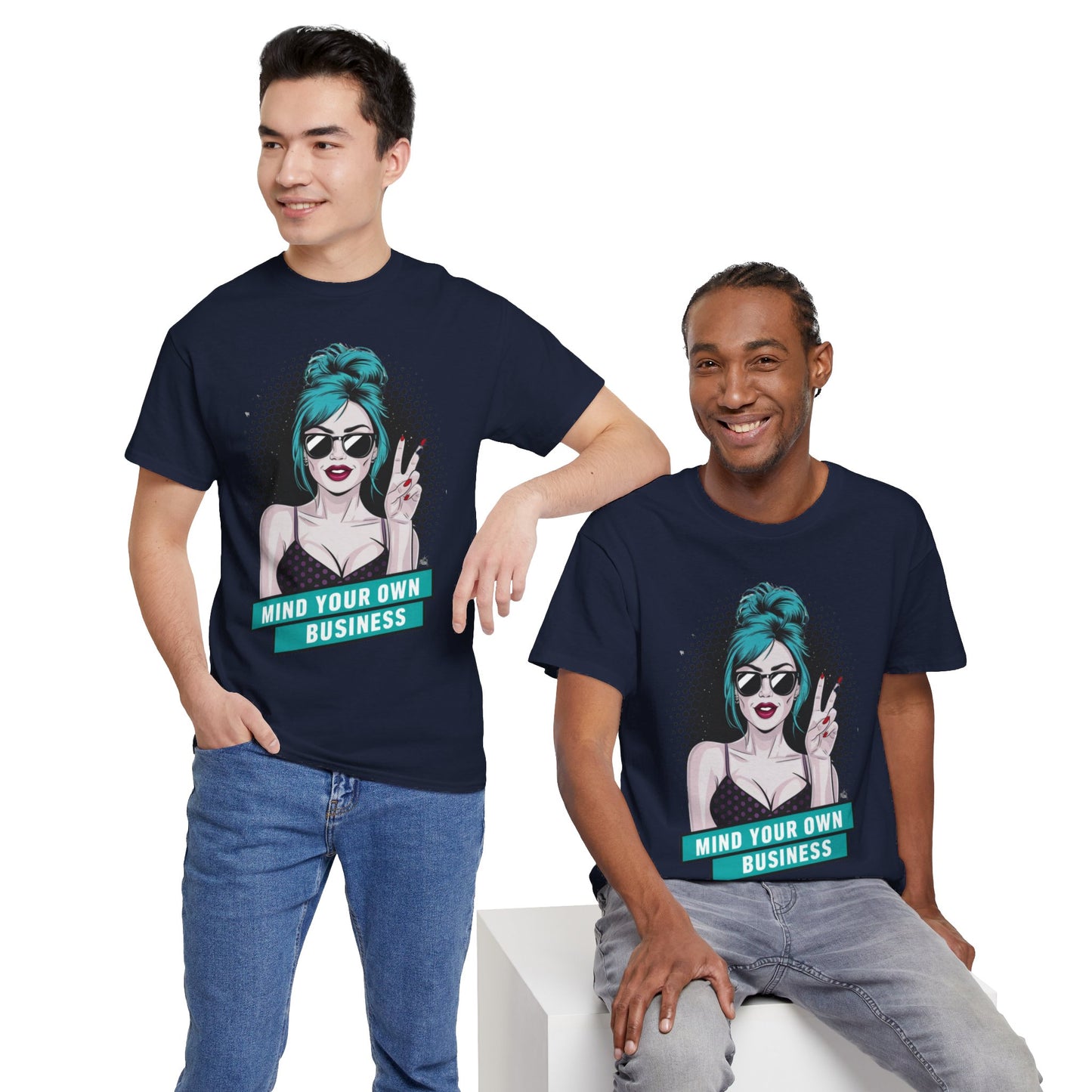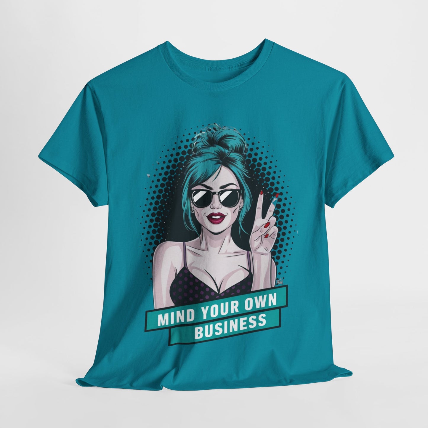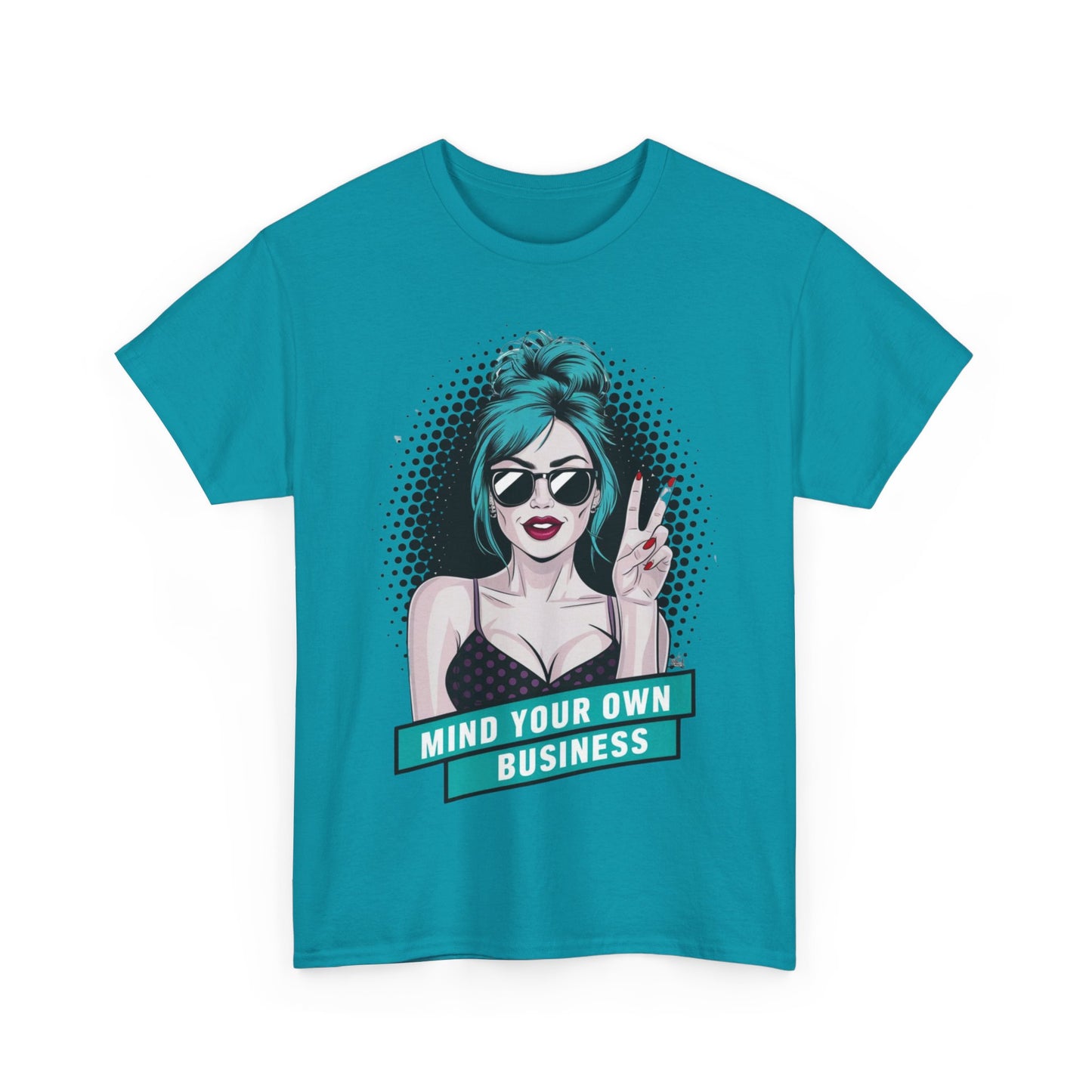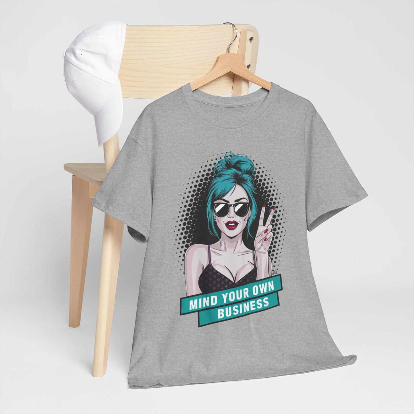 Sexy PopArt Girl Mind Your Own Business Tshirt unisex heavy cotton
