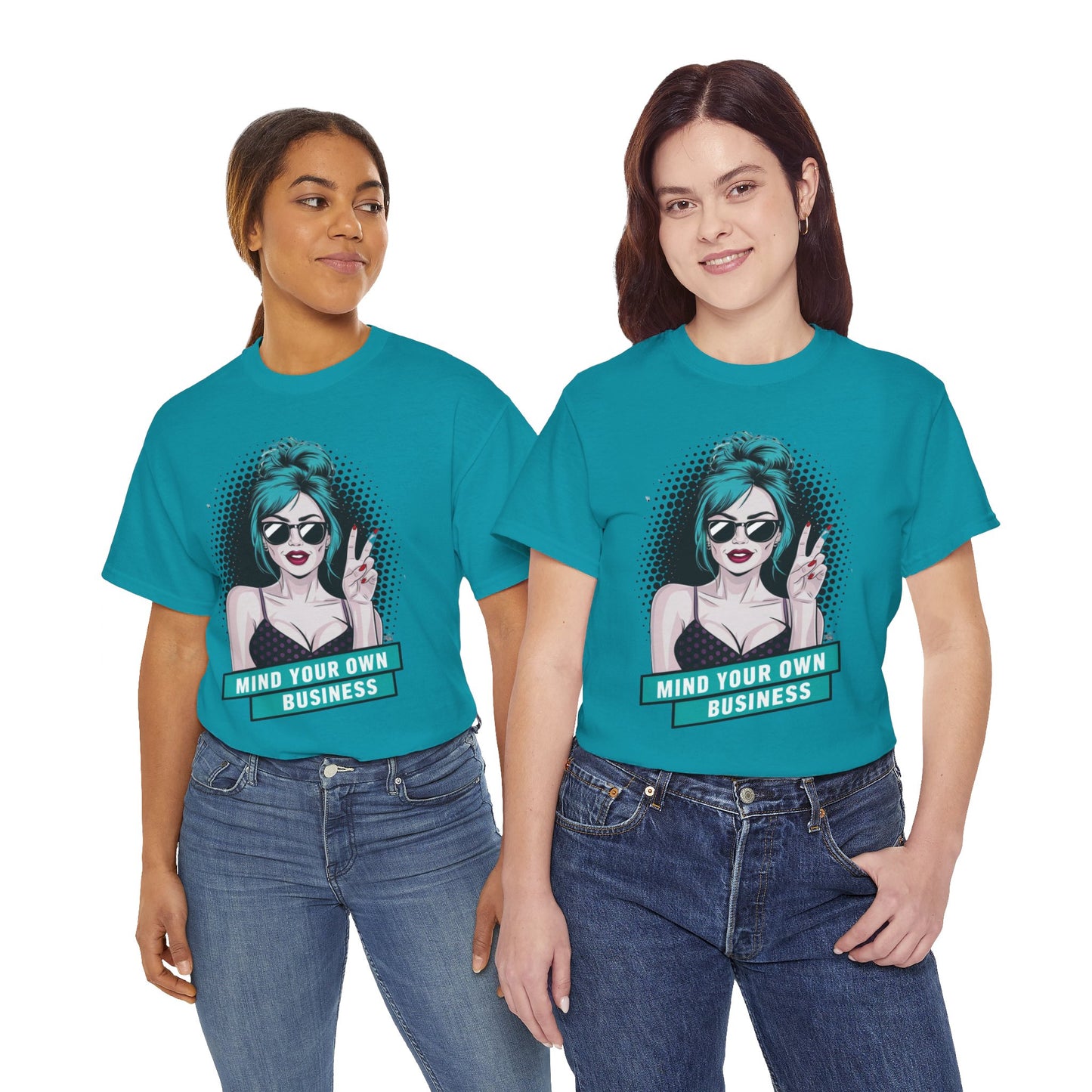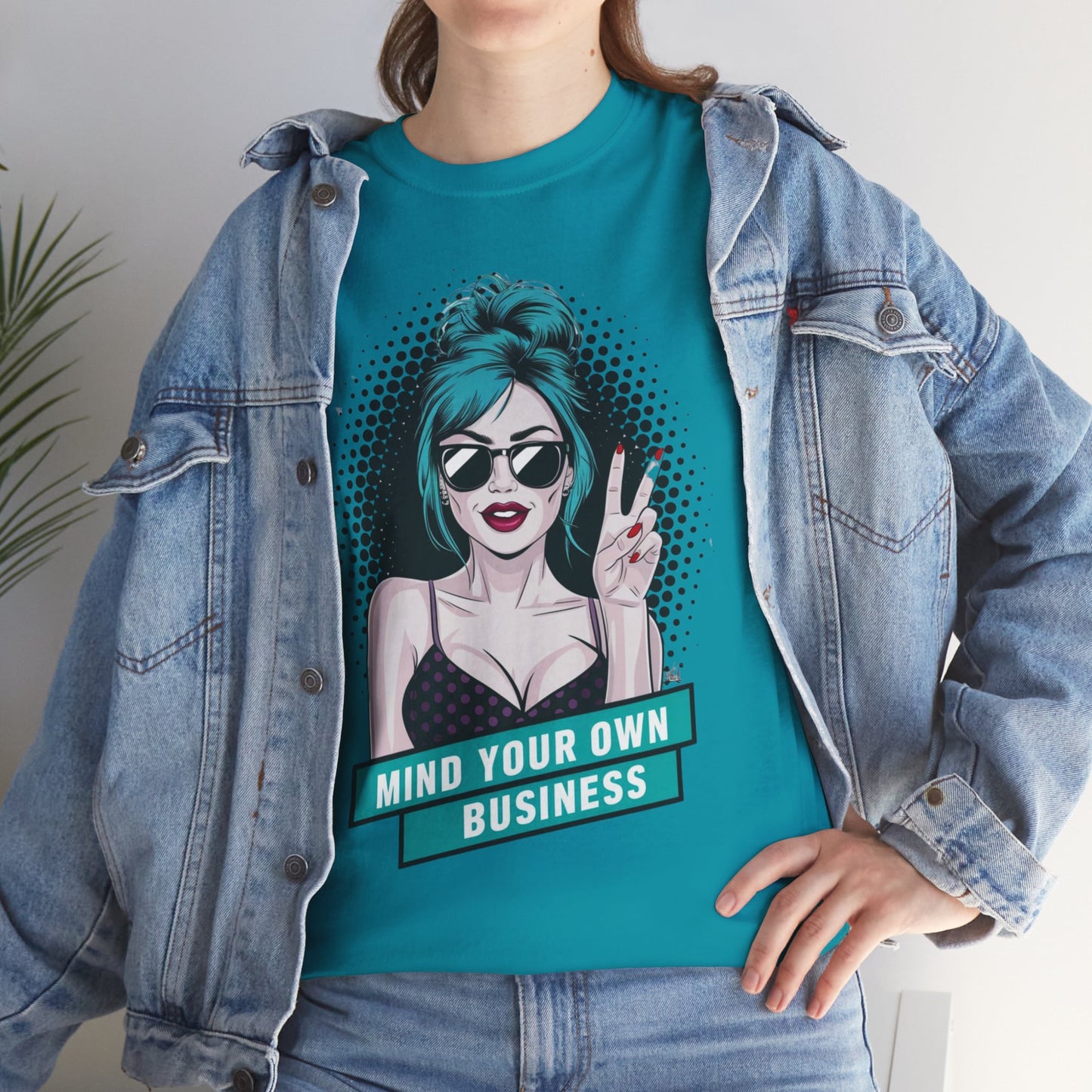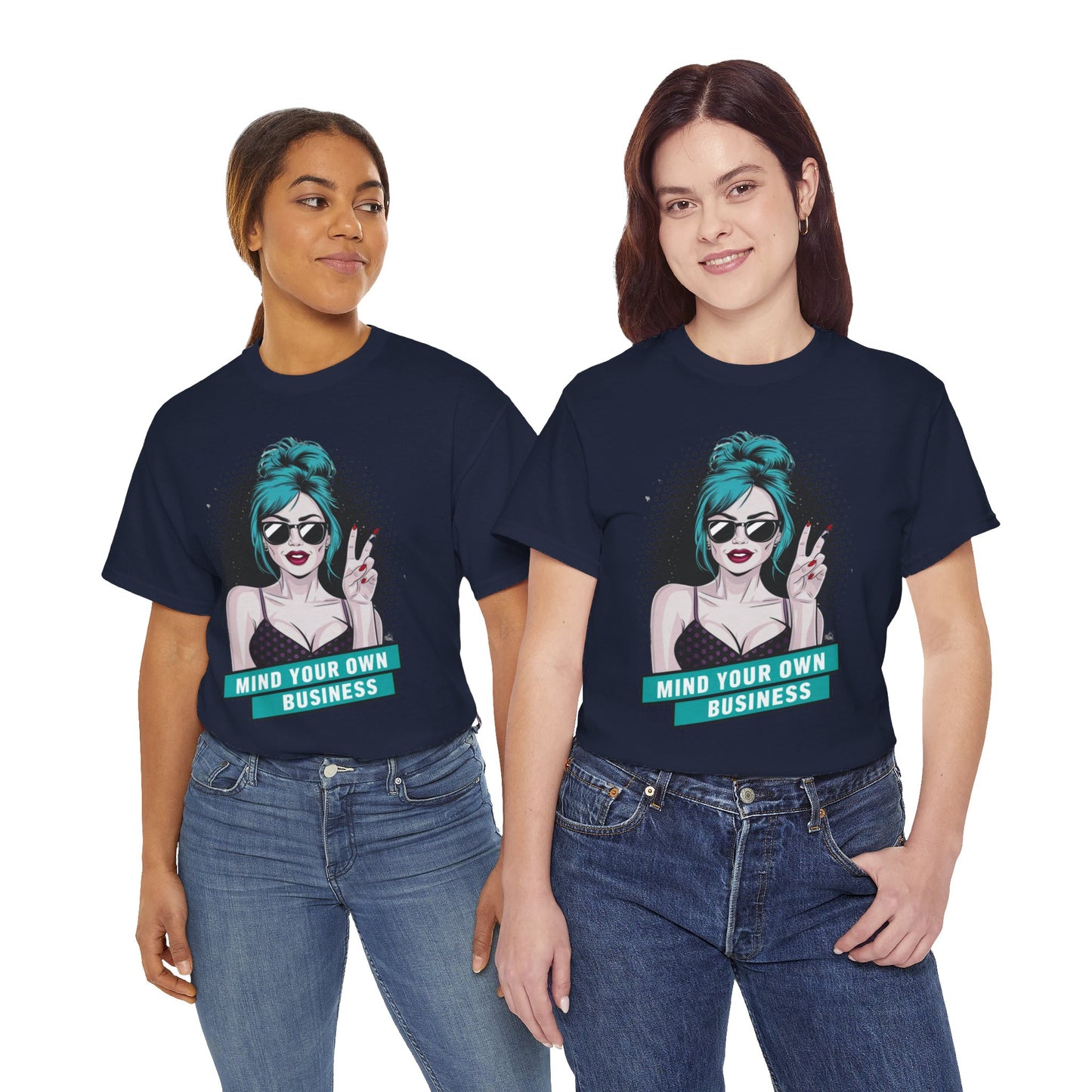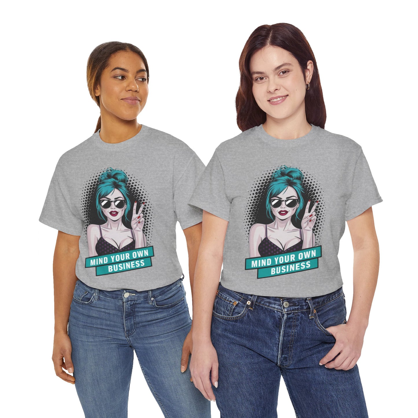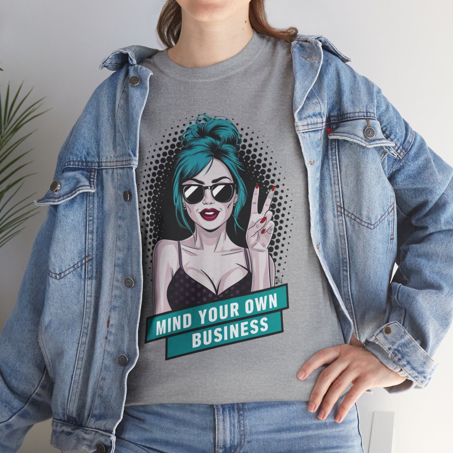 Sexy PopArt Girl Mind Your Own Business Tshirt unisex heavy cotton