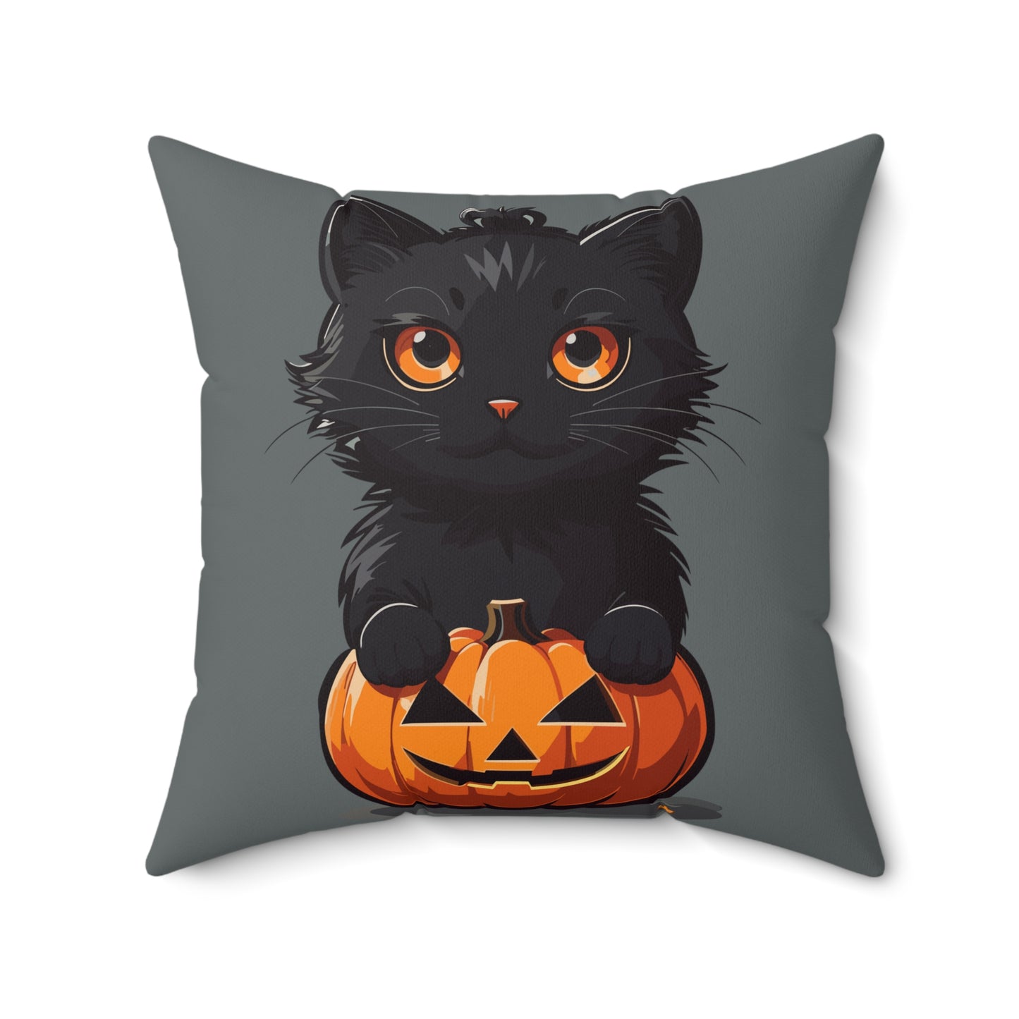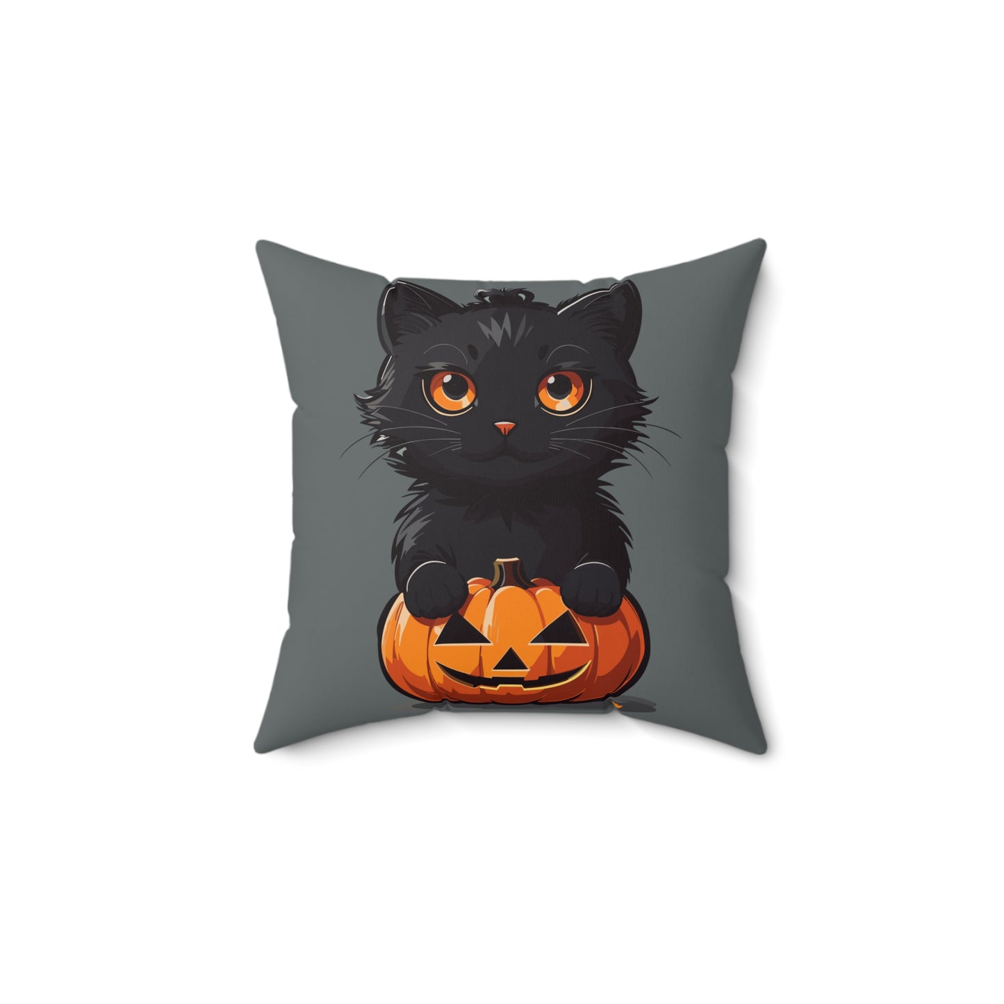 Throw Pillow Spooky and Cute 2-sided Jack-o-lantern Cute Kitty Halloween Spun Polyester Square Pillow